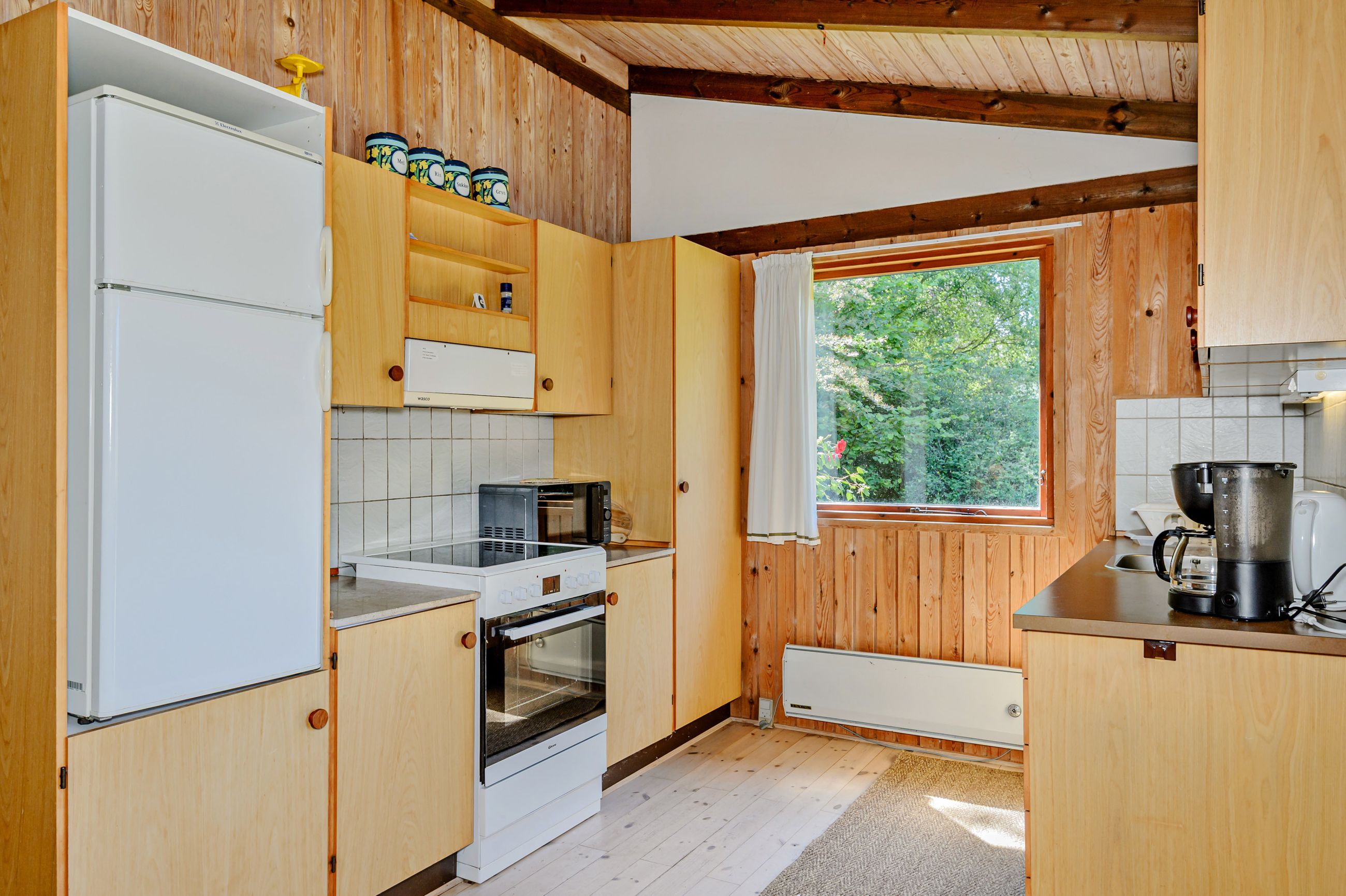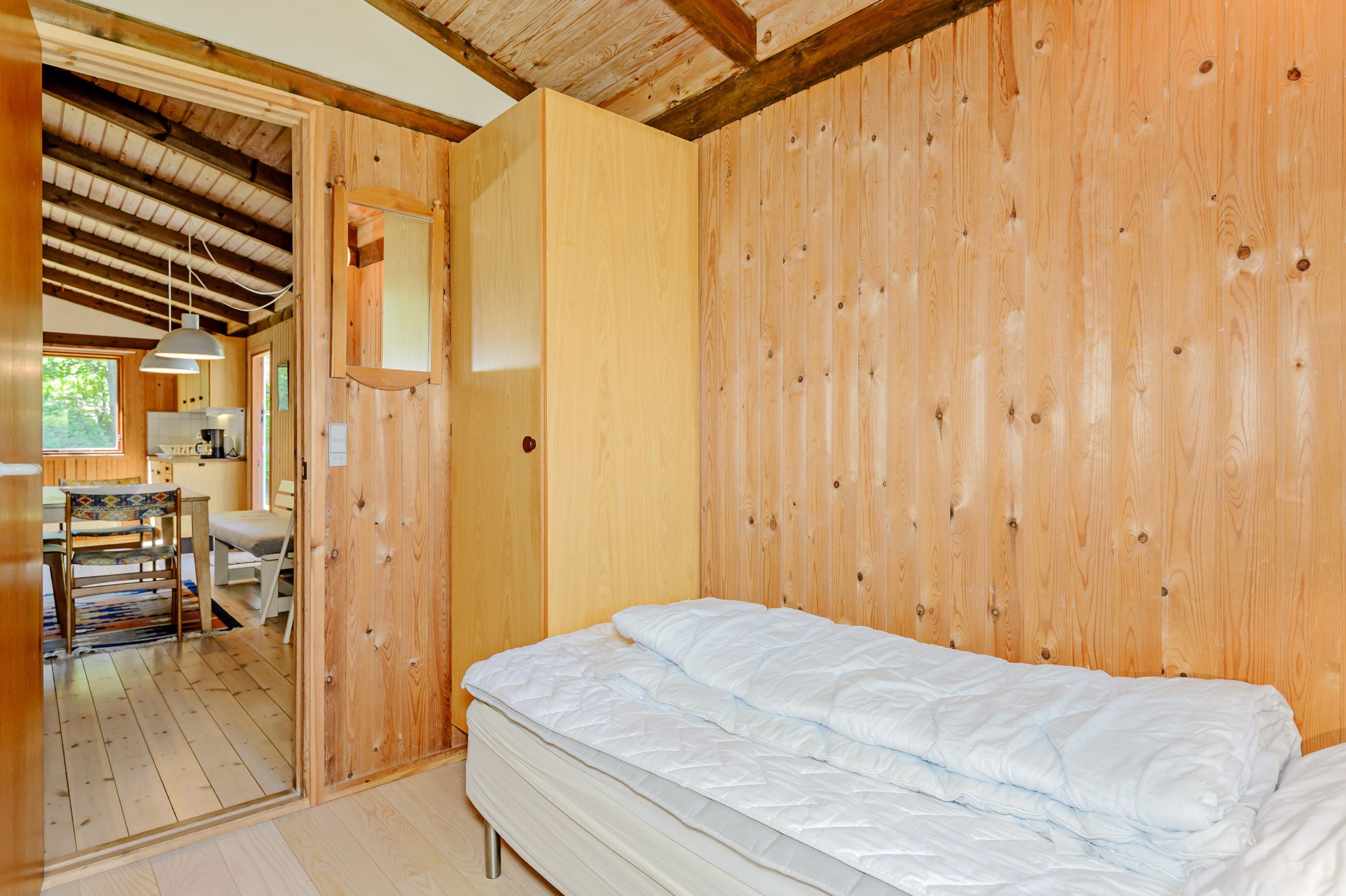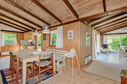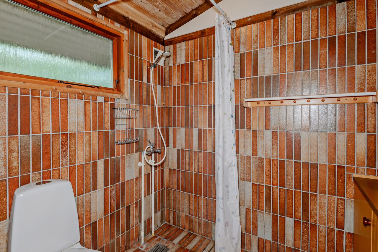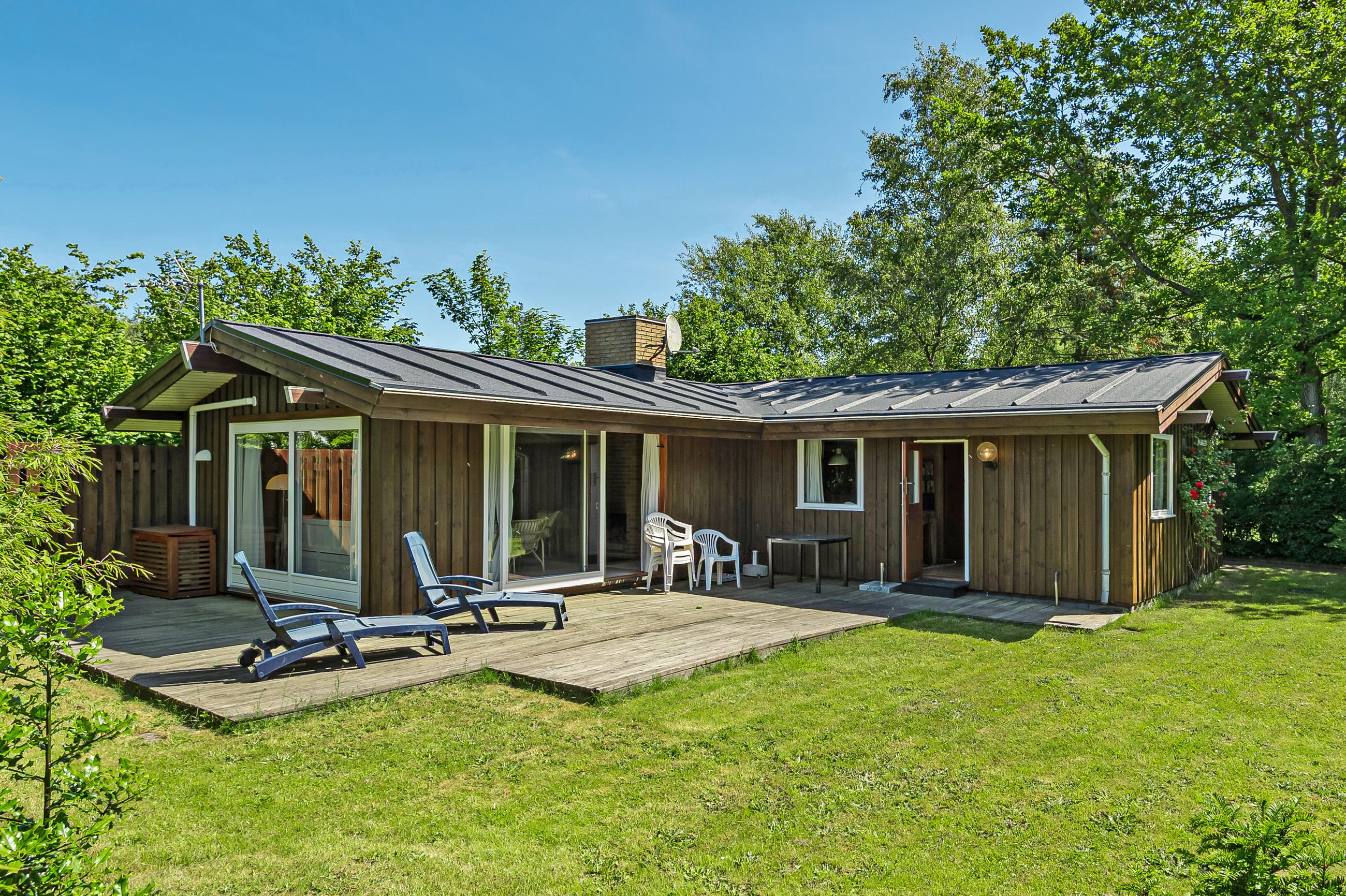LÆKKERT FRITIDSHUS MED LOFTER TIL KIP - 3 VÆRELSER - NYT LISTETÆKKET TAGPAPTAG - SKØNNE UDEAREALER OG 5 MIN. TIL LÆKKER SANDSTRAND Her sælges et rummeligt fritidshus i rigtig god kvalitet, bygget af den lokale tømrermester Palm. Fritidshuset er opført på støbt sokkel med facader med lodret træbeklædning, helt nyt listetækket tagpaptag (udført af tømrermester), termovinduer med hvide rammer.God indretning: Entre, badeværelse med Höganäs fliser, bruseniche og god skabsplads med nedfældet vask, 2 gode værelser med faste skabe, dejligt stort køkken/alrum med fin skabs- og bordplads, stort spiseområde med masser af lysindfald og dør ud til haven, soveværelse med plads til dobbeltseng samt en skabsvæg. Fantastisk stue , åben pejs til en hyggeaften og skydedørsparti til haven. Fyrretræsgulve i alrum og superflotte nye gulve i de øvrige rum. Fritidshuset er utroligt lyst og venligt, rigtig god rumfornemmelse med lofter til kip. Primær opvarmning ved luft til luft varmepumpe placeret i stuen. Fra både stue og alrum er der udgang til en stor træterrasse, hvor solen kan nydes i fulde drag. Haven er letholdelig og primært med græsplæne og lidt beplantning, hvor der kan findes skygge i den varmeste sommer. Der er et udhus til opbevaring af havemøbler og redskaber. I løbet af 5 min. kan du gå til den skønneste børnevenlige sandstrand. Fremvisning kun ifølge aftale med ejendomsmægler, da huset i perioder er udlejet. ET LÆKKERT FRITIDSHUS TÆT PÅ STRANDEN - 3 VÆRELSER OG LOFTER TIL KIP - STOR TRÆTERRASSE OG LUKKET HAVE !