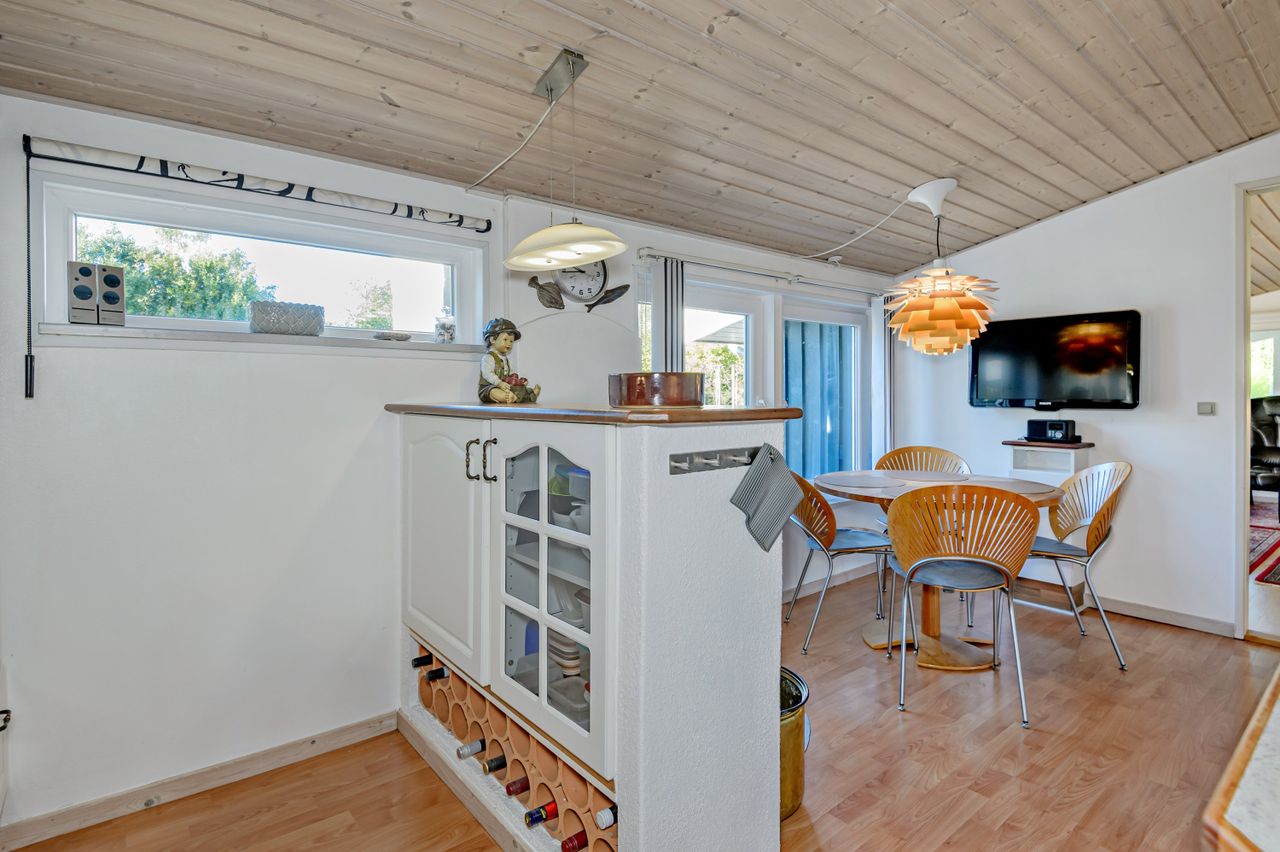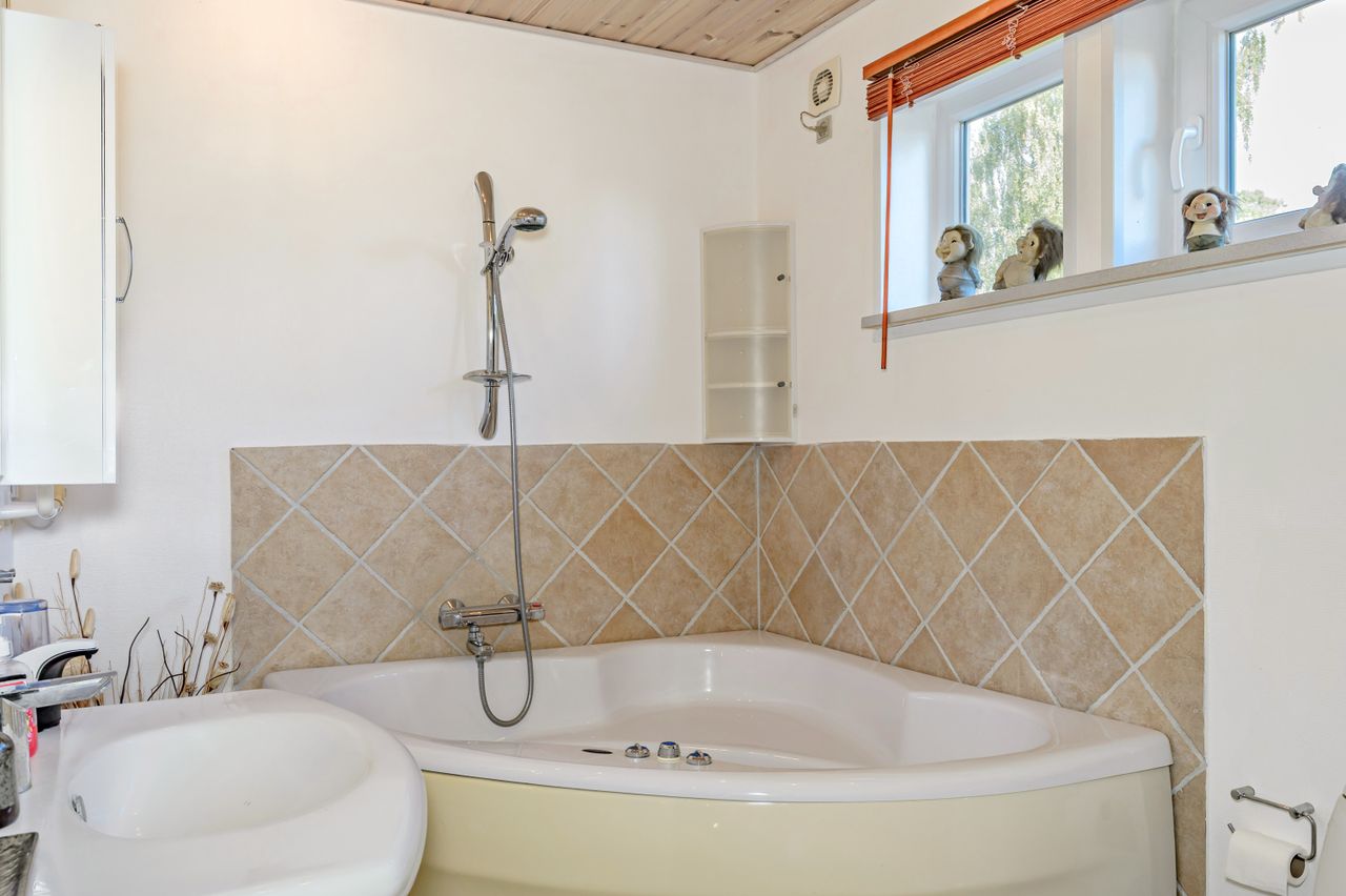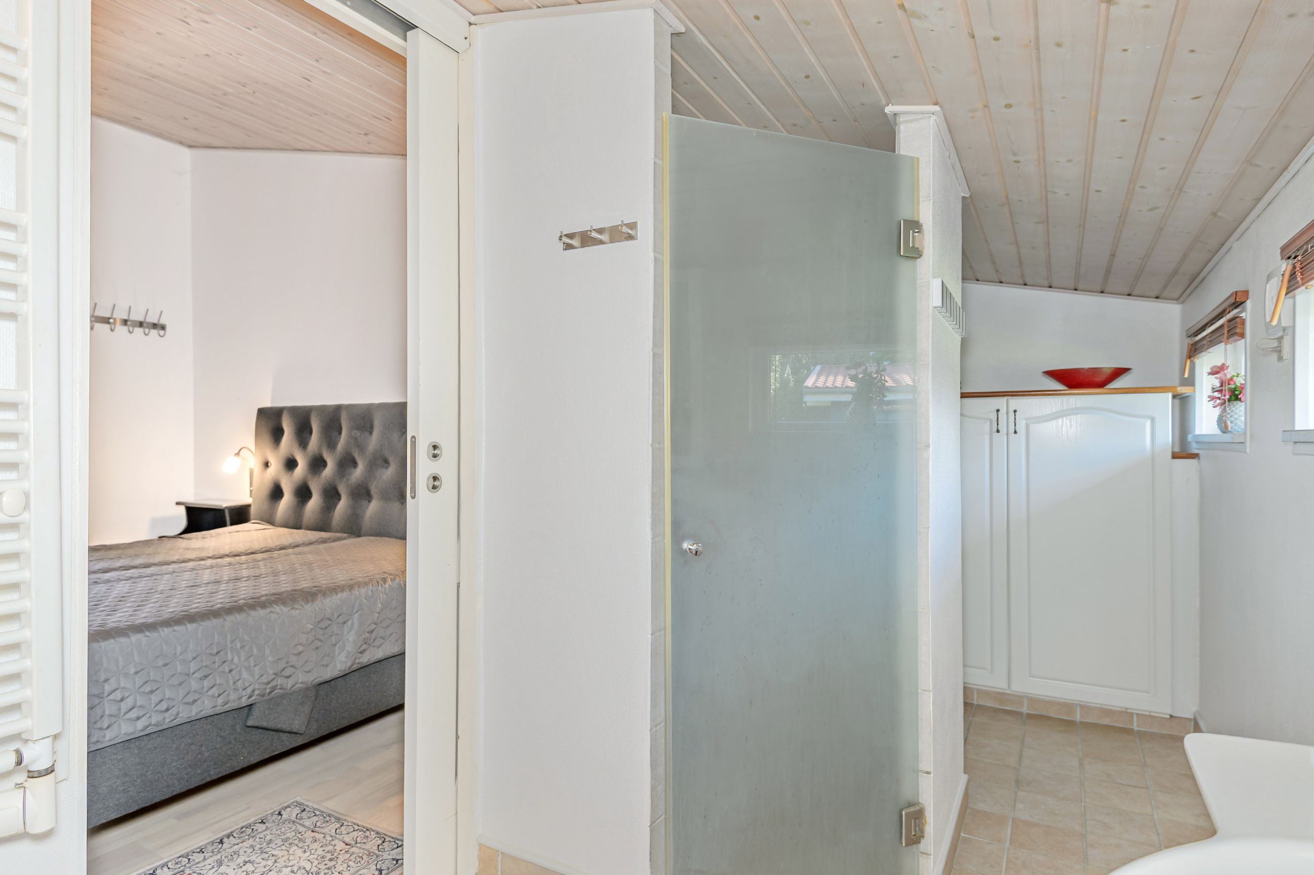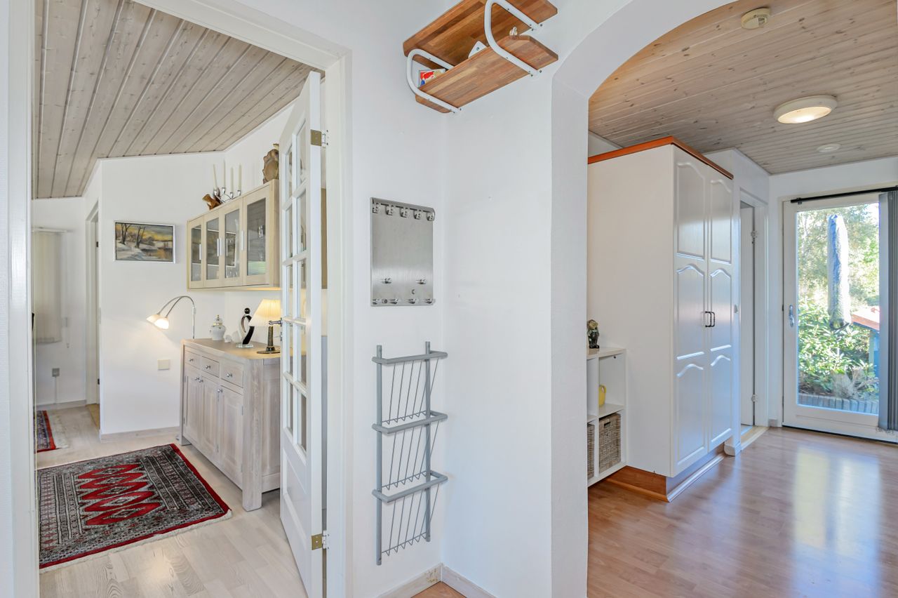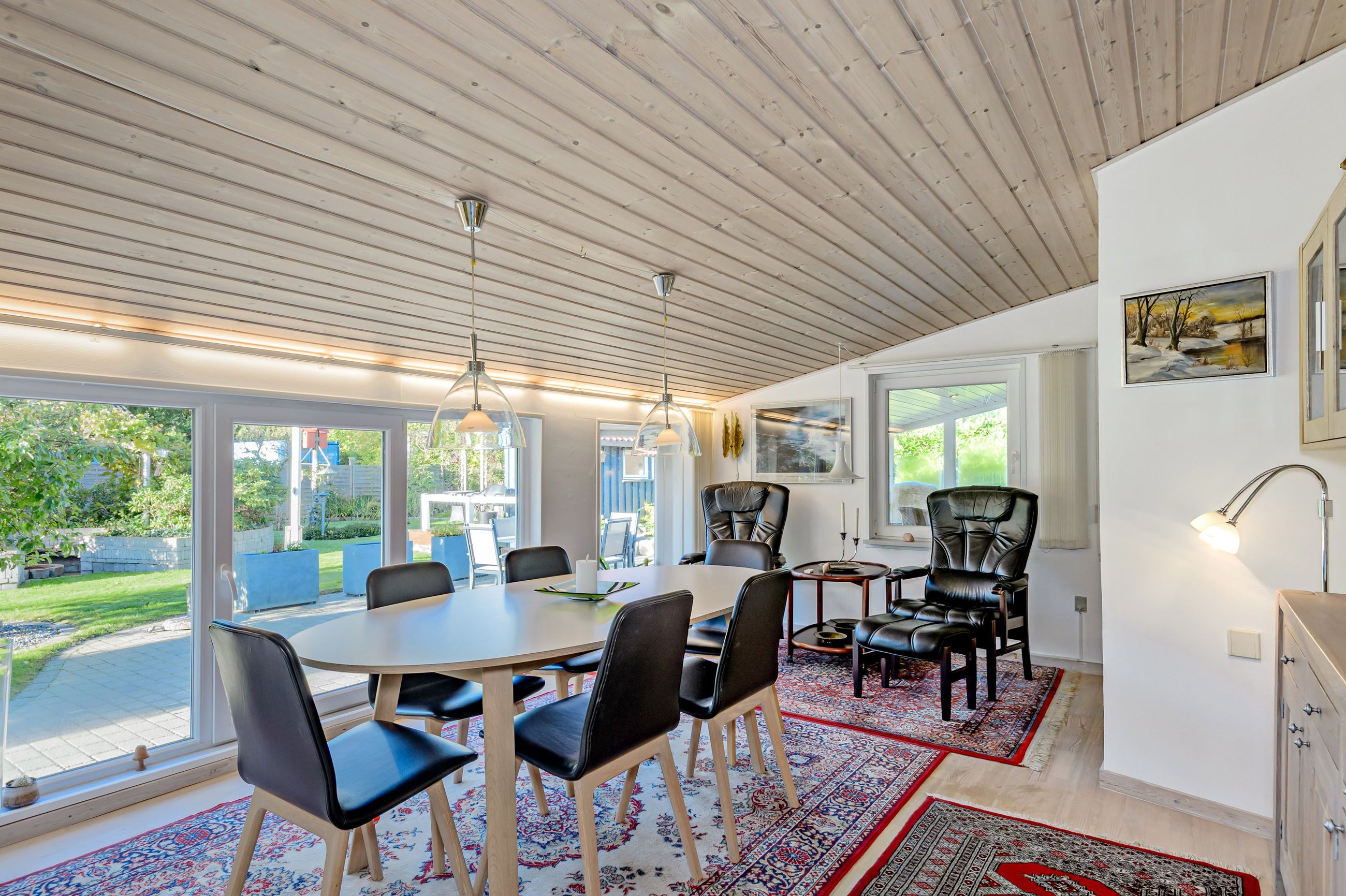 Boligen byder på et dejligt lyst køkken med spiseplads og brændeovn, hvorfra der er adgang til en stor og indbydende spisestue. Herfra er der videre adgang til en hyggelig tv-stue med en stor pilleovn, som sikrer varme og stemning året rundt. Begge stuer har udgang til en flot og lys udestue, der fungerer som et ekstra opholdsrum med direkte adgang til terrasserne i haven. Boligen rummer også to soveværelser, hvoraf det ene har eget stort badeværelse med bruseniche. Derudover findes et ekstra badeværelse, som både har bruseniche og spabad, så der er god plads til afslapning og velvære. I bryggers er der indrettet praktisk vaskesektion med vaskemaskine og tørretumbler.