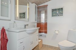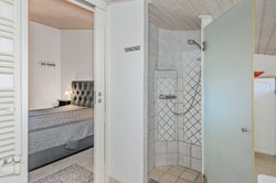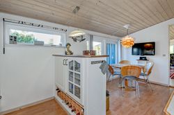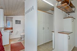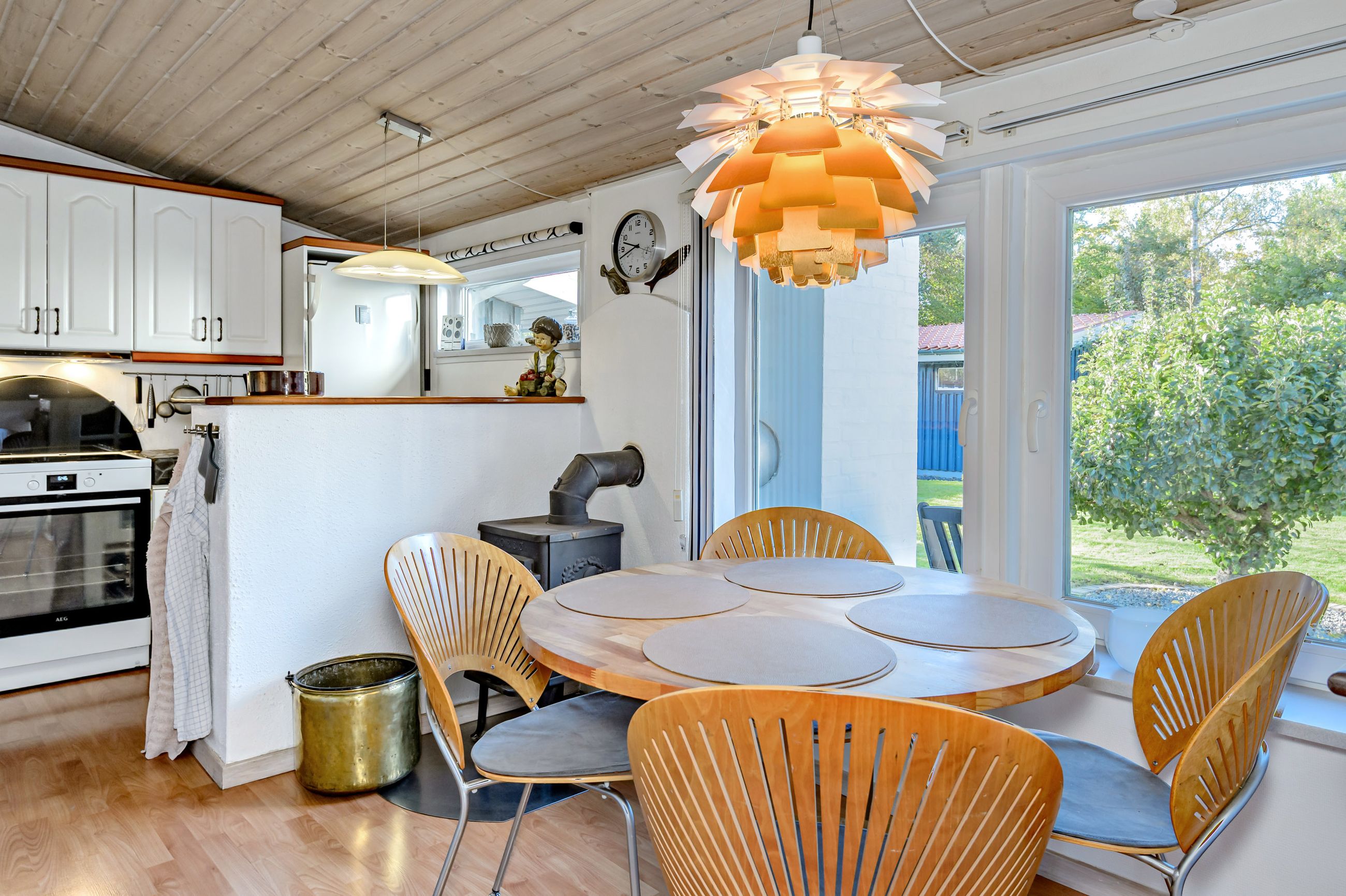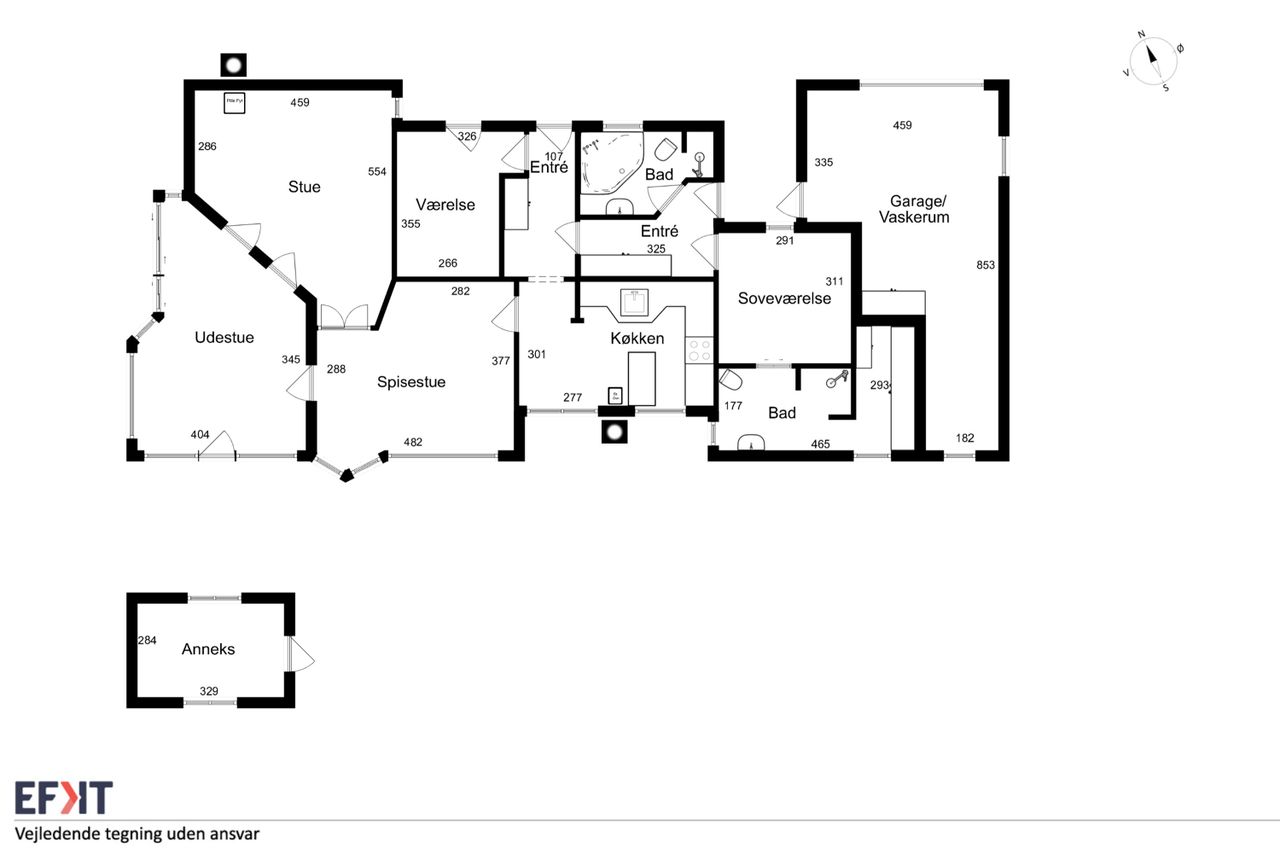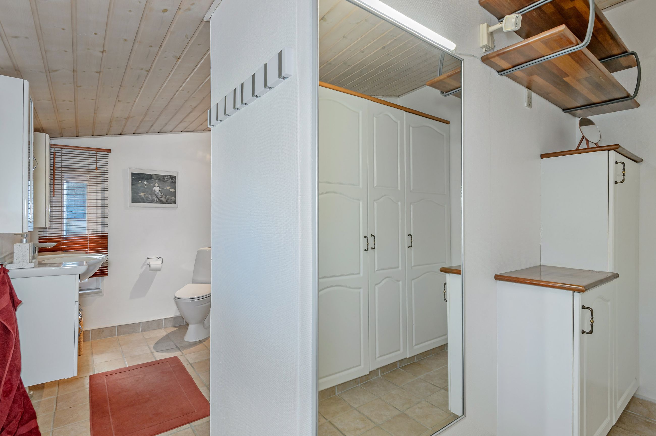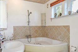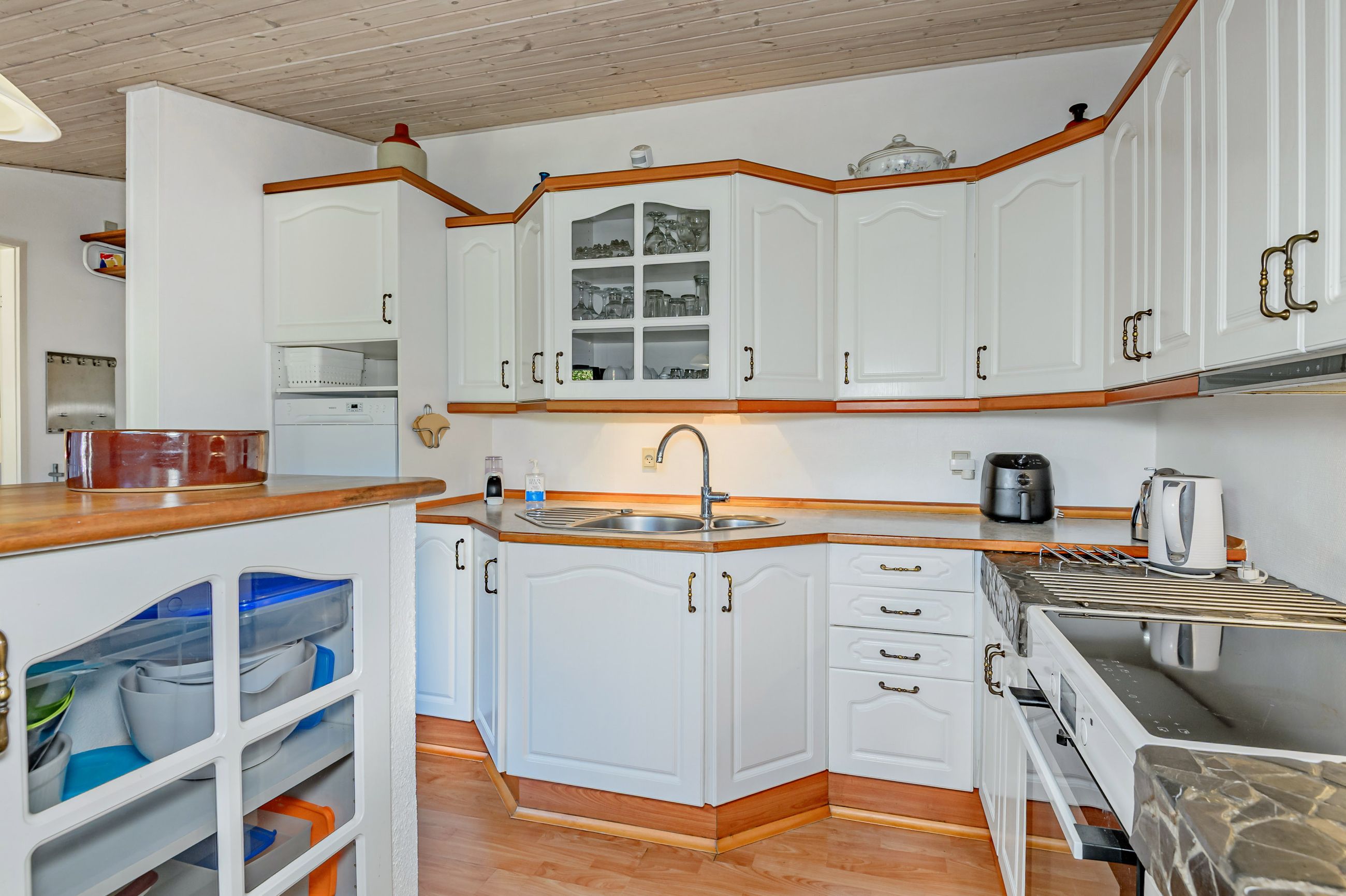 Boligen byder på et dejligt lyst køkken med spiseplads og brændeovn, hvorfra der er adgang til en stor og indbydende spisestue. Herfra er der videre adgang til en hyggelig tv-stue med en stor pilleovn, som sikrer varme og stemning året rundt. Begge stuer har udgang til en flot og lys udestue, der fungerer som et ekstra opholdsrum med direkte adgang til terrasserne i haven. Boligen rummer også to soveværelser, hvoraf det ene har eget stort badeværelse med bruseniche. Derudover findes et ekstra badeværelse, som både har bruseniche og spabad, så der er god plads til afslapning og velvære. I bryggers er der indrettet praktisk vaskesektion med vaskemaskine og tørretumbler.
