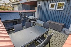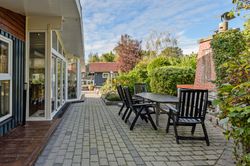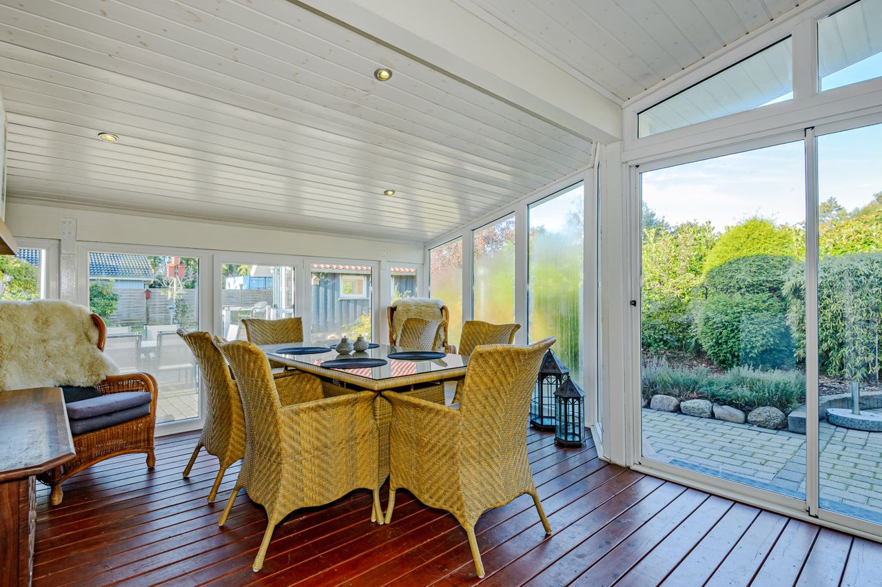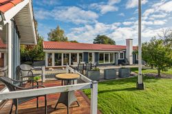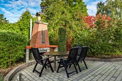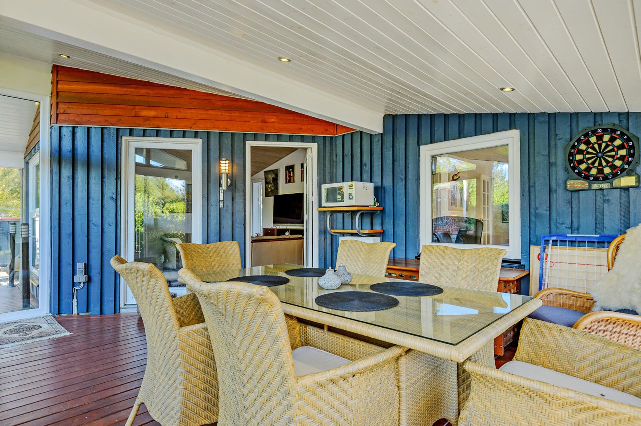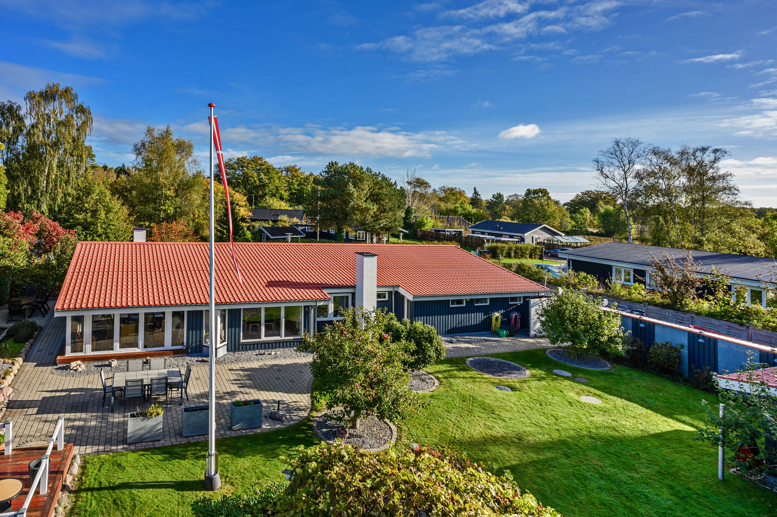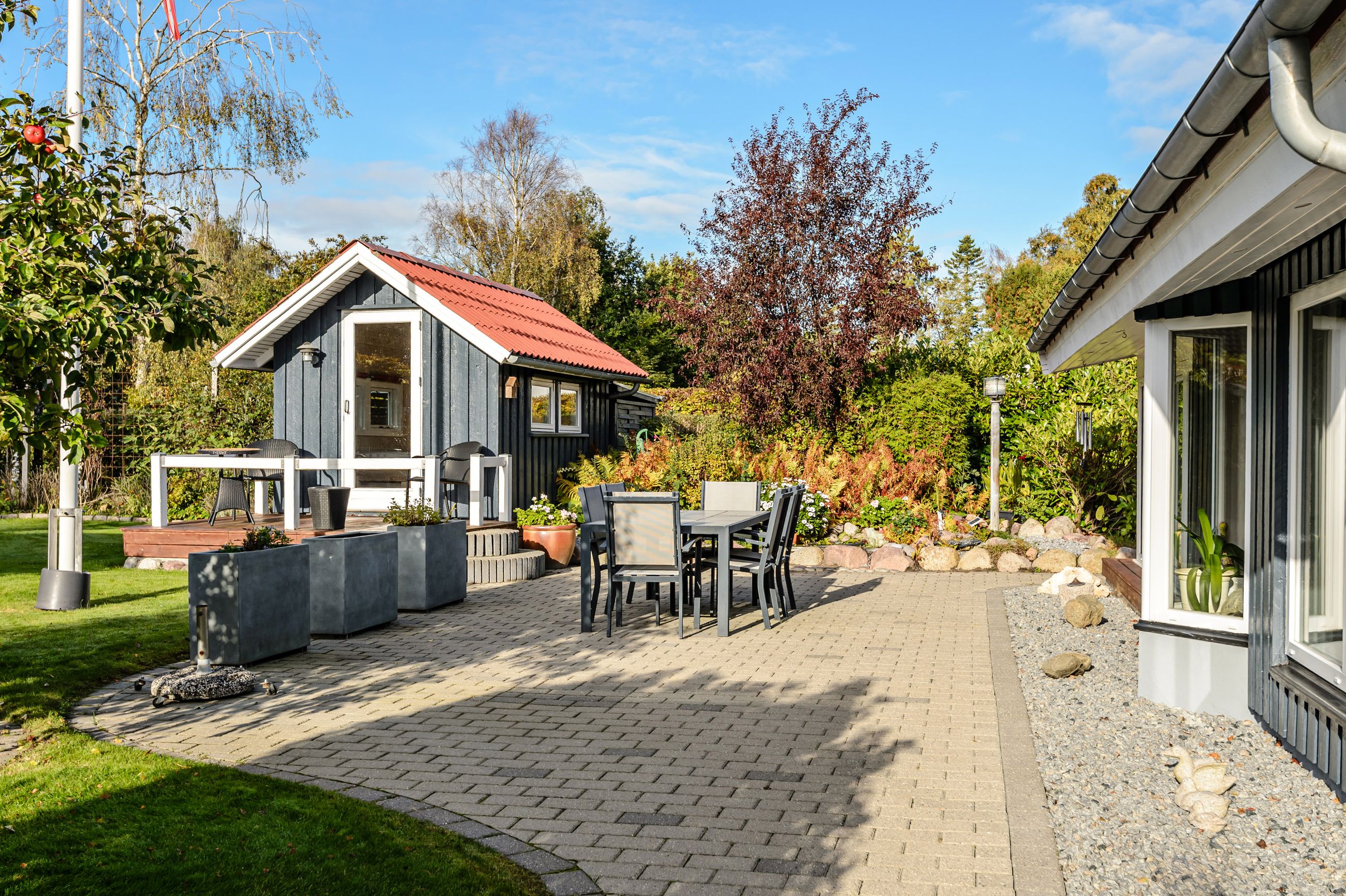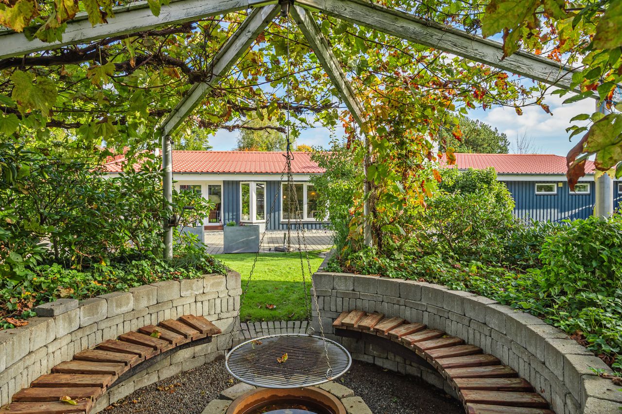 Udenfor venter en fantastisk have med tre terrasser placeret rundt om huset, så der altid er mulighed for at finde både sol og læ. Haven er flot anlagt med en hyggelig grillterrasse med bålplads samt en stor udendørs rygeovn.