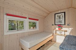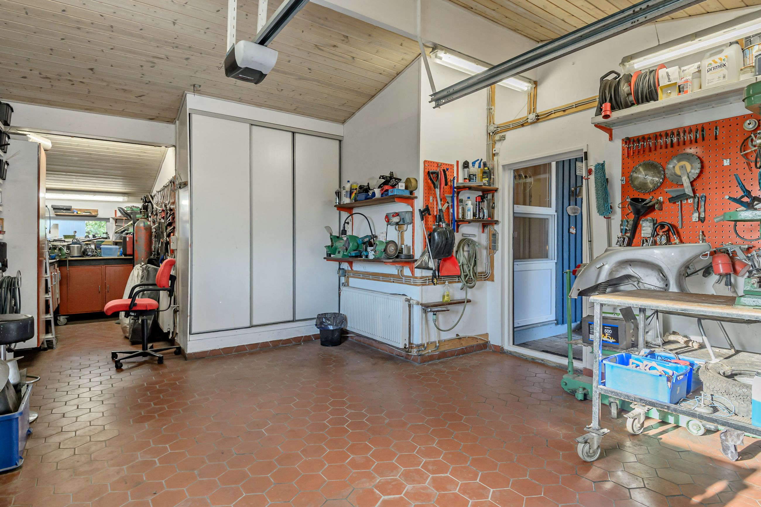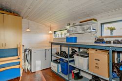 Der er også et charmerende anneks/fritidshus med to sovepladser og strøm, perfekt til gæster, samt et stort udhus opdelt i to sektioner med god opbevaringsplads. Som en del af fritidshuset er der en stor lukket garage med højt til loftet og plads til værksted.
