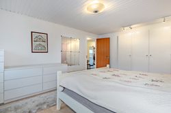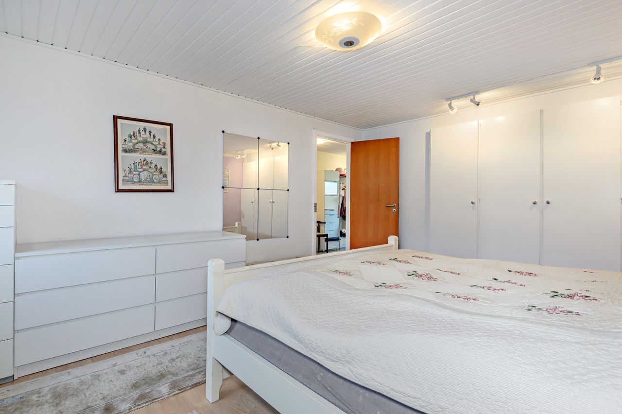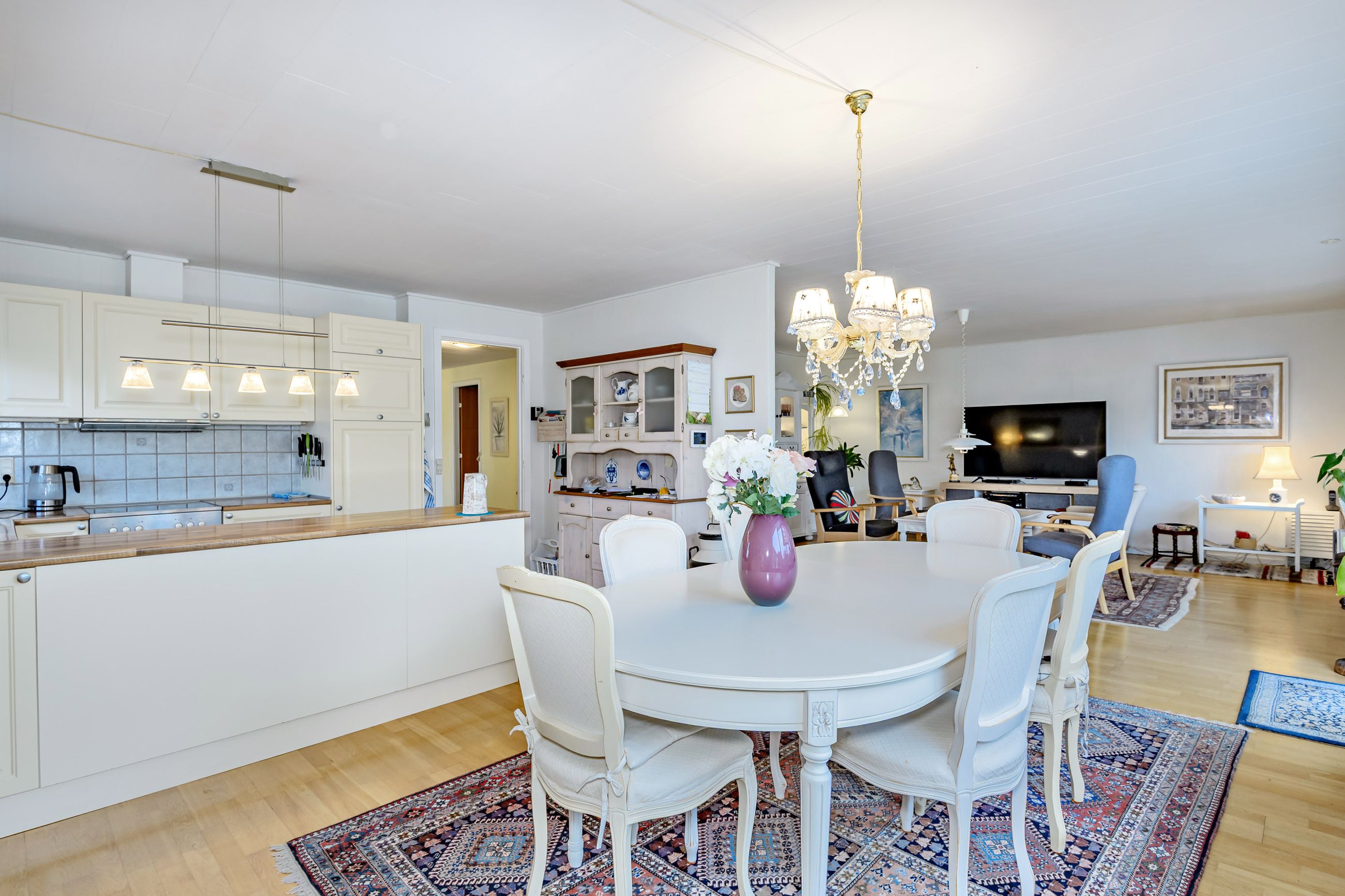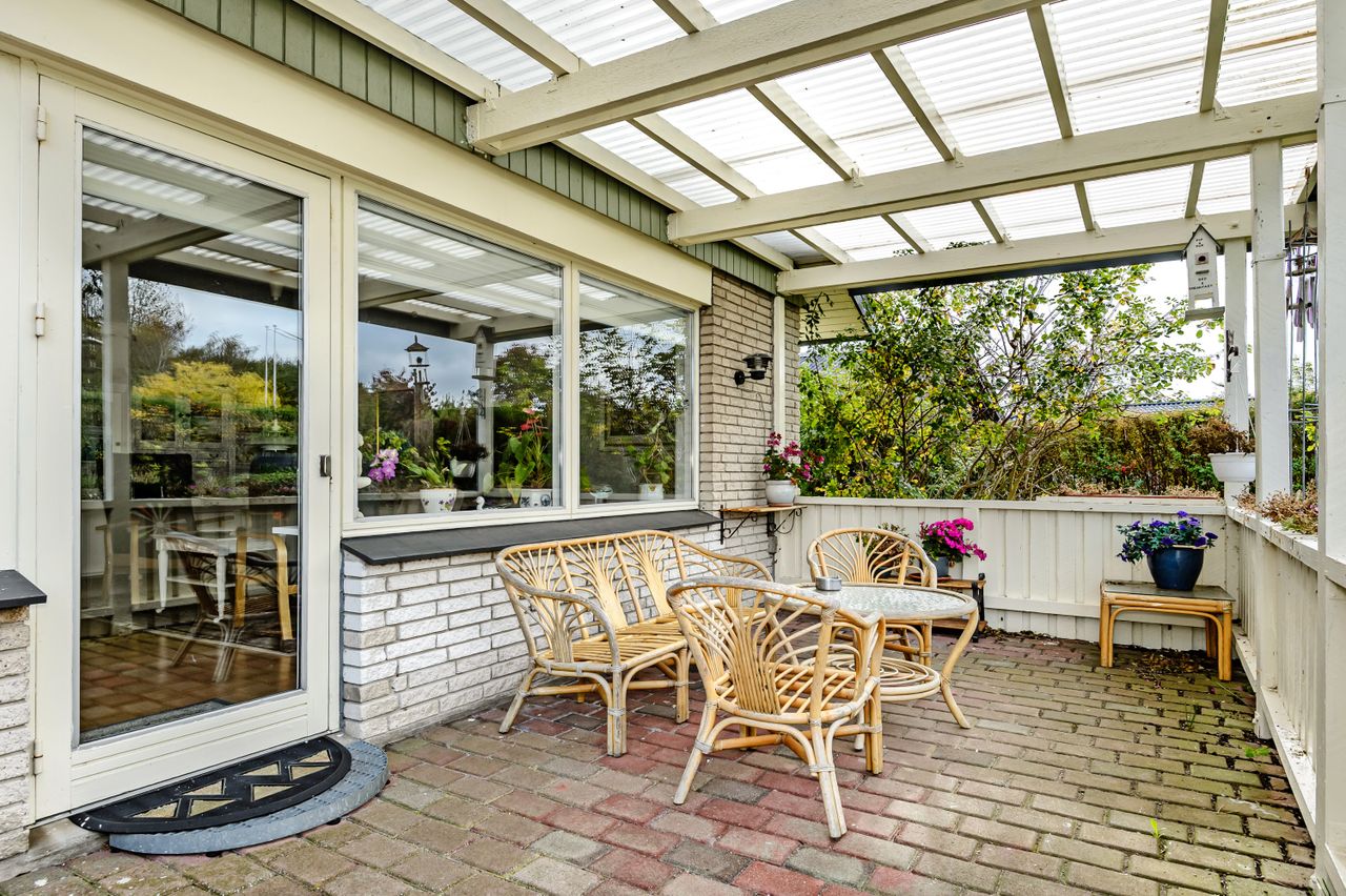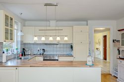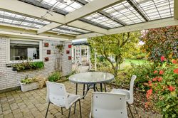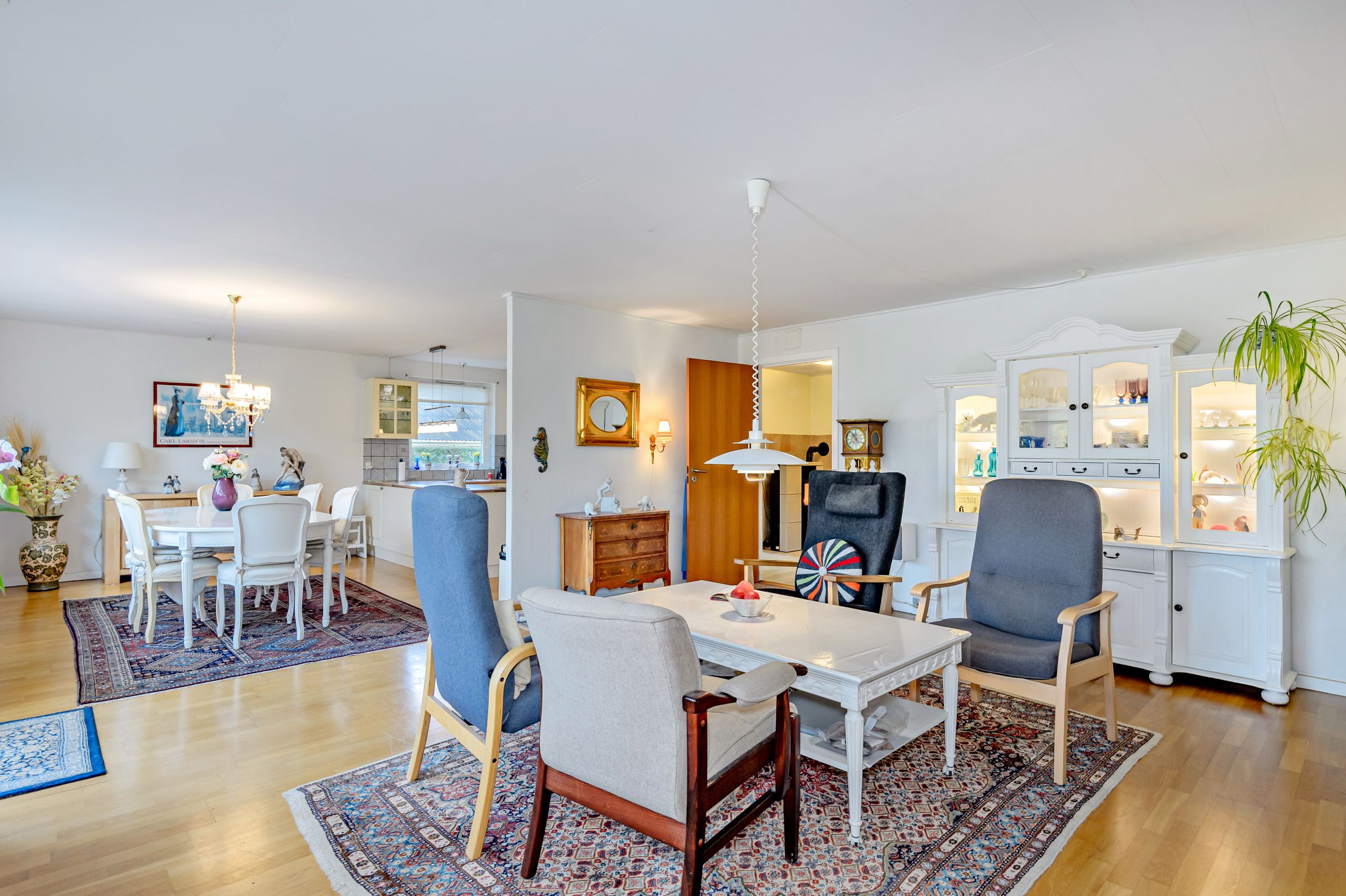 Villaen er opført med murede facader, malet eternittag og vinduer primært med energiglas. God og lys indretning: Entre/fordeling med garderobeplads og en træpilleovn, som kan reducere varmeregningen, bryggers med fjernvarme, vaskemaskine/tørretumbler og praktisk bordplads med vask, stort soveværelse med skabsvæg, 2 gode værelser - det ene med fast skab, flisebadeværelse med badekar, bruseniche, gulvvarme og 2 håndvaske, hvidt køkken med rigtig god skabs- og bordplads, stor spiseplads, delvis åben stue mod køkkenet. Der er et fantastisk godt lysindfald i køkken og stue. Udgang til den dejligste vestvendt terrasse som er delvist overdækket. Flotte trægulve i opholdsrum og værelser, lyse lofter.