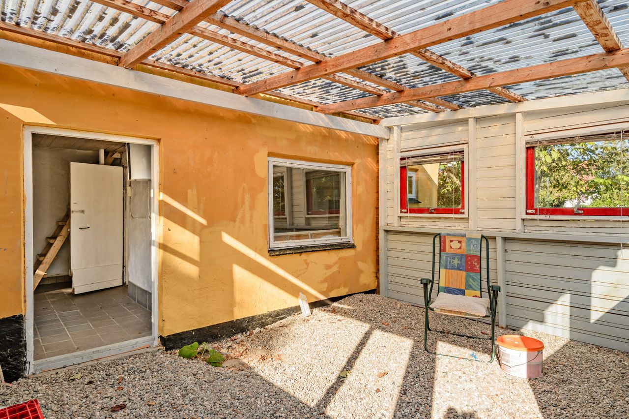 Grunden er på hele 1.540 m2 og giver plads til både have, leg og hobbyprojekter. Den store grund rummer også gode muligheder for at etablere nye udendørsområder eller tilbygninger.