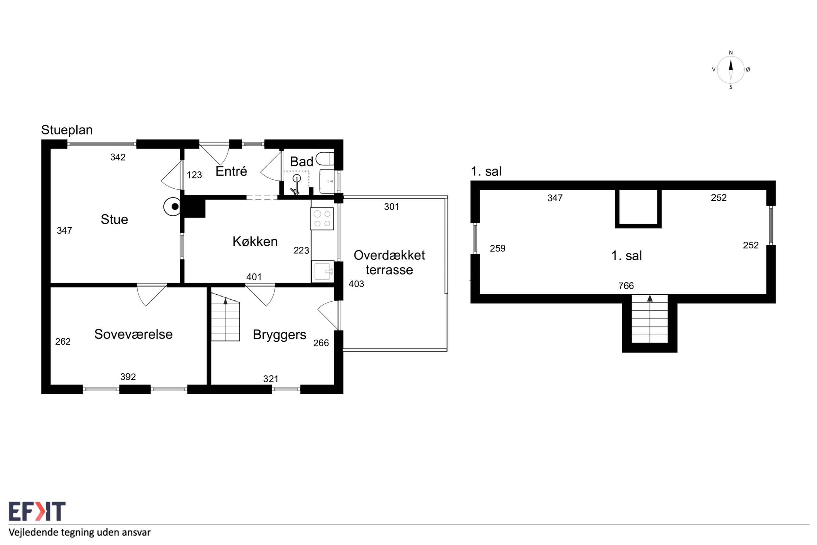 Stueplan er indrettet med Entré, badeværelse, køkken, stue og soveværelse. Fra bryggerset er der adgang til førstesalen samt udgang til en overdækket terrasse, der forlænger udelivet. Førstesalen består af ét stort rum, der kan indrettes til kontor, ekstra værelse eller multirum.