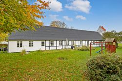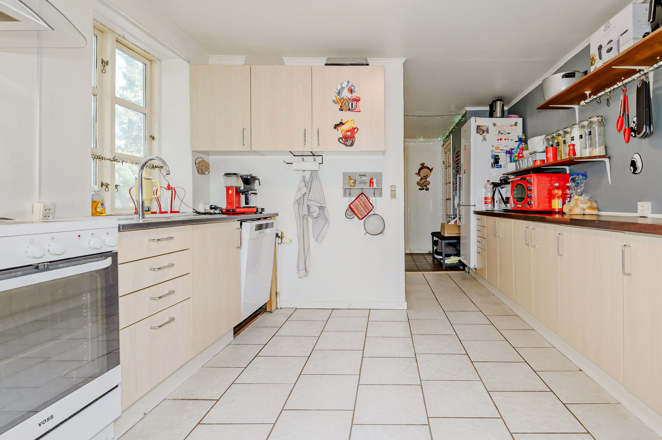 Super charmerende og meget centralt placeret villa, som er omgivet af den skønneste store have med flot ældre beplantning, græsplæne og forskellige frugttræer. Villaen er opført med facader som bindingsværk, malet pænt eternittag og vinduer der matcher i stilen som bondehusvinduer. Indvendigt er der rigtig meget plads, hvilket betyder at boligen let kan opdeles til flere familier, værelsesudlejning eller noget helt andet. Indretningen er pt.: Baggang, bryggers, pænt lyst køkken med mange skabe og god bordplads, badeværelse med hvide fliser og bruseniche, stor spisestue med brændeovn, rummelig opholdsstue, soveværelse, 3 værelser, endnu et køkken samt et ekstra badeværelse med brusebad, stue samt et kæmpe rum som stue, aktivitetsrum eller endnu flere værelser. Der er gulvvarme i køkken, badeværelse, baggang samt i spisestuen. God lofthøjde og trægulve i mange rum. Mulighed for opdeling af boligen, har tidligere været opdelt i 3 boliger. En helt igennem regulær villa, som byder på mange ekstra m2. En del af boligen er pt. udlejet. EN STOR VILLA I GOD STAND - HAR DU MANGE IDEER ? SÅ ER PLADSEN HER !!