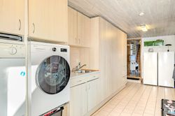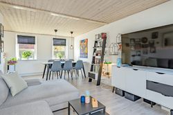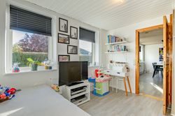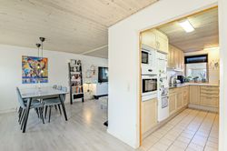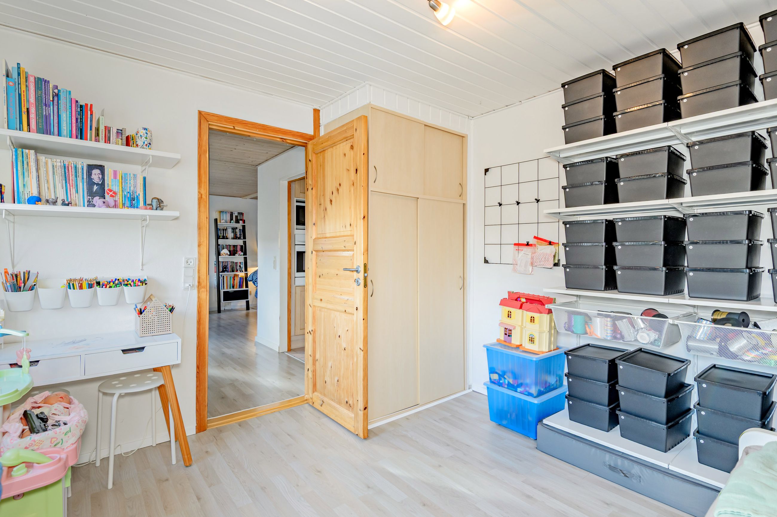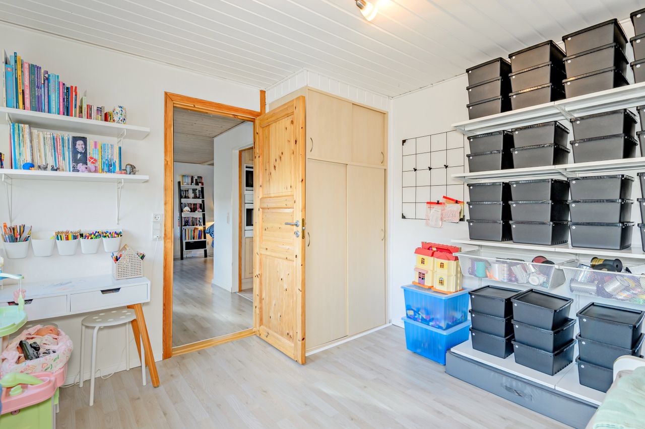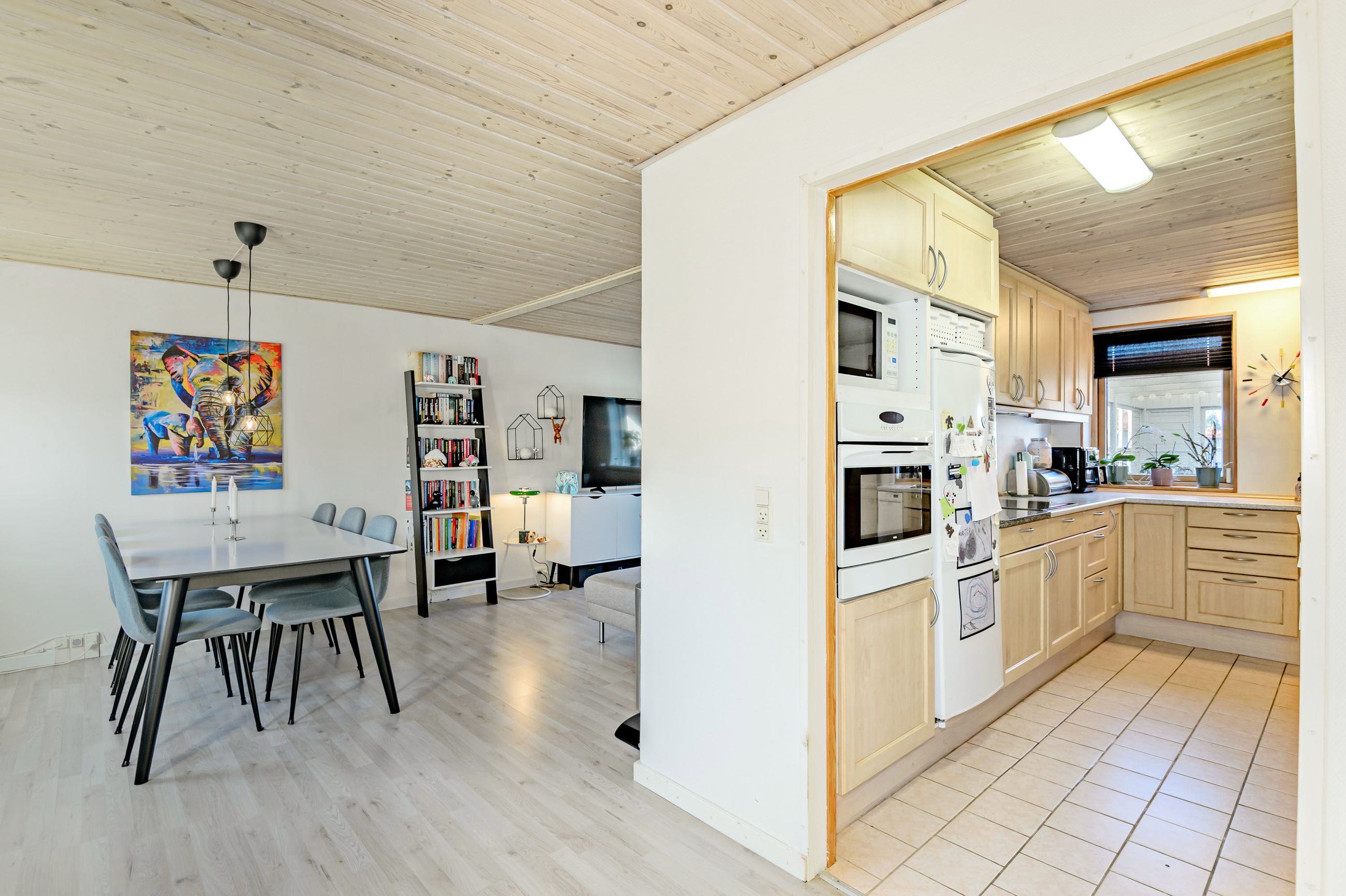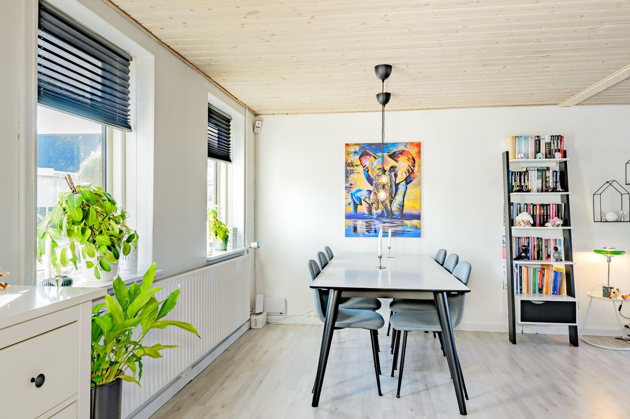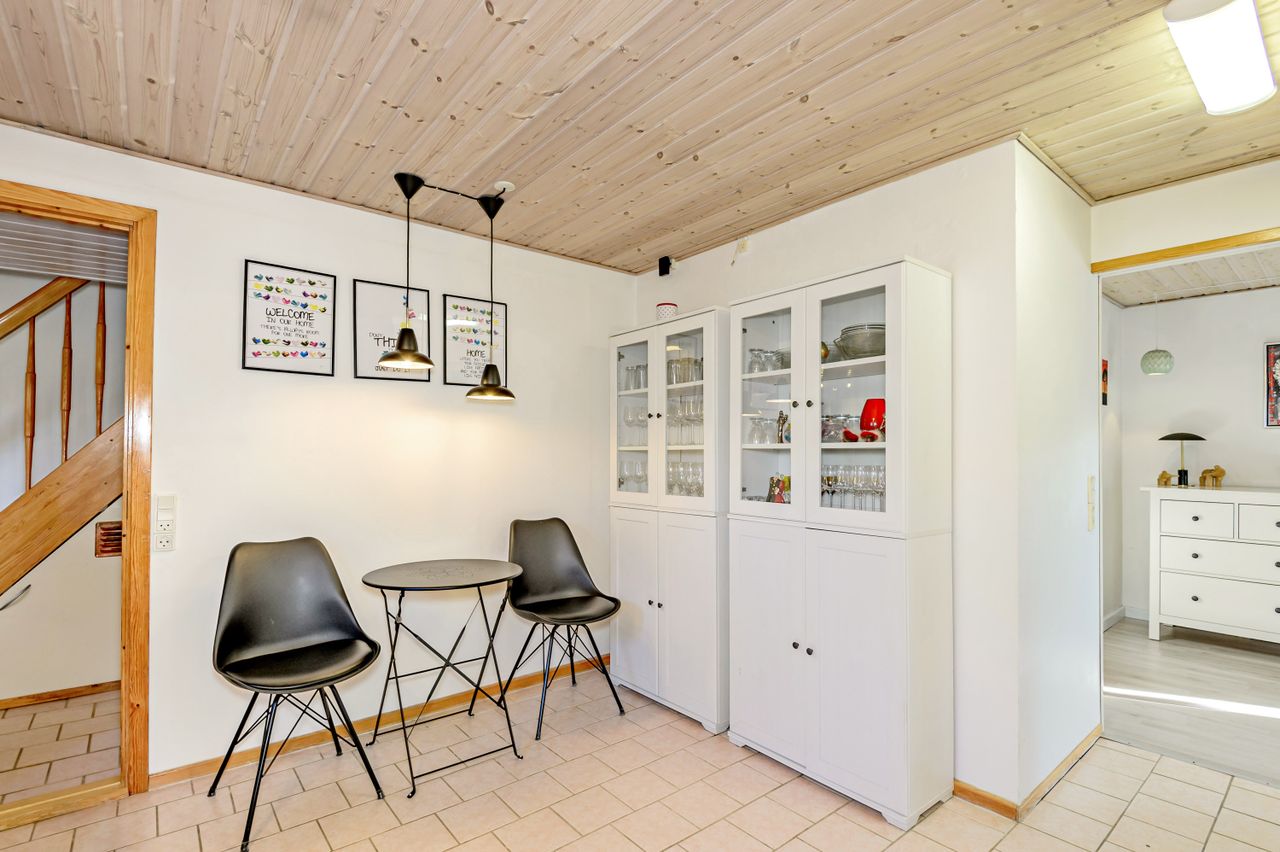 Og så ligger der ved indgangen til boligen en sydvendt hyggelig, overdækket og næsten helt lukket terrasse, hvor der kan nydes mange gode timer - både forår, sommer og efterår.