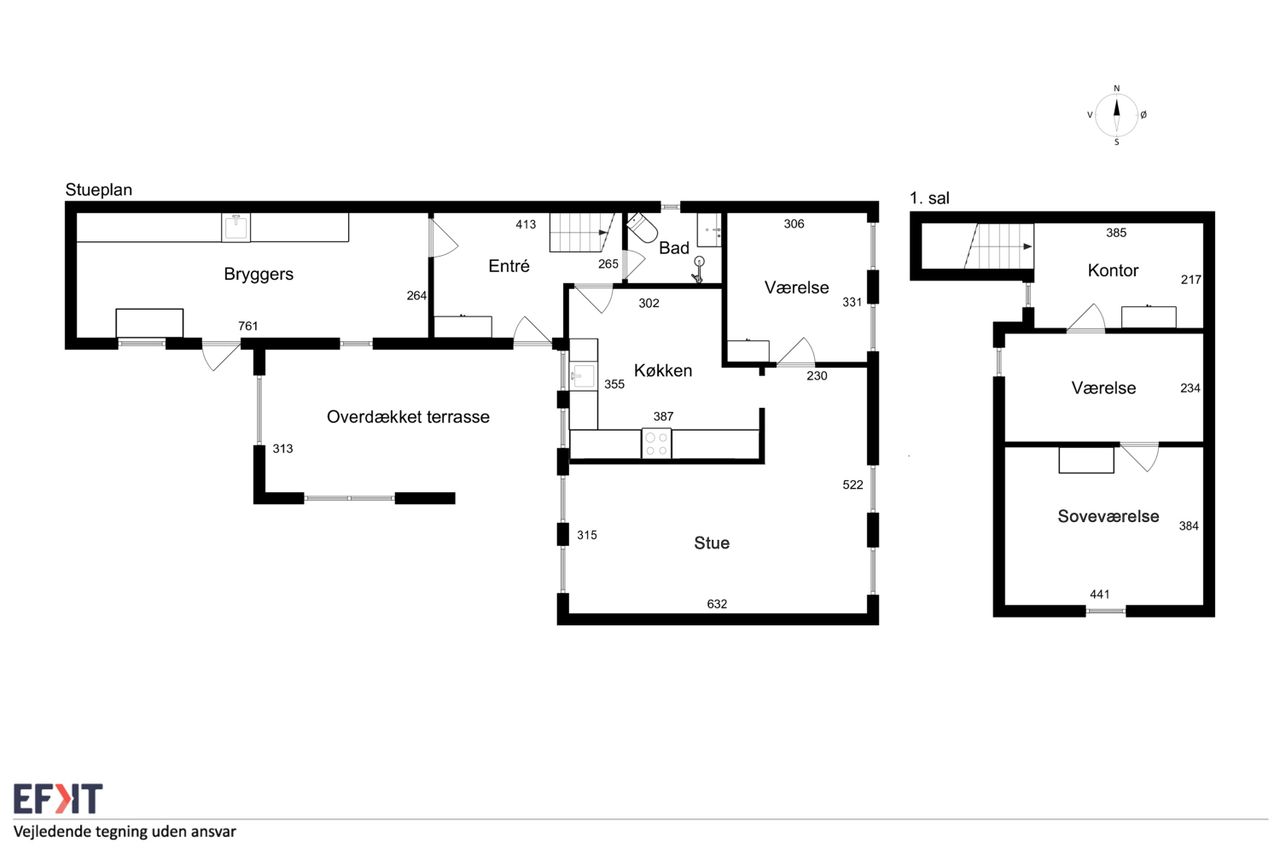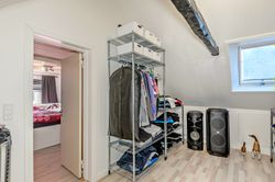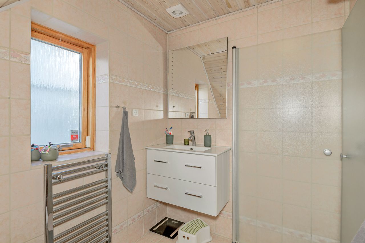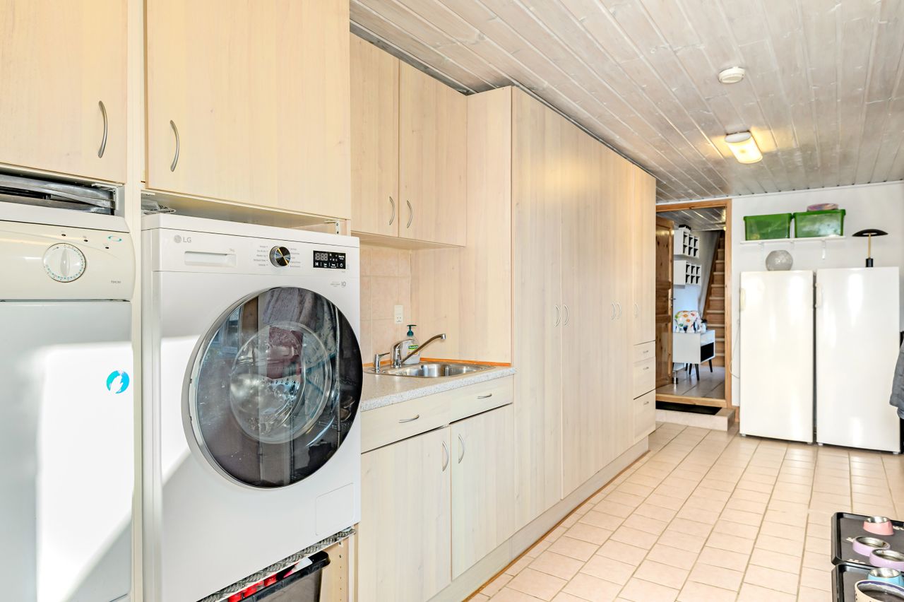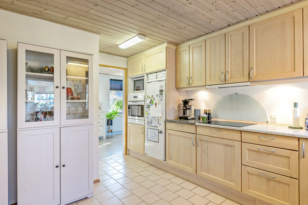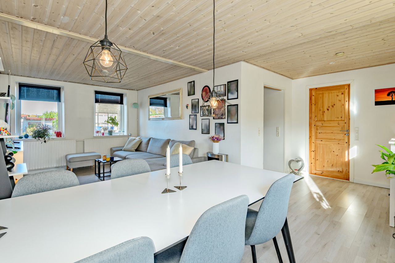 Selve den velholdte bolig er indrettet med et skønt, stort og lyst bryggers med flisegulv, mange skabe, vask, plads til vaskesøjle og varmeanlæg, køkken med lyse elementer, spiseplads og gulvvarme, vinkel-opholdsstue, værelse med skabe, flisebadeværelse med bruseniche og gulvvarme samt entre med gulvvarme og trappe til 1.sal. På 1. sal er der repos, værelse/kontor og stort soveværelse.