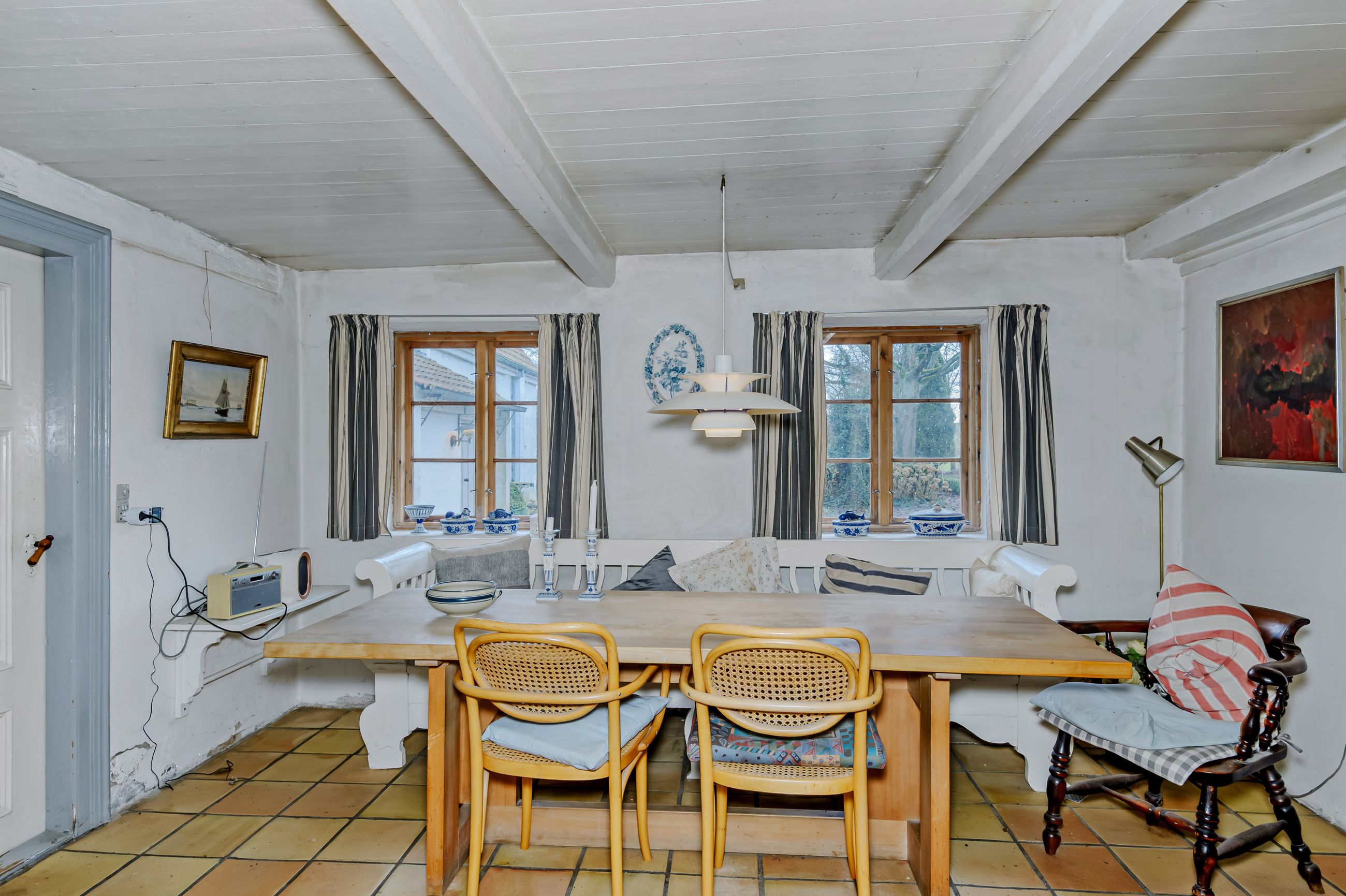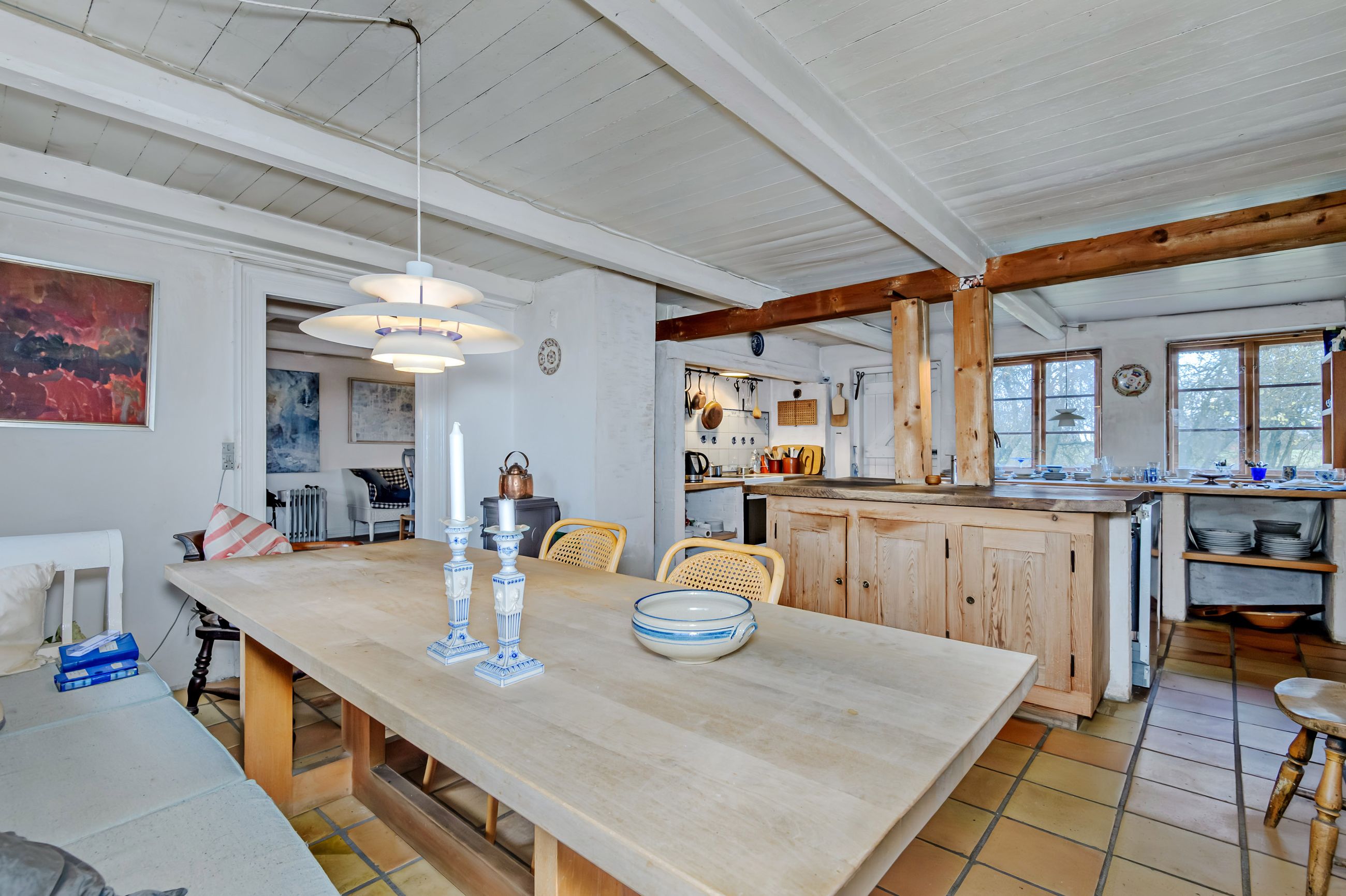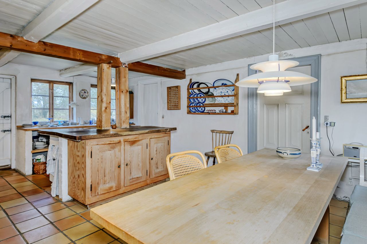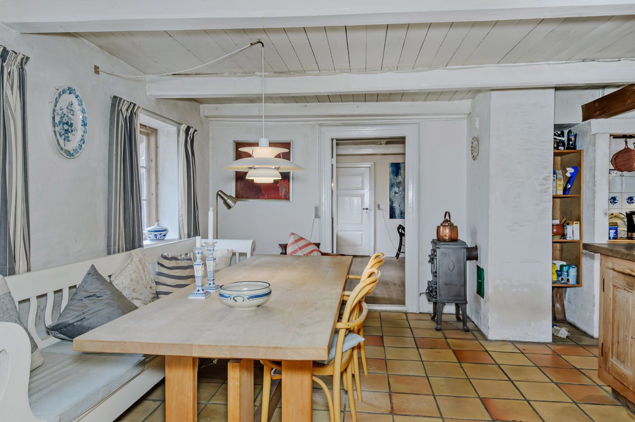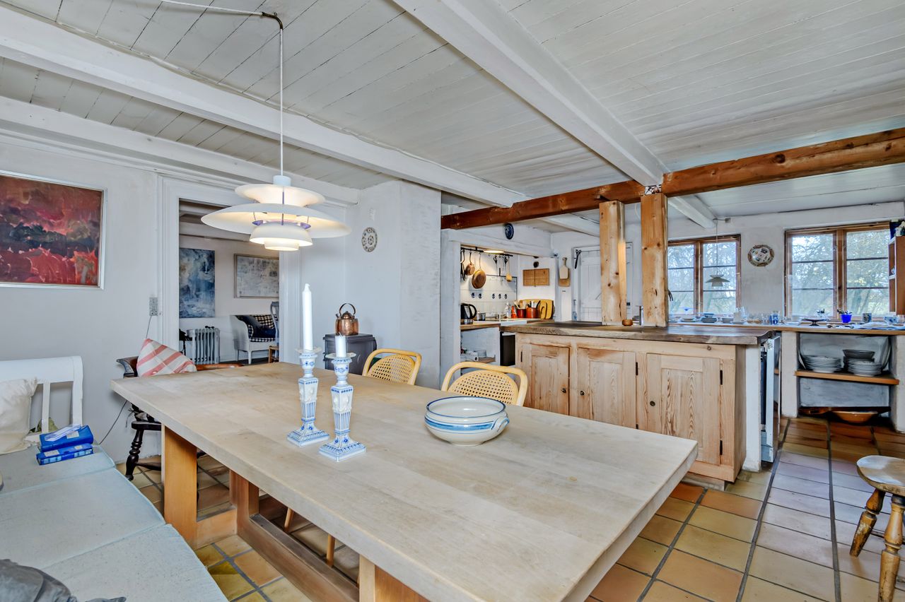 For enden af din egen grusvej finder du denne landvilla, som har en aldeles pragtfuld beliggenhed med skønne naturomgivelser og markerne hele vejen rundt. Kort afstand til Madesø og Tissø, skovområder og kuperet terræn. Ca. 5 min kørsel til motortrafikvej mod København. Selve beboelsesdelen er fordelt på 2 bygninger. Hovedhuset fremstår med pudsede facader og stråtag, indrettet i stueplan med bl.a.: Entre/fordeling, badeværelse og separat toilet, stort soveværelse og værelse, hyggelig stue med brændeovn, charmerende køkken med flisegulv og en stor spiseplads, spisekammer og entre/baggang der forbinder bygningerne. 1. sal: Repos og walk-in, dejligt værelse og stort soveværelse. Der er rigtig mange lækre detaljer med loft til kip og synlige hanebånd, trægulve og i stueplan synlige kraftige træbjælker. Den anden beboelsesbygning er opført i 1980 med murede og pudsede facader og rødt tegltag. Indrettet i stueplan som et stort rum (tidligere arkitekttegnestue) med brændeovn/masseovn placeret midt i rummet - et fantastisk rum til f.eks. liberalt erhverv, 2 generationer, teenageafdeling eller lign. Fuld kælder med murede buede lofter, der er et væld af muligheder, indrettet med bl.a.: Alrum, badeværelse, stort depotrum/disp. rum. 1. sal: Uudnyttet, dog findes et enkelt disp. rum eller som "værelse". Der er en muret længe til opbevaring, evt. dyrehold o.s.v. som er med til at skabe et fantastisk dejligt gårdmiljø, hvor man er totalt ugeneret. Stedet og beliggenheden er helt fantastisk, men køber må bl.a. påregne udgifter til genopretning af varmeanlæg, spildevandsrensning (SOP) samt nyt tag på hovedhuset indenfor få år. EJENDOMMEN HAR RIGTIG MEGET PLADS OG EN SUPER BELIGGENHED - MULIGHEDERNE ER MANGE FOR STORFAMILIEN, 2 GENERATIONER ELLER MÅSKE SOM LIBERALT ERHVERV !!