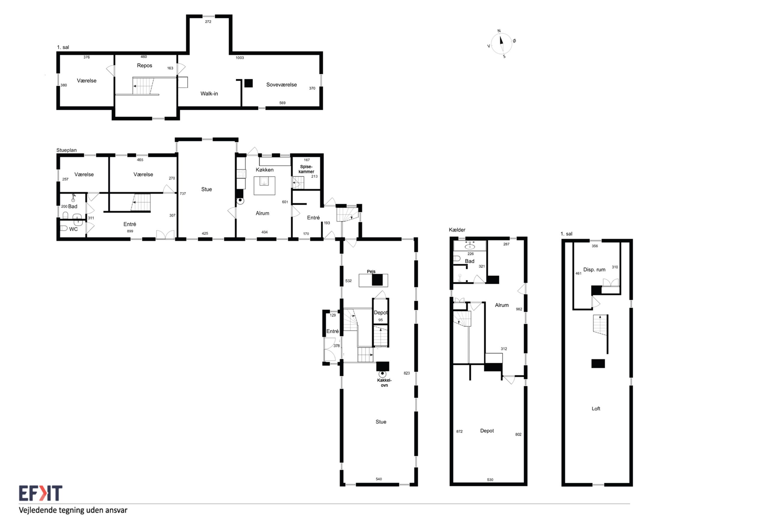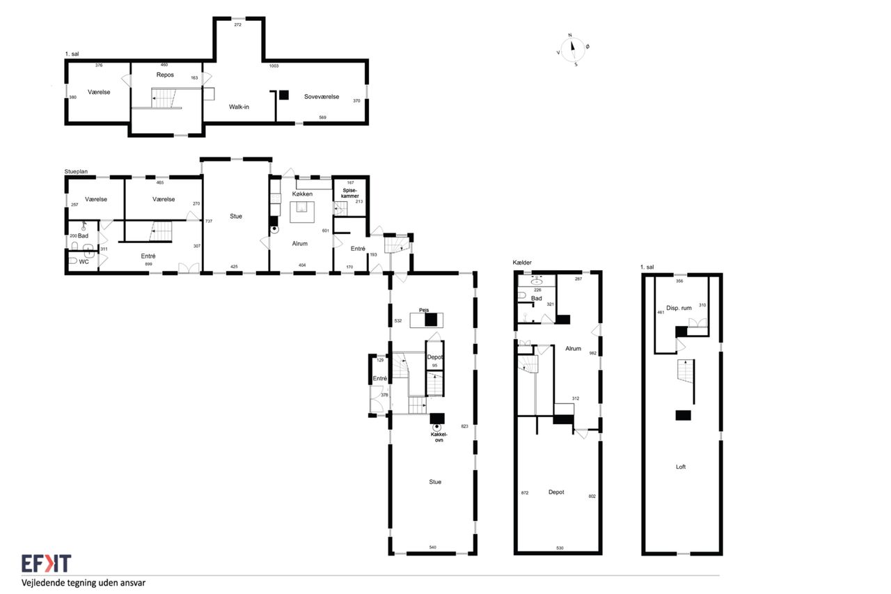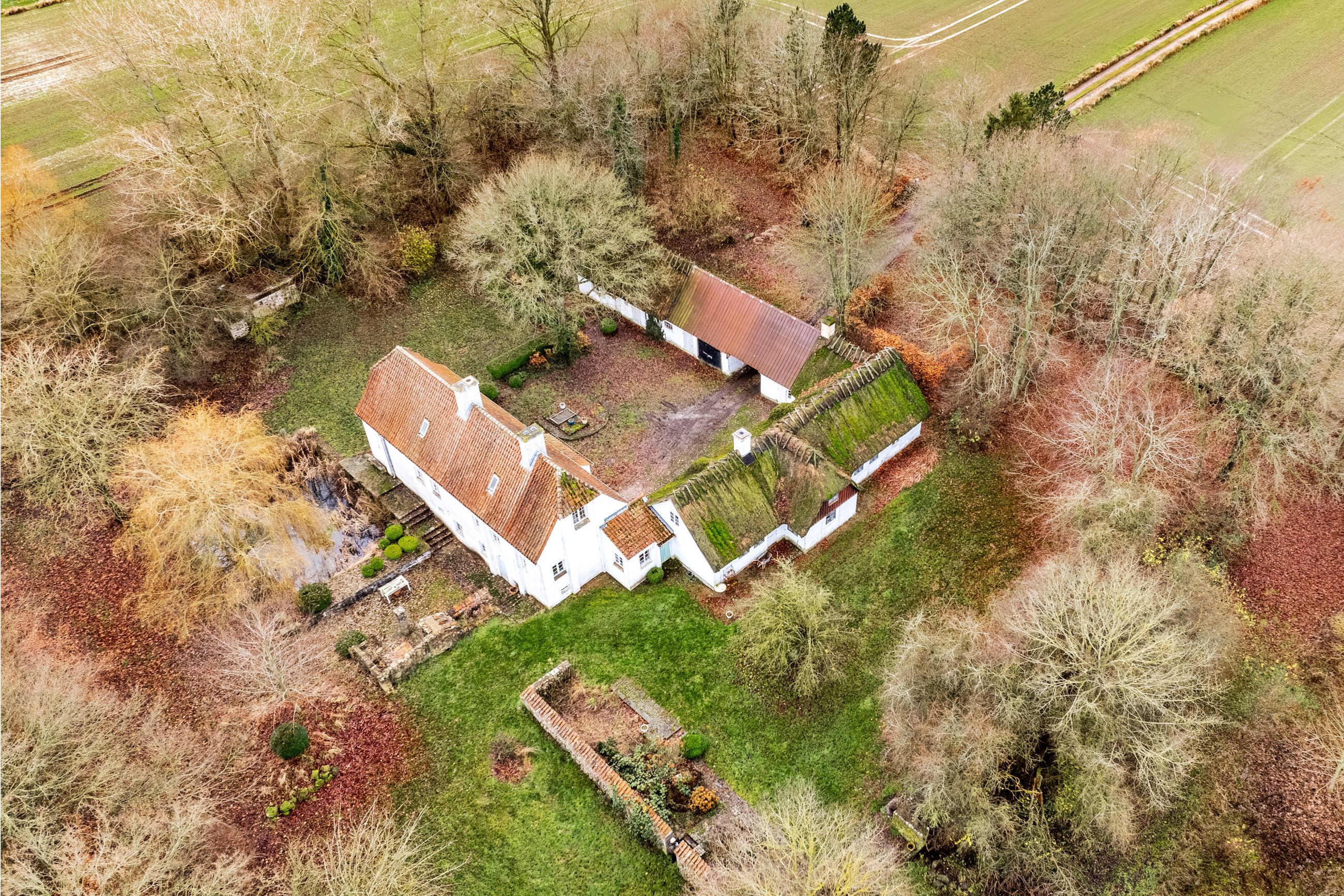 SPÆNDENDE OG STOR 3-LÆNGET LANDEJENDOM - BEBOELSE FORDELT PÅ 2 BYGNINGER - 1 HA GRUND/HAVE OG HELT UDEN NABOER