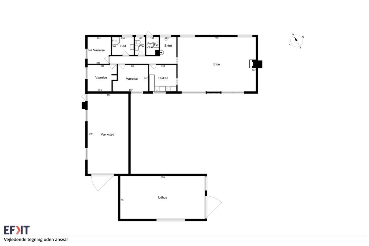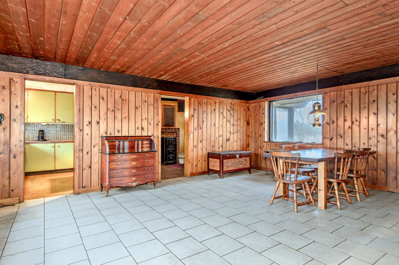 Selve boligen er solidt bygget, men der er ikke sket forbedringer/vedligehold i mange år, så en opdatering til nutidig standard kræver meget arbejde/penge. Men så kan du også skabe noget helt unikt. Der er tale om en muret villa med facader i gule sten, eternittag og primært termovinduer med trærammer. Indretningen: Entre/fordeling med kakkelovn og luft til luft varmepumpe, kæmpe stue med flisegulv, muret væg og brændeovn, ældre elementkøkken med spiseplads, fyrrum/vaskerum med et ældre oliefyr (har ikke været i drift længe), 2 separate rum med henholdsvis brusebad og toilet/håndvask, rummeligt soveværelse og 2 gode værelser.