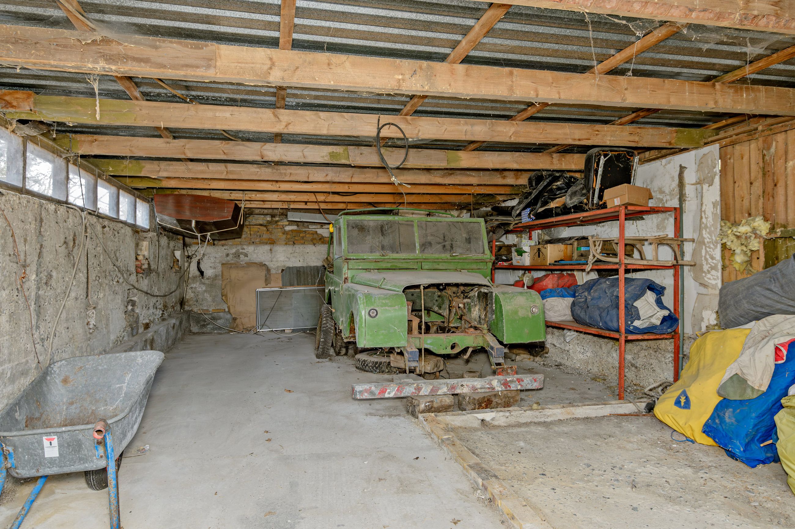 Samlede sekundære bygninger udgør i alt 97 m2, som muret garage og udhus i 2 separate rum/bygninger. Bygningerne tilsammen udgør en u-form, som kan bruges som rammerne om et sydvendt gårdmiljø.