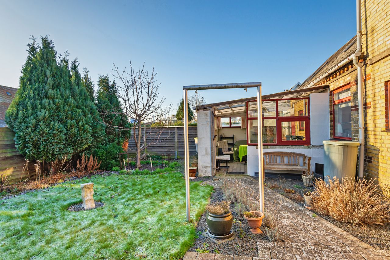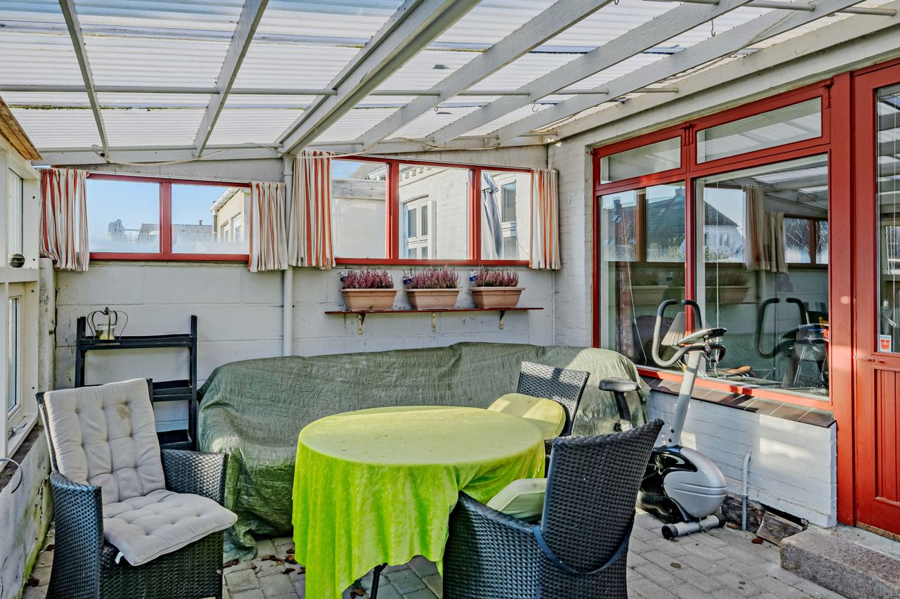 HALVT DOBBELTHUS MED GOD INDRETNING - TÆT PÅ BYMIDTEN - NEM LILLE HAVE OG CARPORT/UDHUS
