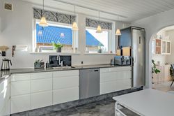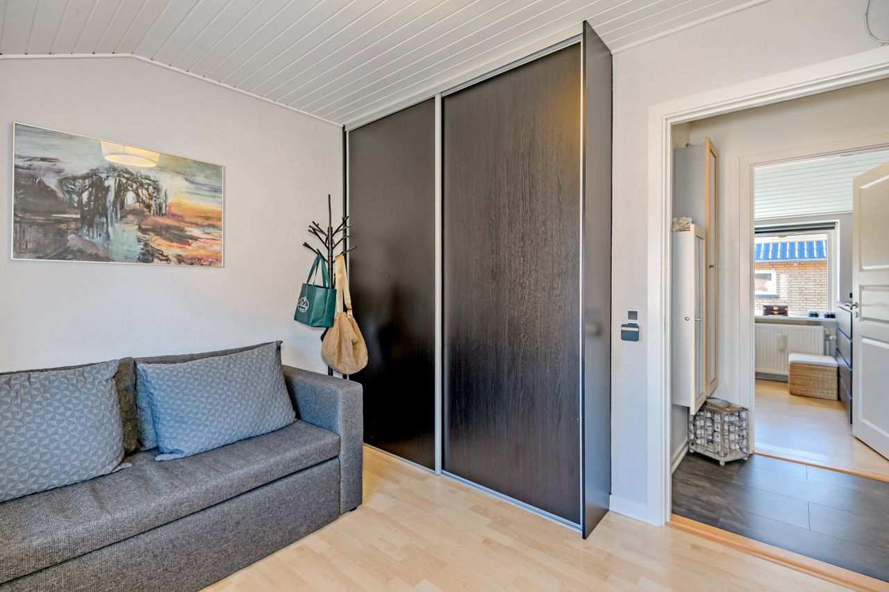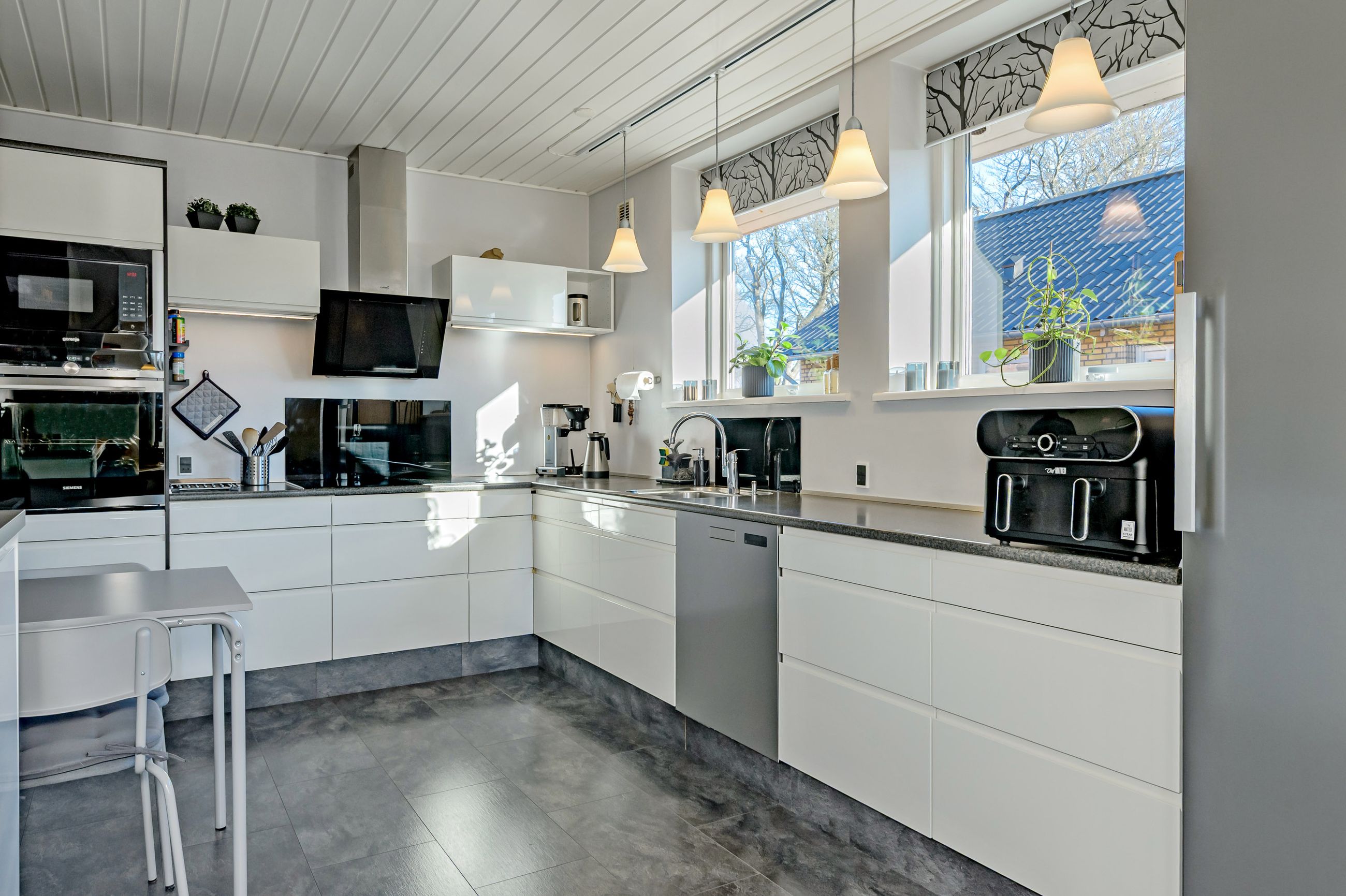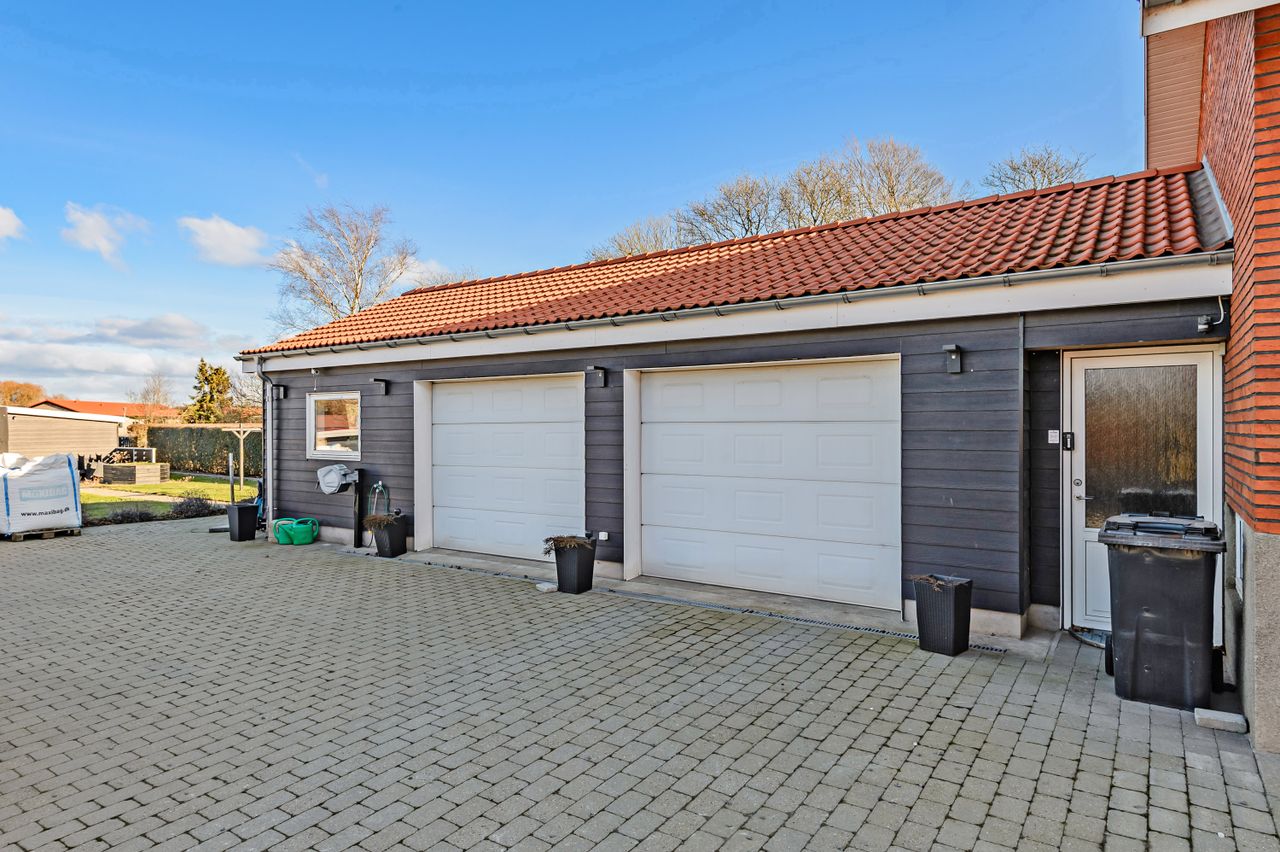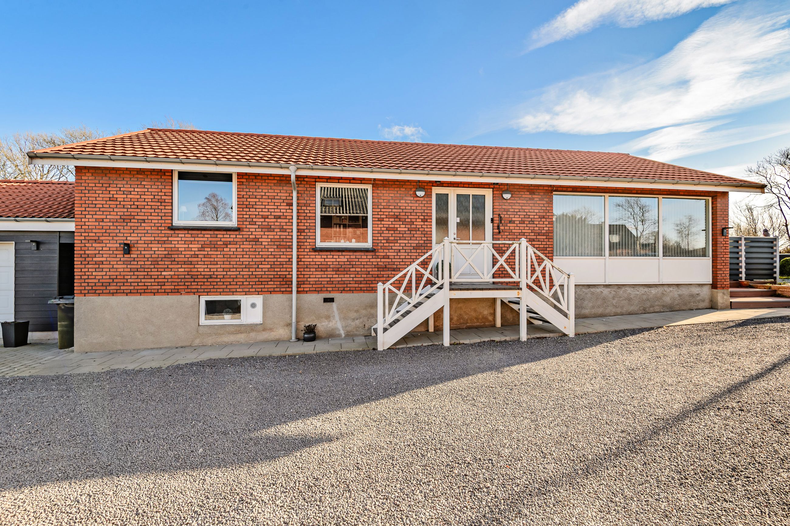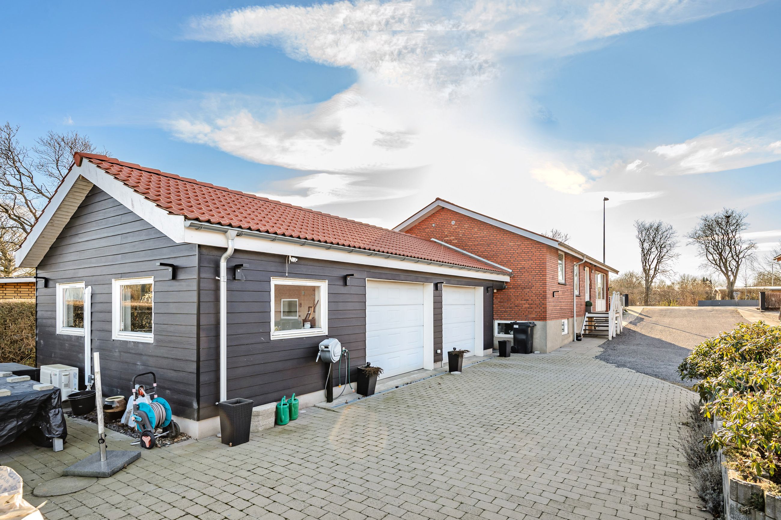 1 PLANS VILLA MED 40 M2 KÆLDER OG 65 M2 FLOT GARAGE/VÆRKSTED - TÆT VED ALLE BYENS FACILITETER Centralt i Kalundborg ligger denne velholdte 1 plans villa med kort afstand til både indkøb, arbejdspladser m.m. Der er gåafstand til toget Kalundborg Øst til København. Villaen er opført i røde mursten og med decratag, og er sammenbygget med en stor dobbeltgarage. Garage er beklædt med komposit "træ", som er vedligeholdelsesfrit. I haven ligger nyere udhus opført i samme stil. Selve boligen er indrettet i forskudte plan med 4-5 trin mellem stueafdeling og soveafdeling. I stueplan er der stor lys opholdsstue med udgang til sydvendt terrasse med el-markise, delvist åbnet køkken med hvide, højglanslåger og entre med garderobeplads. I soveafdelingen er der stort soveværelse med skabe, 2 værelser - begge med skabe og stort badeværelse med lyse fliser, gulvvarme og bruseniche. Der er nedgang til nederste plan/kælderen via garagen, hvor der er et stort vaskerum med bord og vask, trapperum og et ekstra "værelse"/kontor. Og med direkte adgang fra boligen ligger enhver hobby m/ks store ønske, nemlig den 65 m2 store garage med 2 elporte og indbygget værksted med varmepumpe. Boligen opvarmes med fjernvarme, hvor varmenheden er udskiftet i 2023. Der er opsat afkalker til vandet, som letter al rengøring ift. kalkaflejringer. Haven ligger ugeneret bag ejendommen og er anlagt med græs, flot hegn, nyere udhus, som er isoleret og med strøm. Bagerst i haven er der egen låge med udgang til grønt areal. Der er mange flisebelægninger i haven og ved boligen, som gør det nemt at færdes overalt på ejendommen. BOLIG MED DET HELE - VELEGNET TIL FAMILIE MED BØRN, MANGE AKTIVITETER ELLER DEM SOM BARE VIL BO CENTRALT
