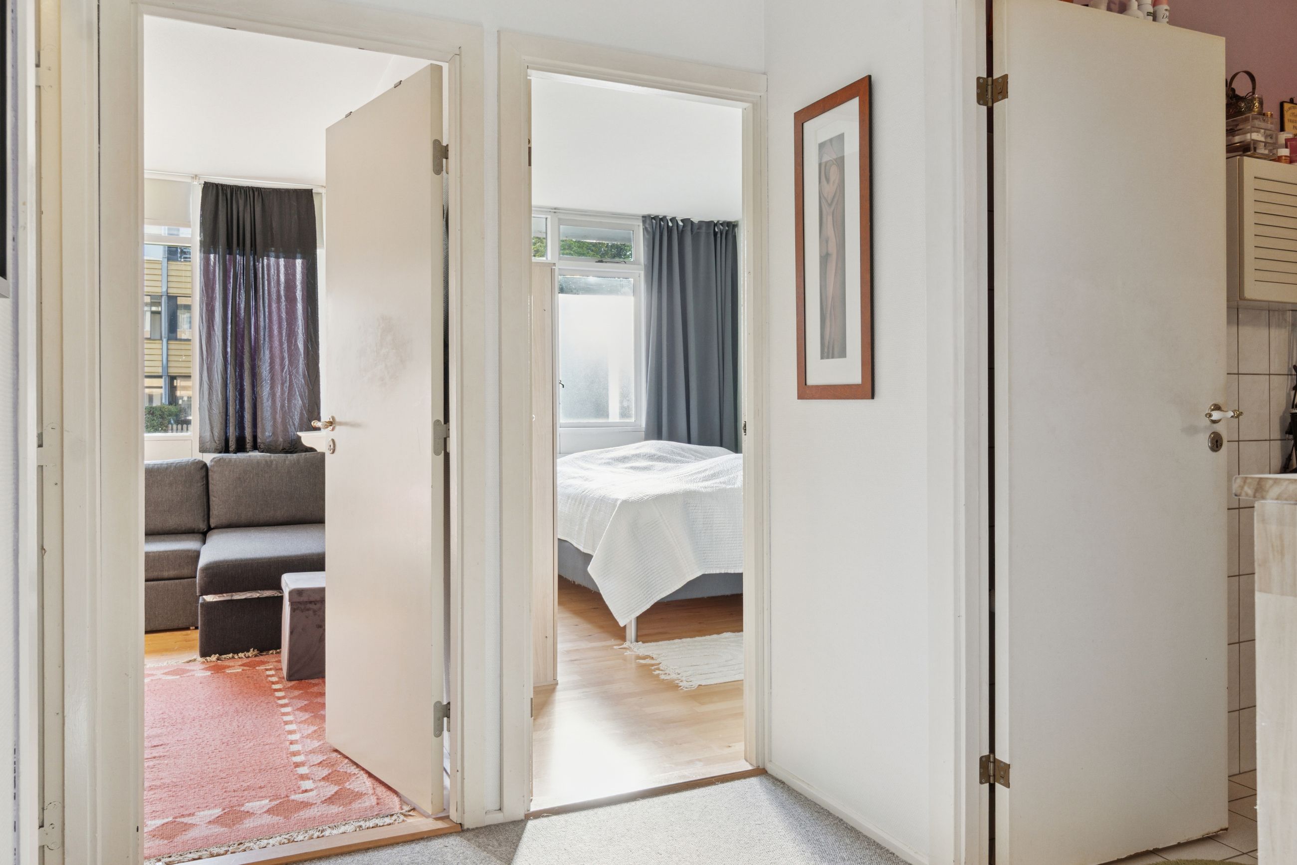 Lejligheden rummer desuden to værelser, begge med en regulær størrelse, samt et badeværelse med bruseniche. Planløsningen giver gode muligheder for at indrette sig både som enlig, par eller lille familie.