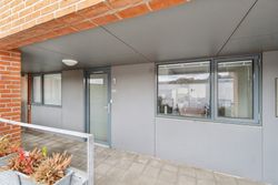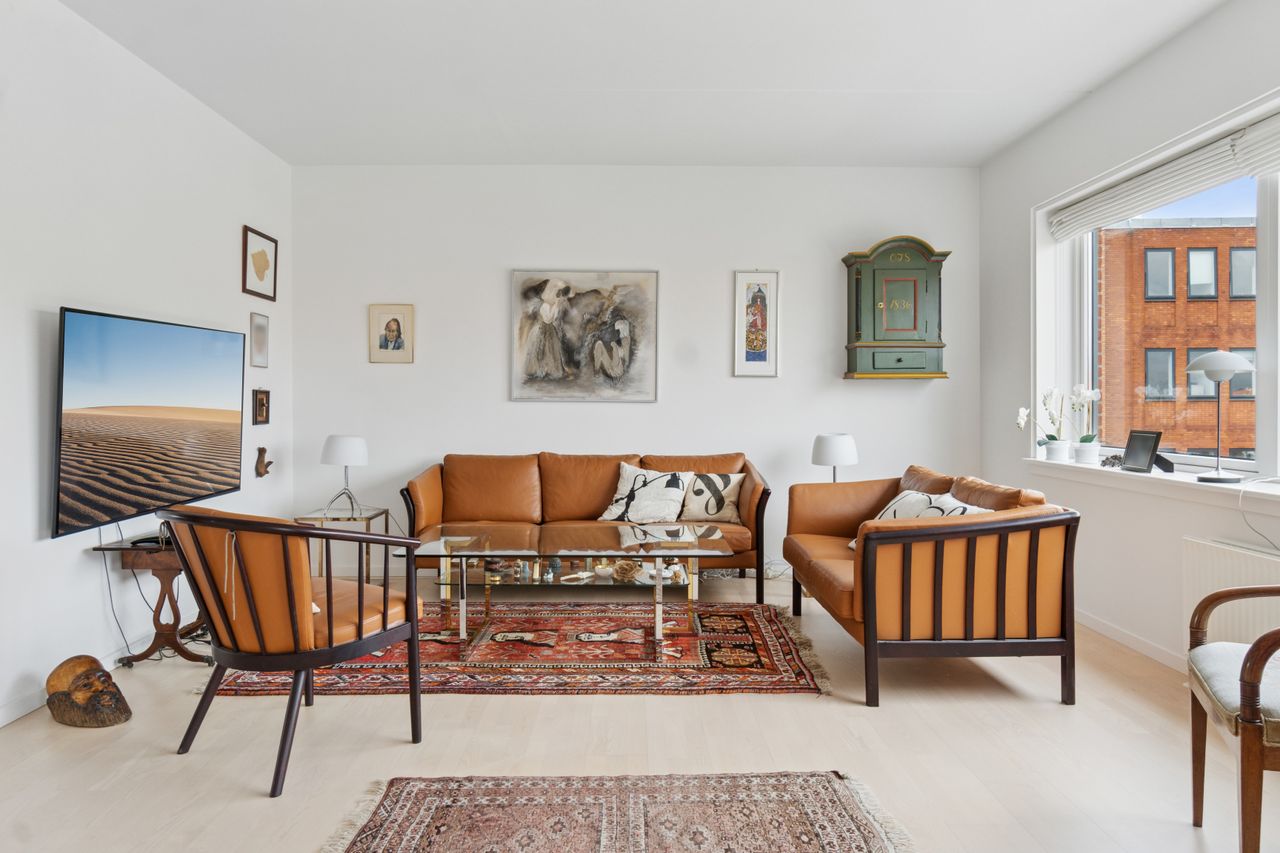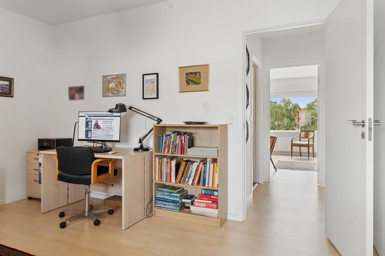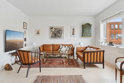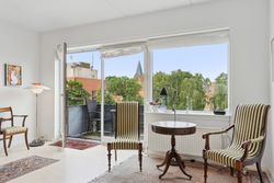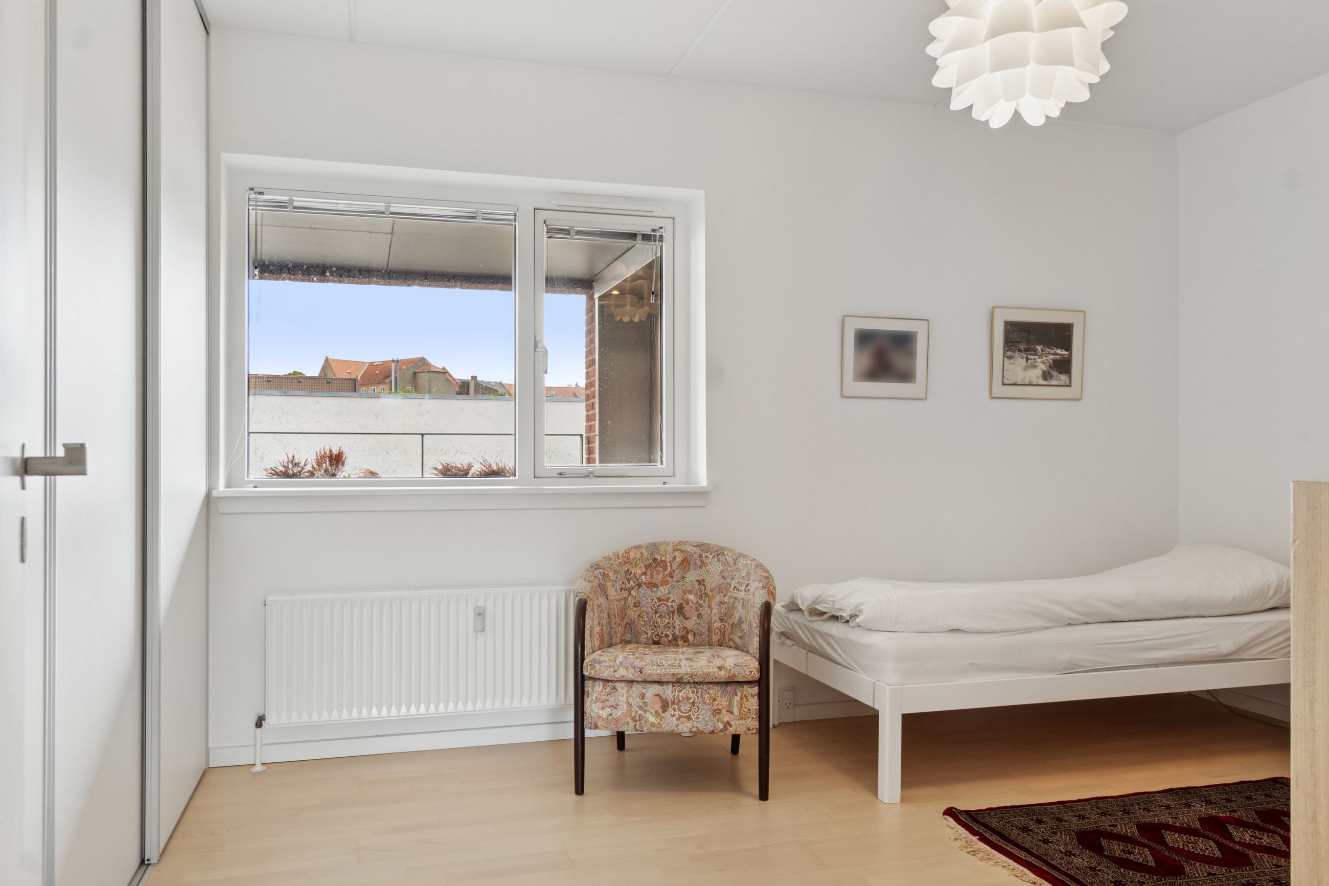 Lejligheden ligger i en pæn rødstensejendom med elevator, butik i gadeplan og parkeringspladser bagved. Her kommer du til at bo midt i byen, hvorved du har nem adgang til alle centrums tilbud i form af både butikker, spisesteder og kulturoplevelser. På samme vis får du kort afstand til alt det, du har behov for i dagligdagen, og du kan således nå indkøb og stationen til fods. Også Lystskovens rekreative omgivelser spadserer du til. Pendler du i bil, er motorvejen ligeledes let tilgængelig.
