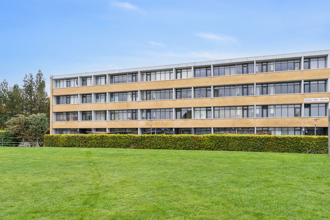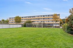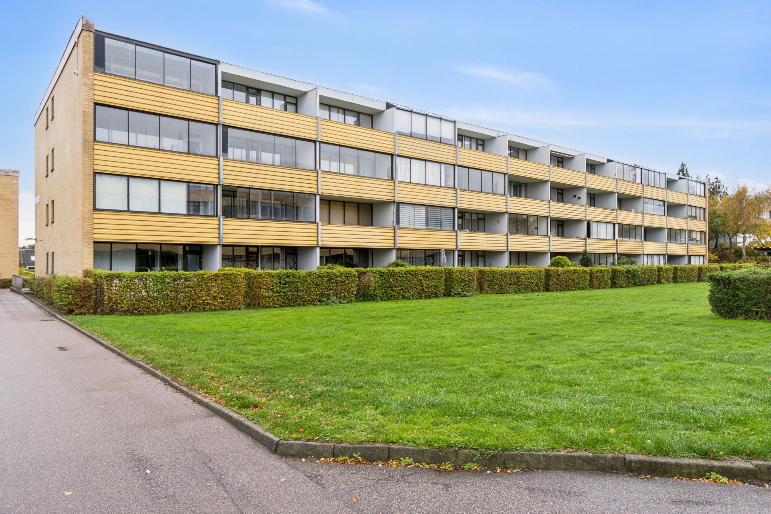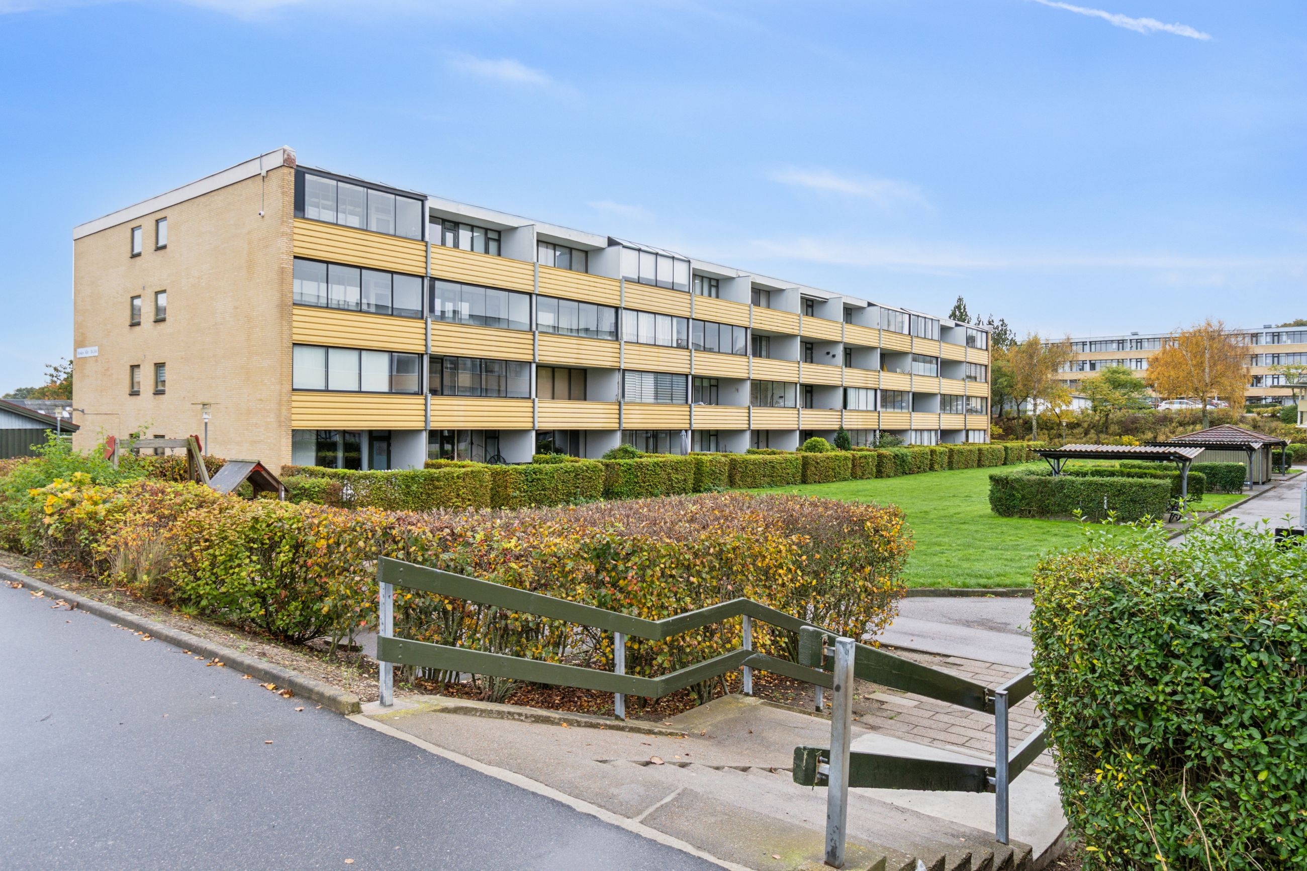 Ejendommen har stået her med sine klassiske lige linjer og indbyggede altaner siden 1971. Ejerforeningen er god, og det er de grønne arealer også, som flankerer bygningen. Udenomsarealerne er fine, jovist, men altanen mod vest er nu dejligst – særligt når eftermiddags- og aftensolen rammer. På en praktisk note er der parkeringsplads næsten lige uden for hoveddøren.