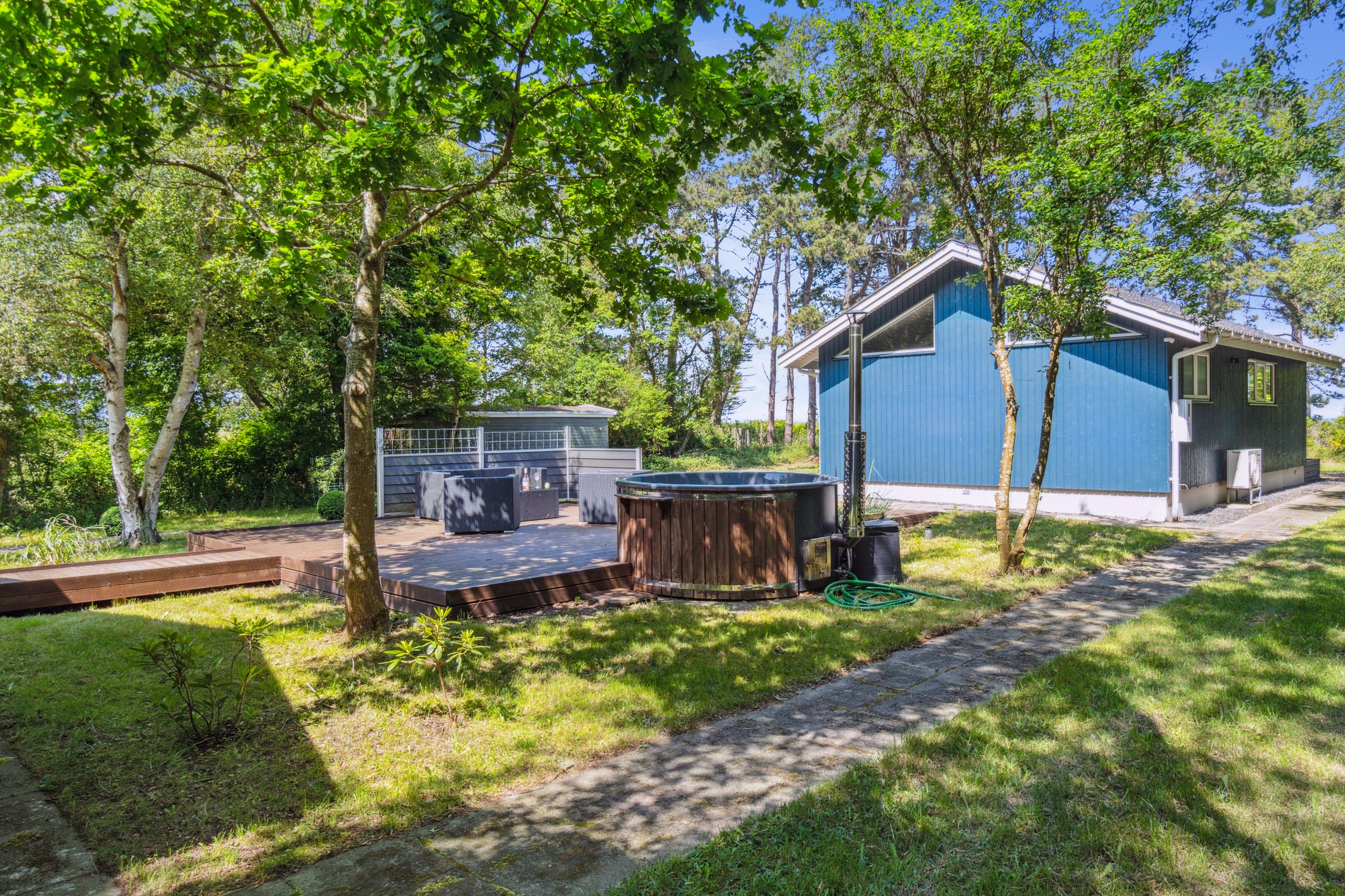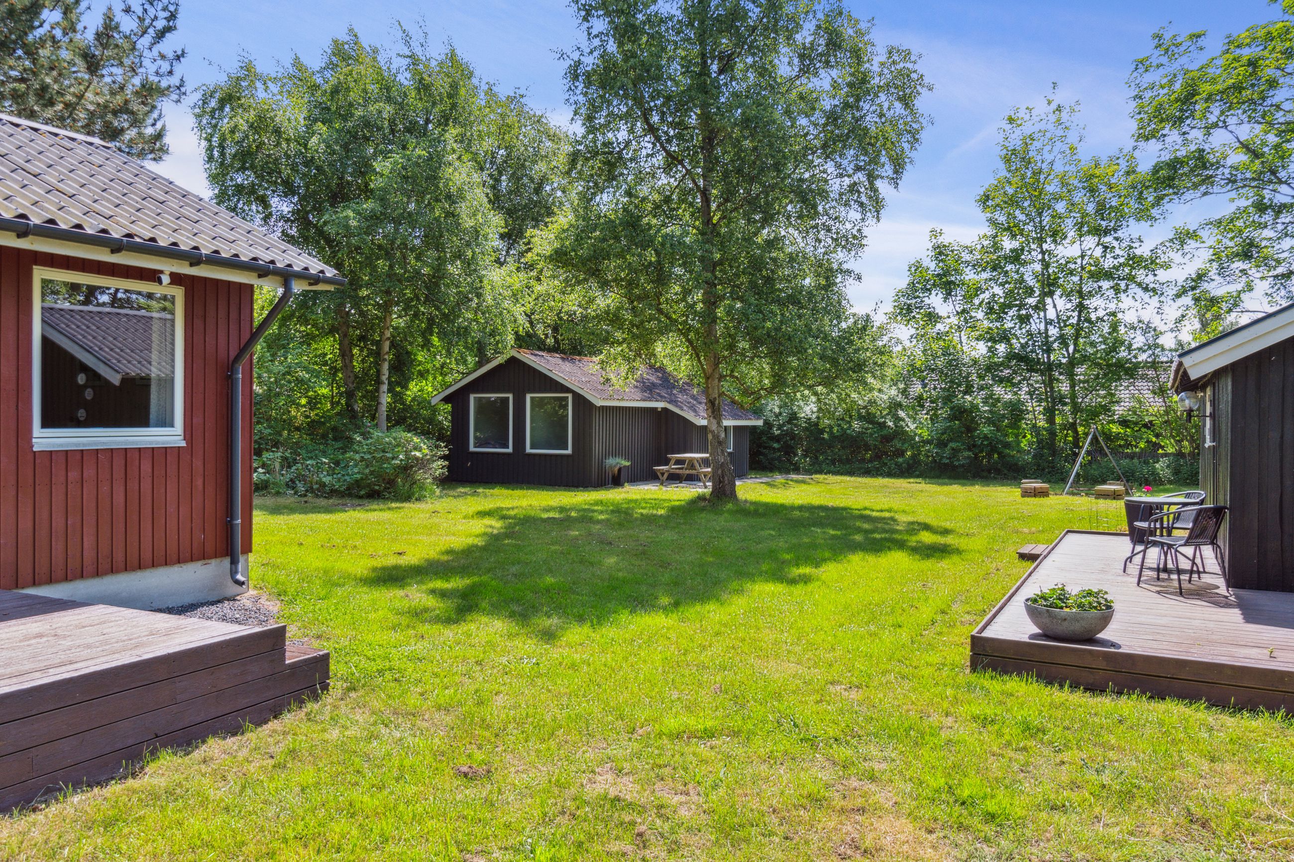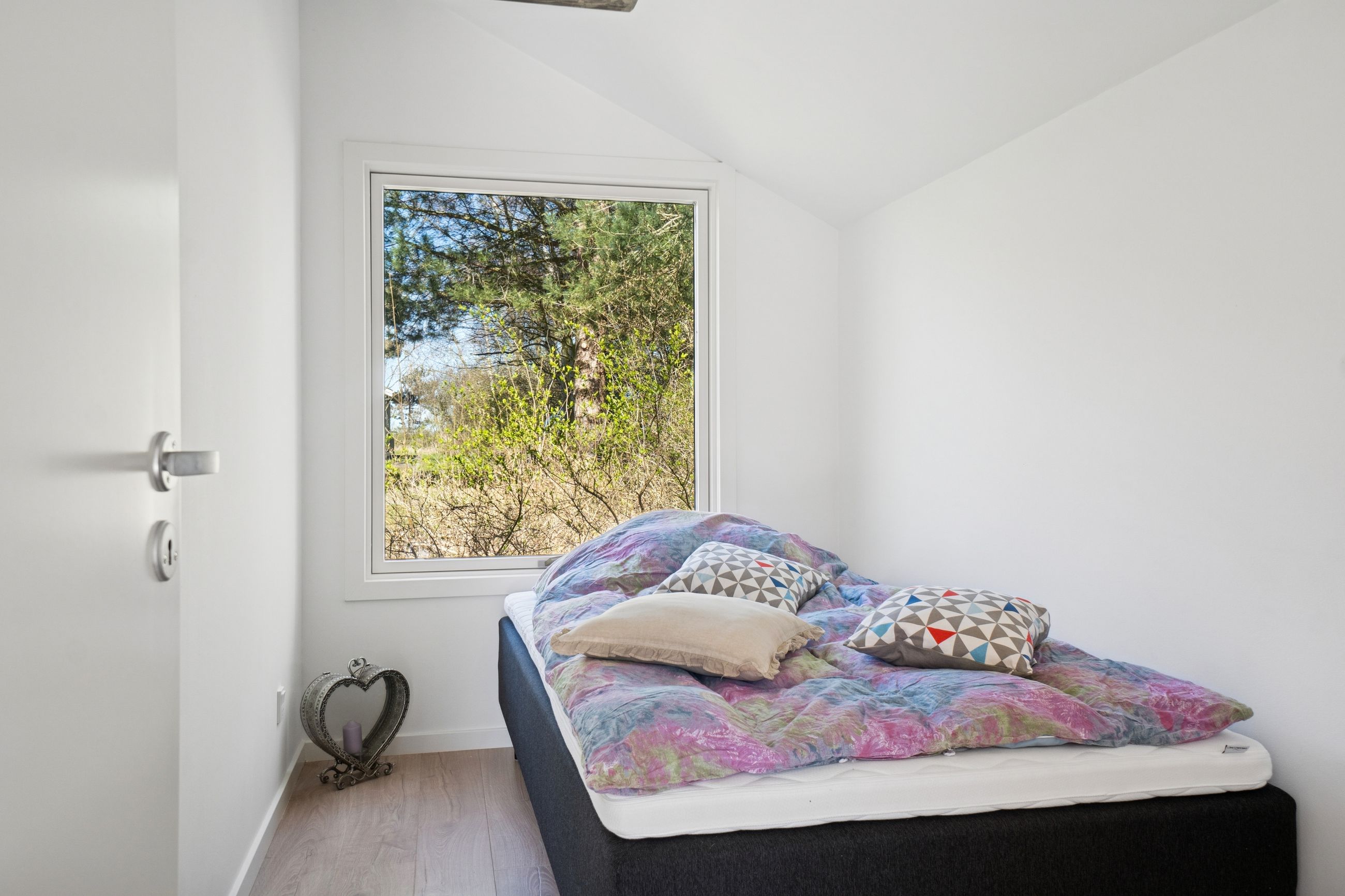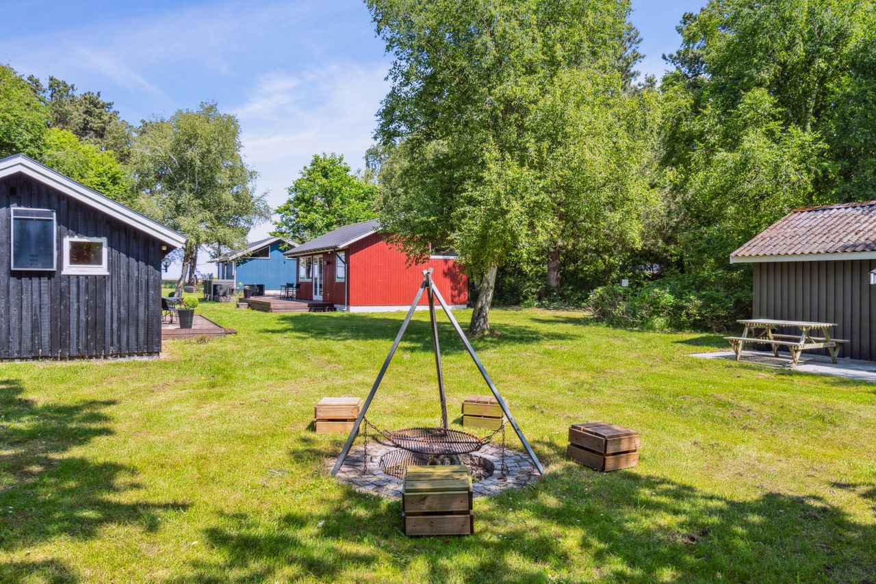 På grunden er flere af de gamle træer bevaret, hvilket sørger for læ, skygge og ekstra privatliv. Der er derudover græsplæne, bålsted og en stor terrasse, hvor I kan slappe af i solen med flot udsigt til vandet. Terrasserne fungerer som de centrale samlingspunkter under åben himmel. Som en lækker detalje er her ovenikøbet vildmarksbad.