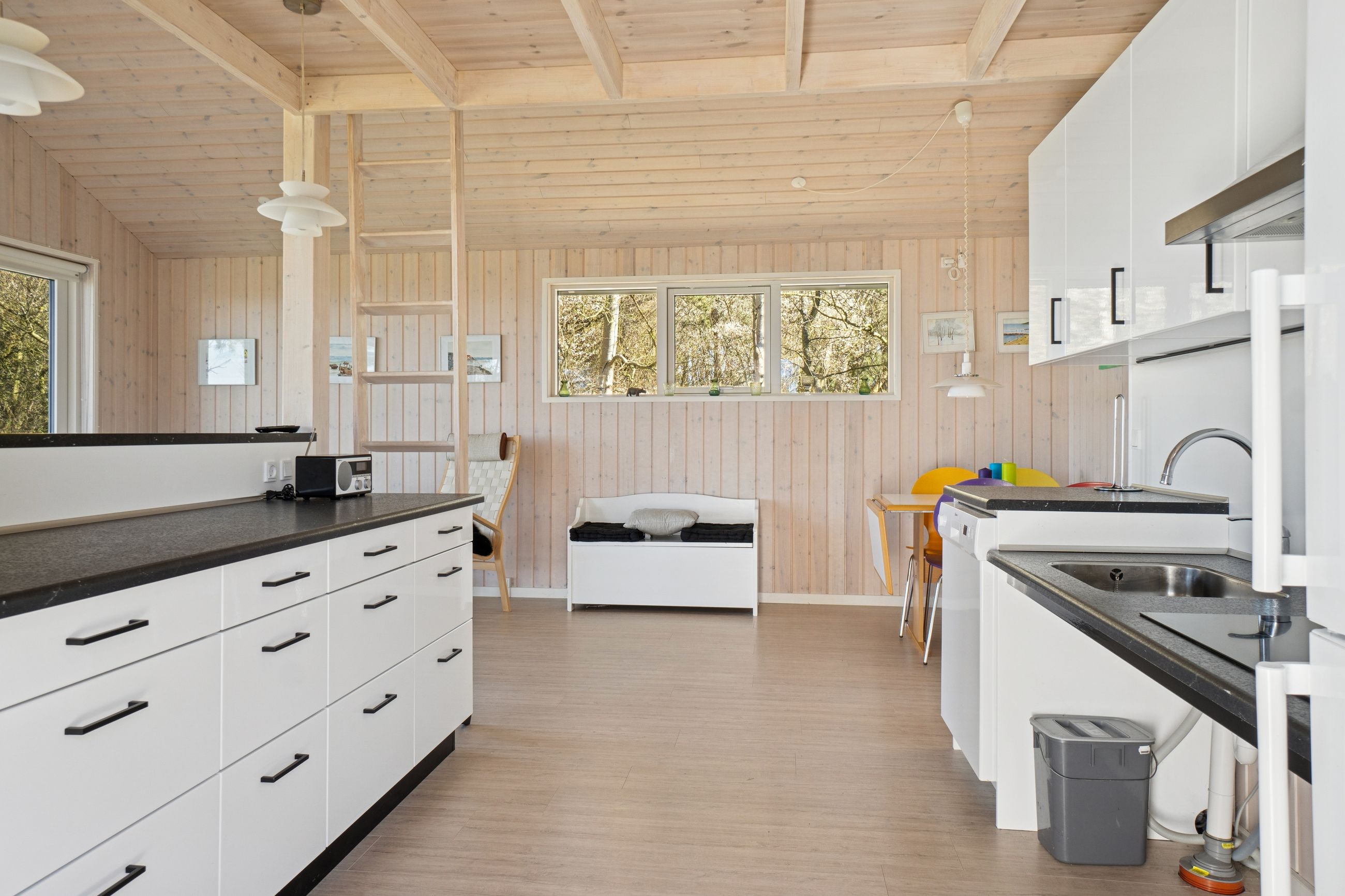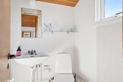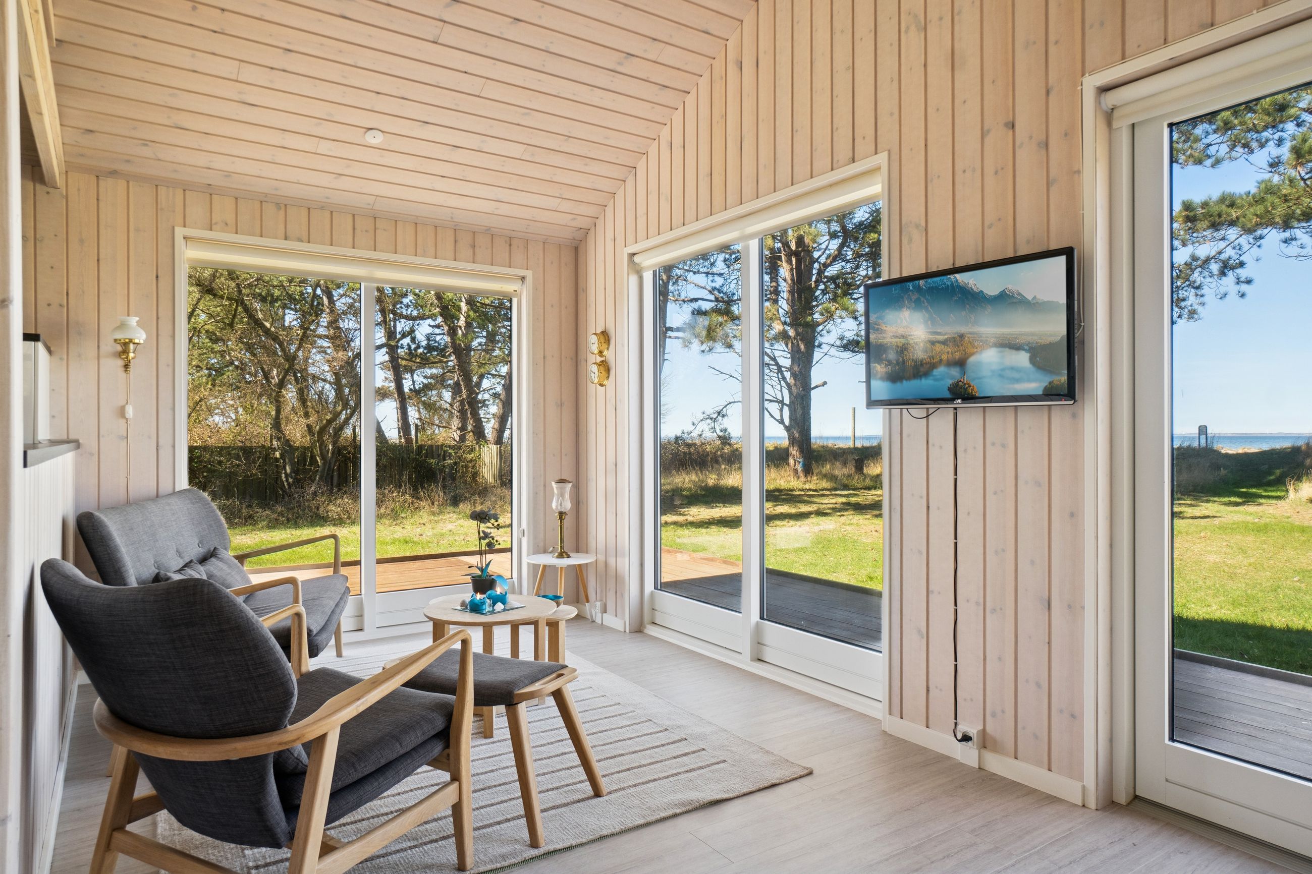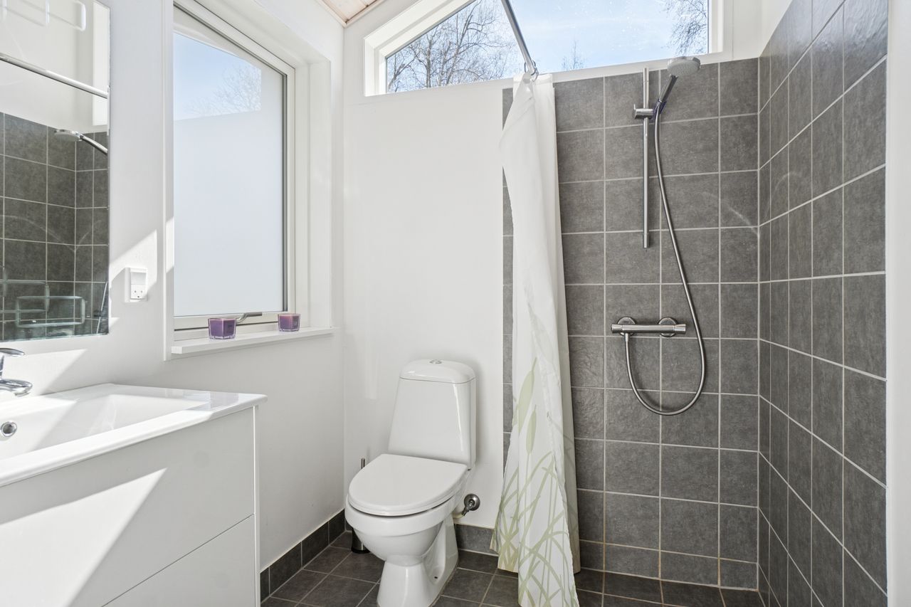 På grunden er flere af de gamle træer bevaret, hvilket sørger for læ, skygge og ekstra privatliv. Der er derudover græsplæne, bålsted og en stor terrasse, hvor I kan slappe af i solen med flot udsigt til vandet. Terrasserne fungerer som de centrale samlingspunkter under åben himmel. Som en lækker detalje er her ovenikøbet vildmarksbad.