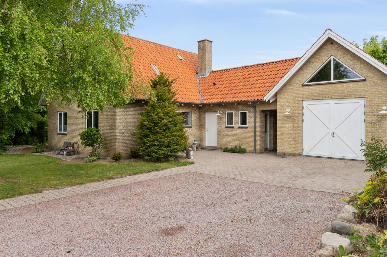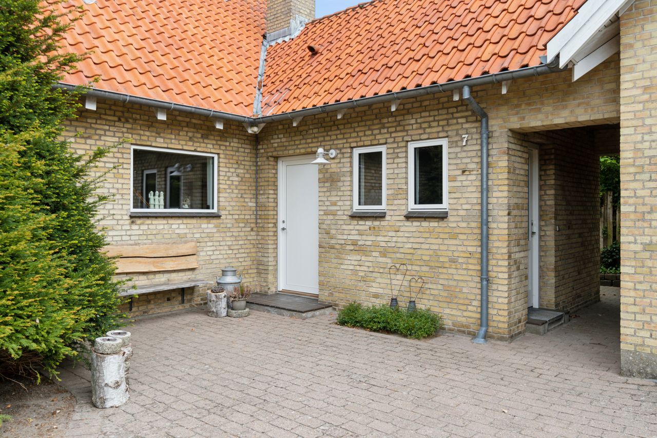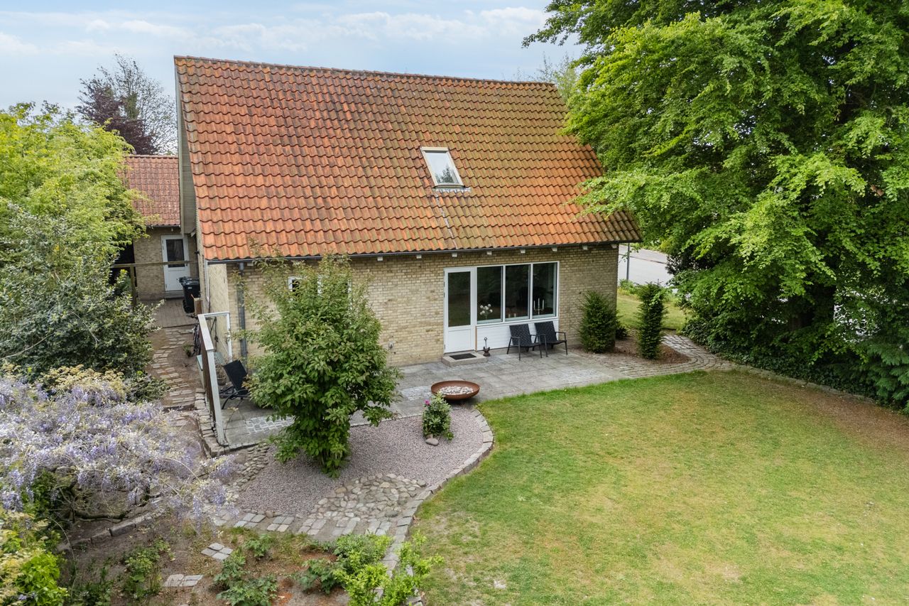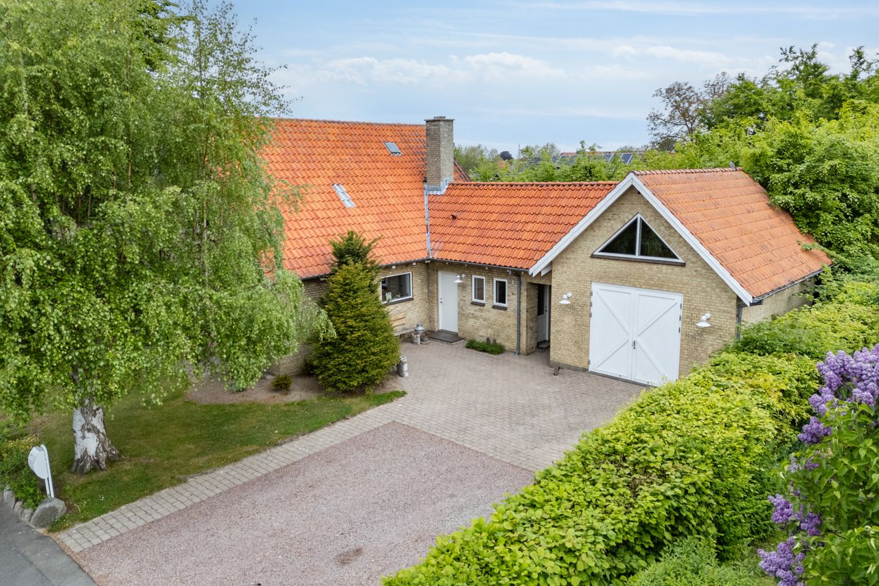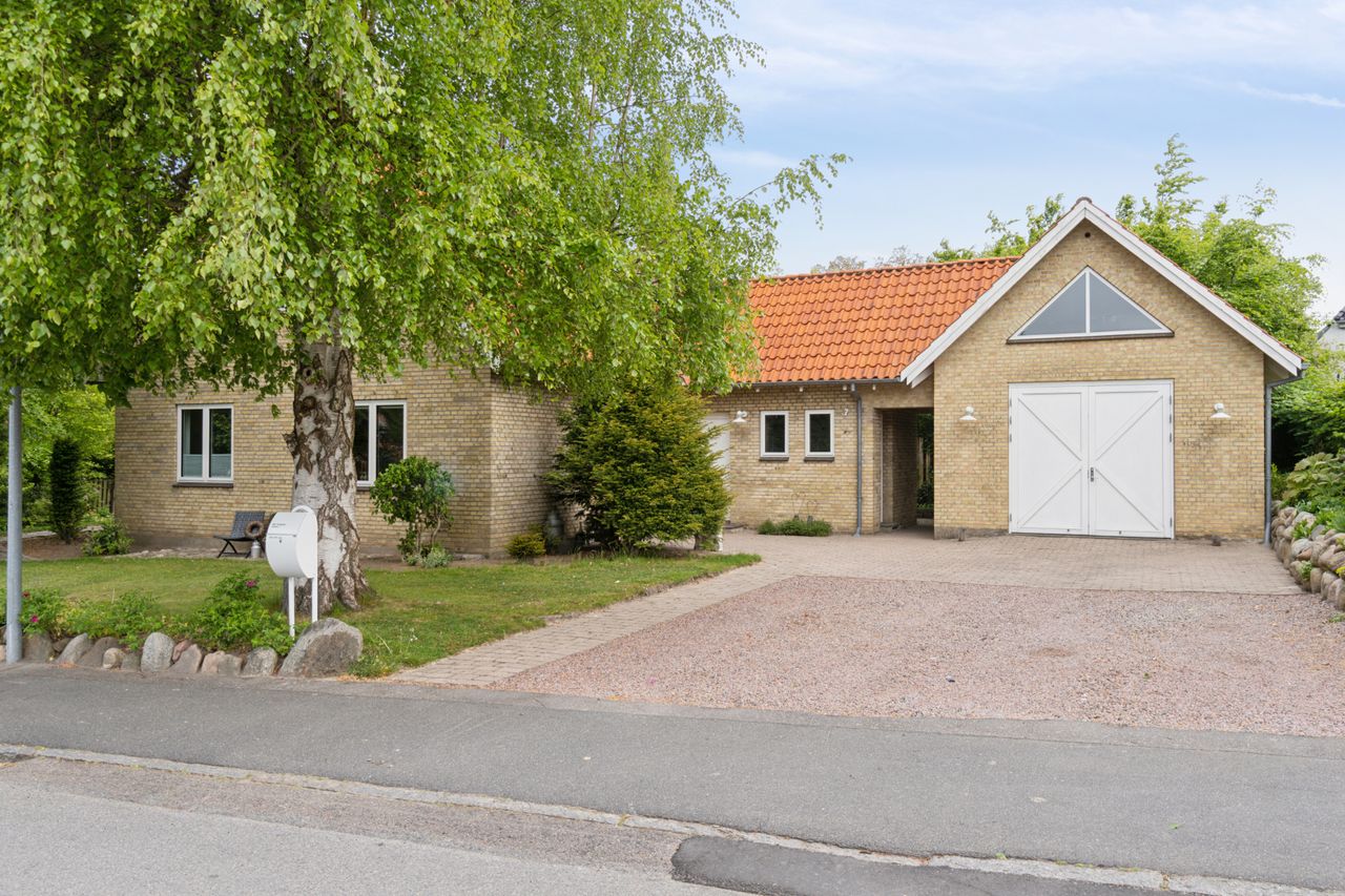 Ejendommen er opført i 1963 og præsenterer sig pænt med gule sten, rødt tag og en rummelig indkørsel med plads til mere end to biler. Hjemmet er renoveret fra slut 2023 til starten af 2024, og det ses tydeligt i det elegante køkken fra Kvik, der ligger i delvis åben forbindelse med stuen. I den indretningsvenlige stue stråler solen gavmildt ind fra syd og vest gennem de nye vinduer og havedøren, og resten af stueplanet rummer to gode værelser samt et nyt badeværelse og bryggers, der begge har gulvvarme.