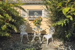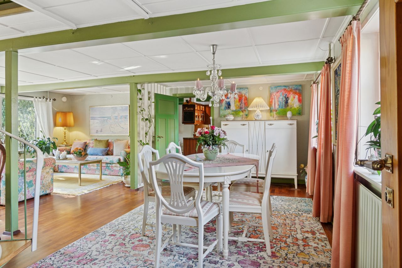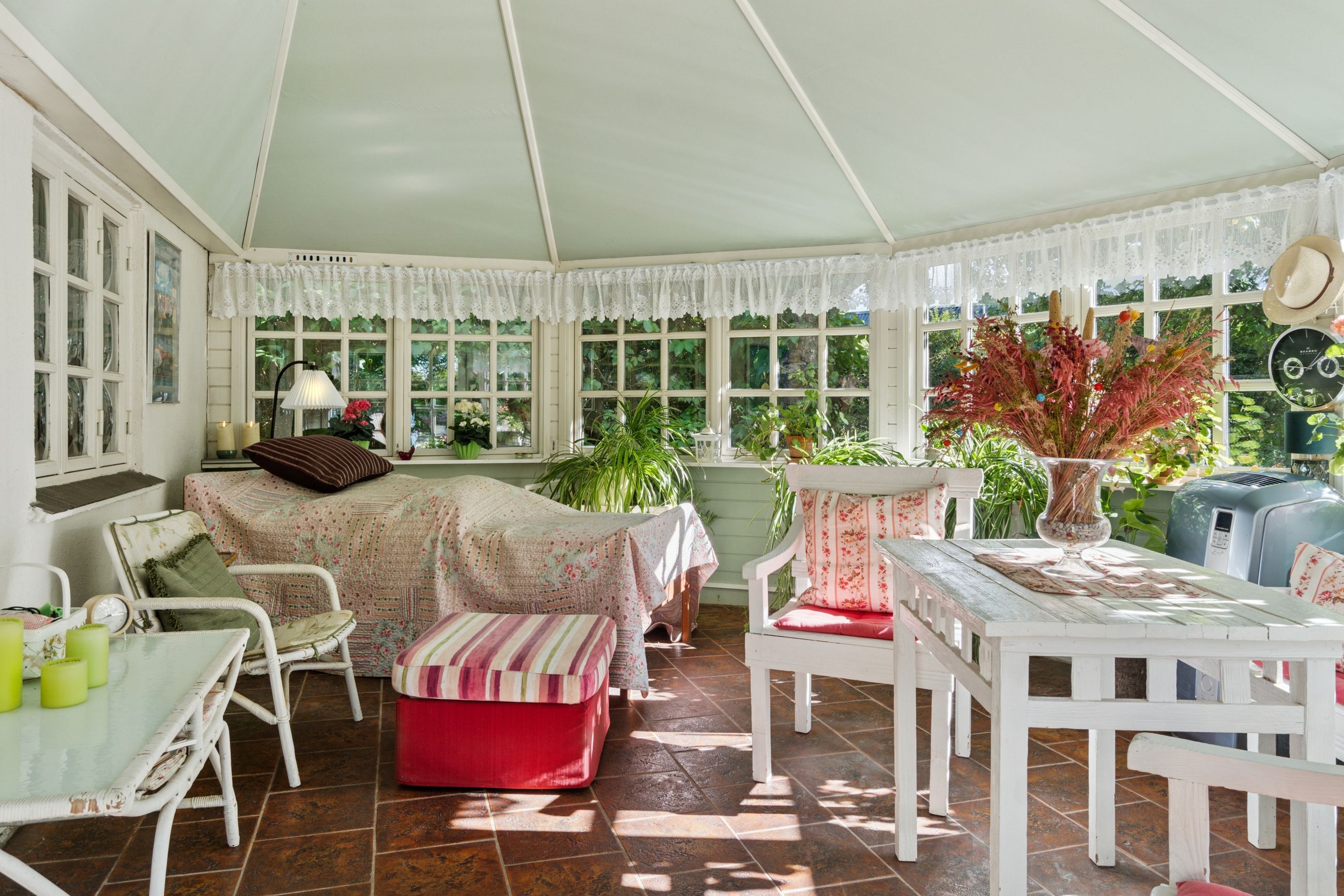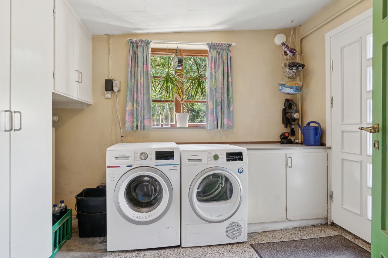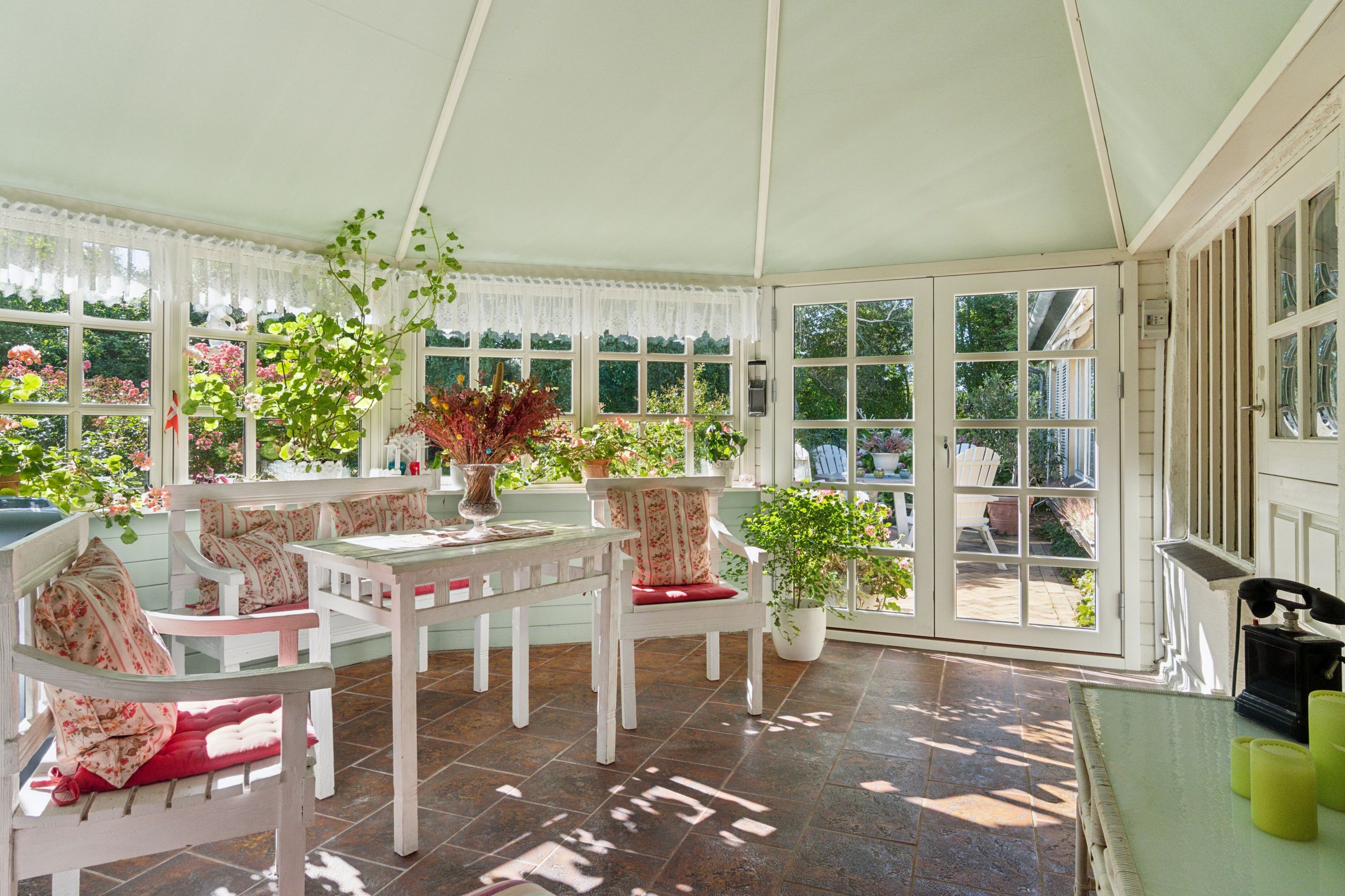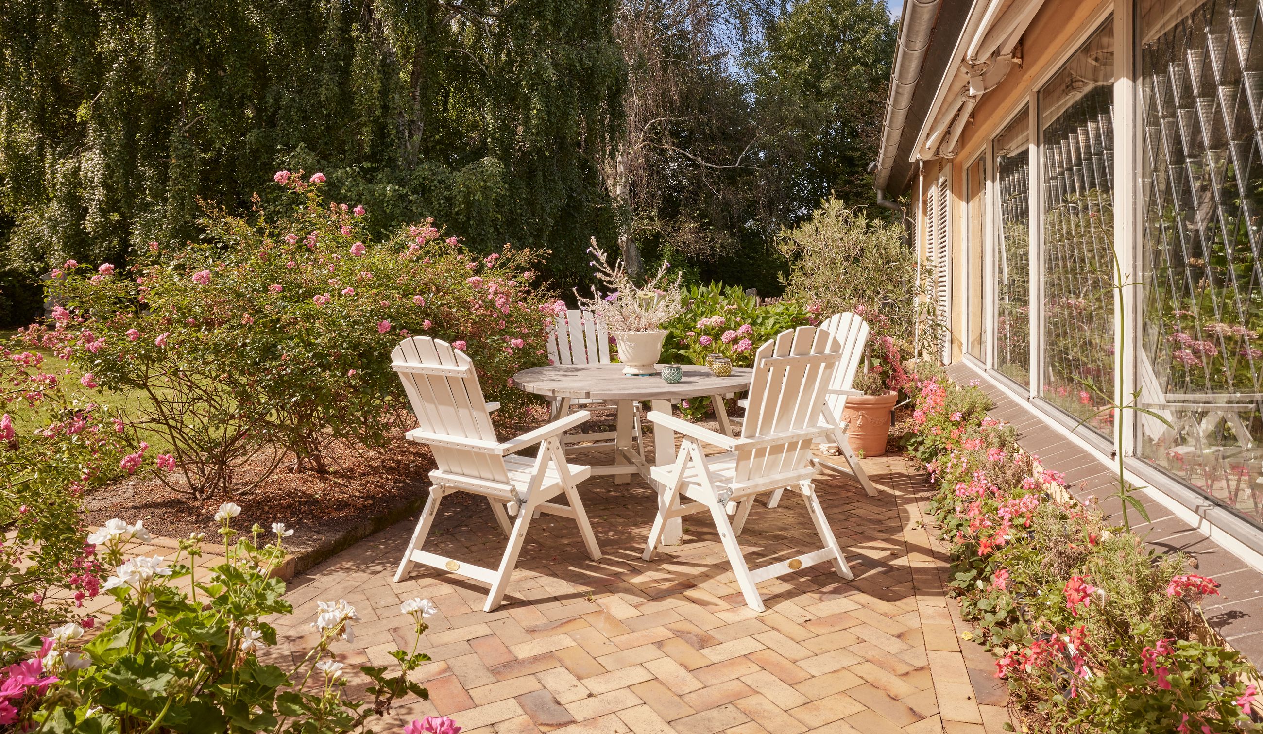 Udearealerne er anlagt med stor gårdsplads, solvendte terrasseområder og en frodig have, der indrammer ejendommen med grønne flader. Den store udestue giver en smidig overgang mellem hus og have, og grunden giver i øvrigt rig plads til haveliv, leg og mange andre projekter.
