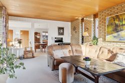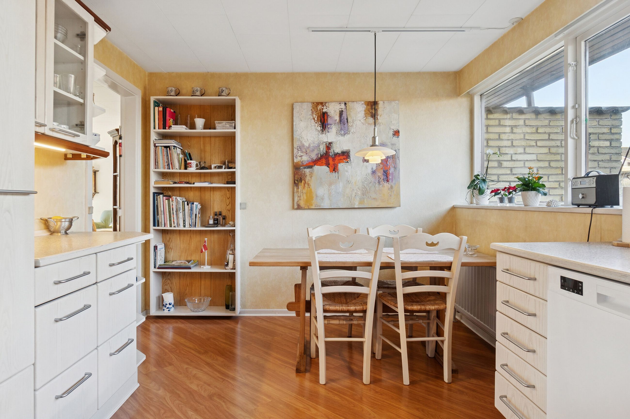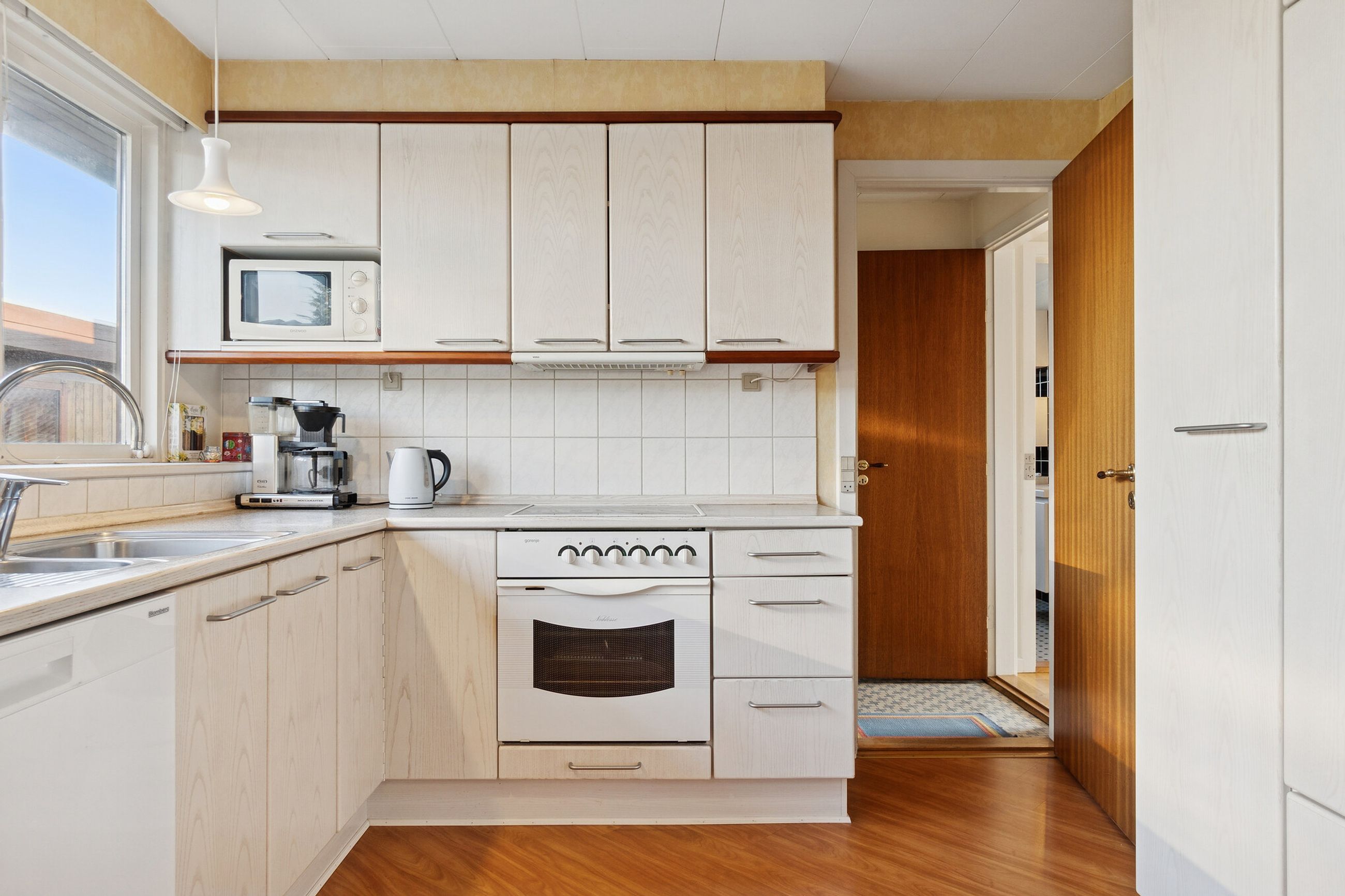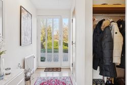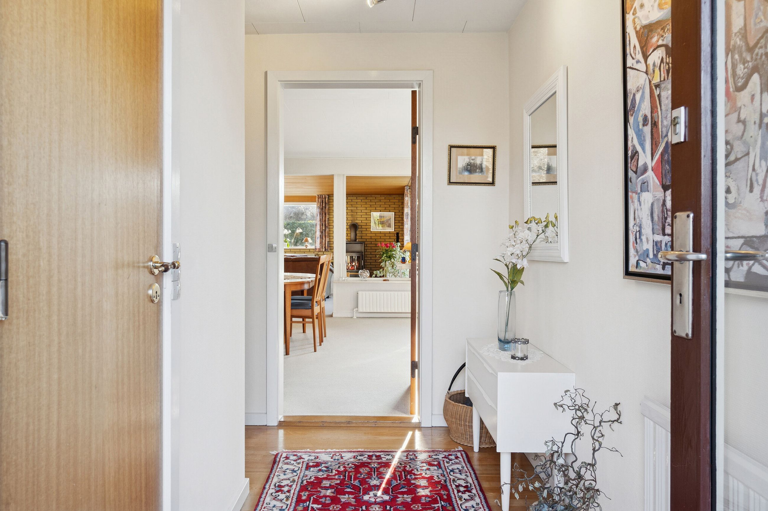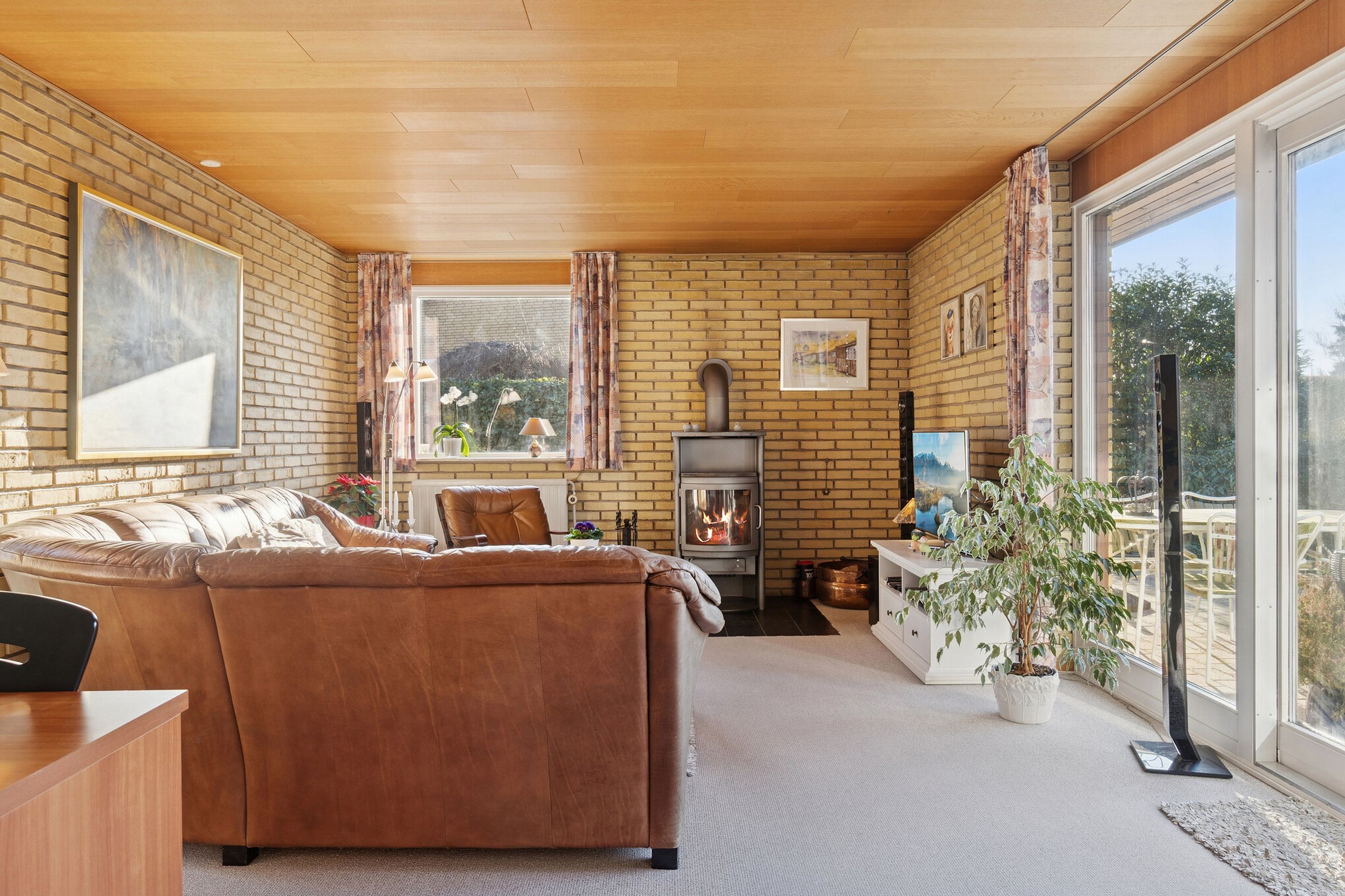 Udefra præsenterer villaen sig i gule sten med træbeklædning og klassisk sadeltag. Inden døre er hjemmet holdt i lyse nuancer med pæne gulve, og samtlige rum får et rigtig skønt lysindfald.