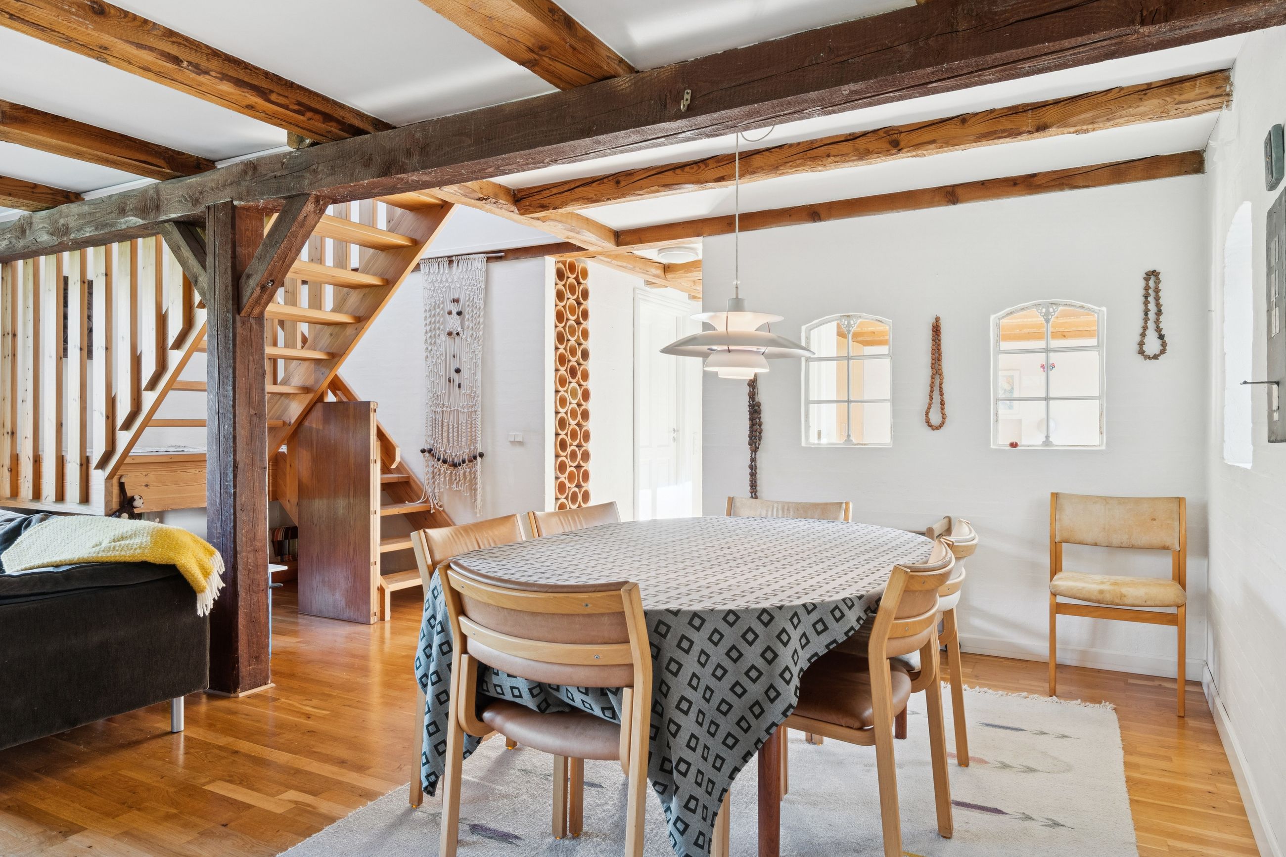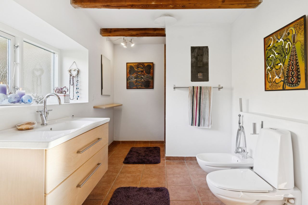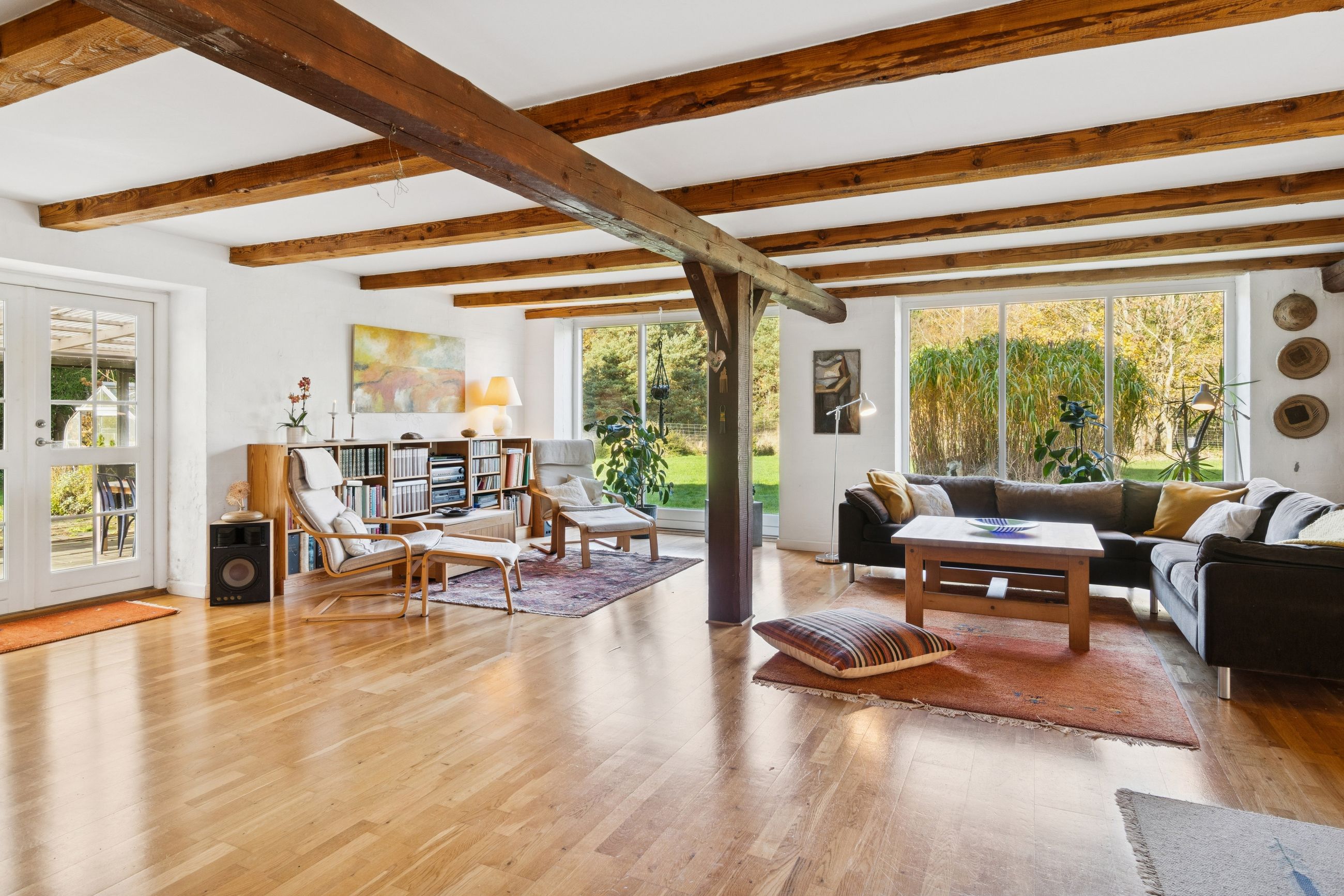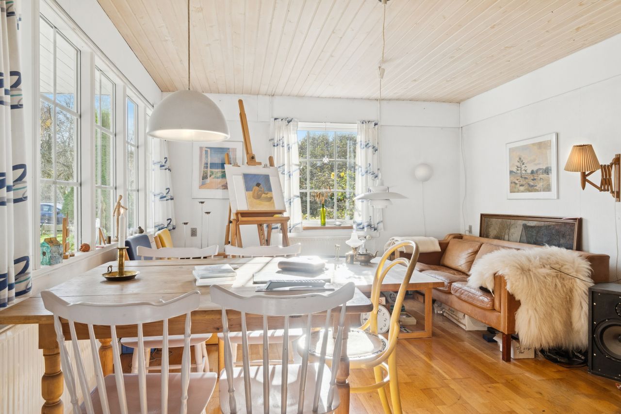 Ombygningen har medført gulvvarme i hele stueplanet, og I får straks øje på de charmerende finesser såsom loftsbjælker og hanebånd. Hjemmets hjerte er et vældigt stort opholdsmiljø med stue, alrum og køkken, der inviterer til festlige lejligheder såvel som nærvær med familie. Der er tilmed et ekstra køkken, som kan blive sit eget afsnit med et værelse, en stue og et badeværelse. Samme etage har yderligere et værelse, et badeværelse og et bryggers. Førstesalen byder på fine plankegulve samt en stor stue og to værelser, og her kan I tænke på flere udnyttelsesmuligheder.