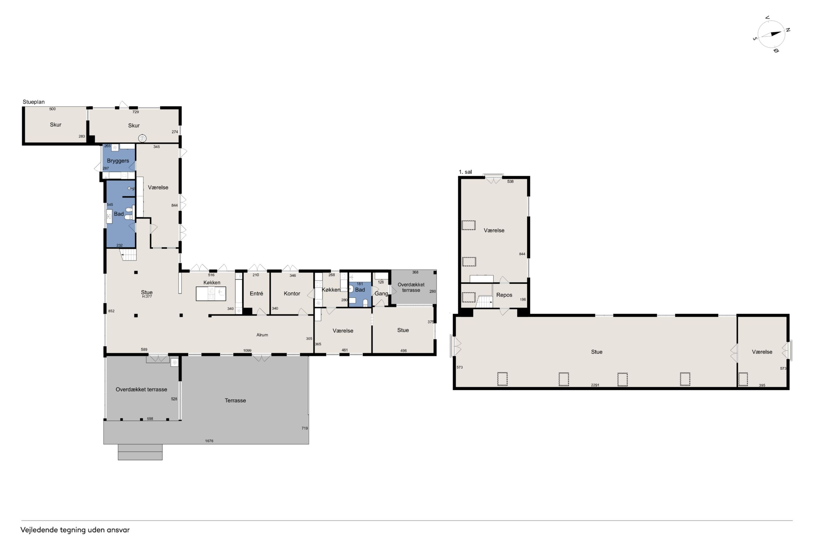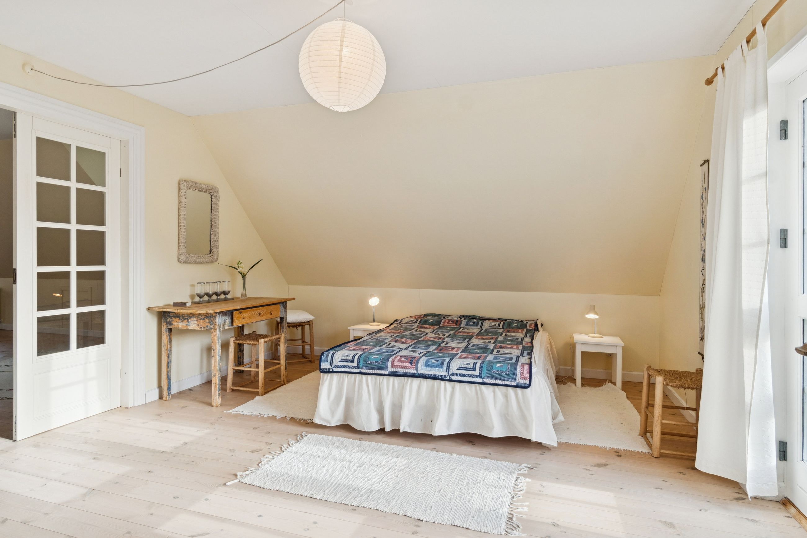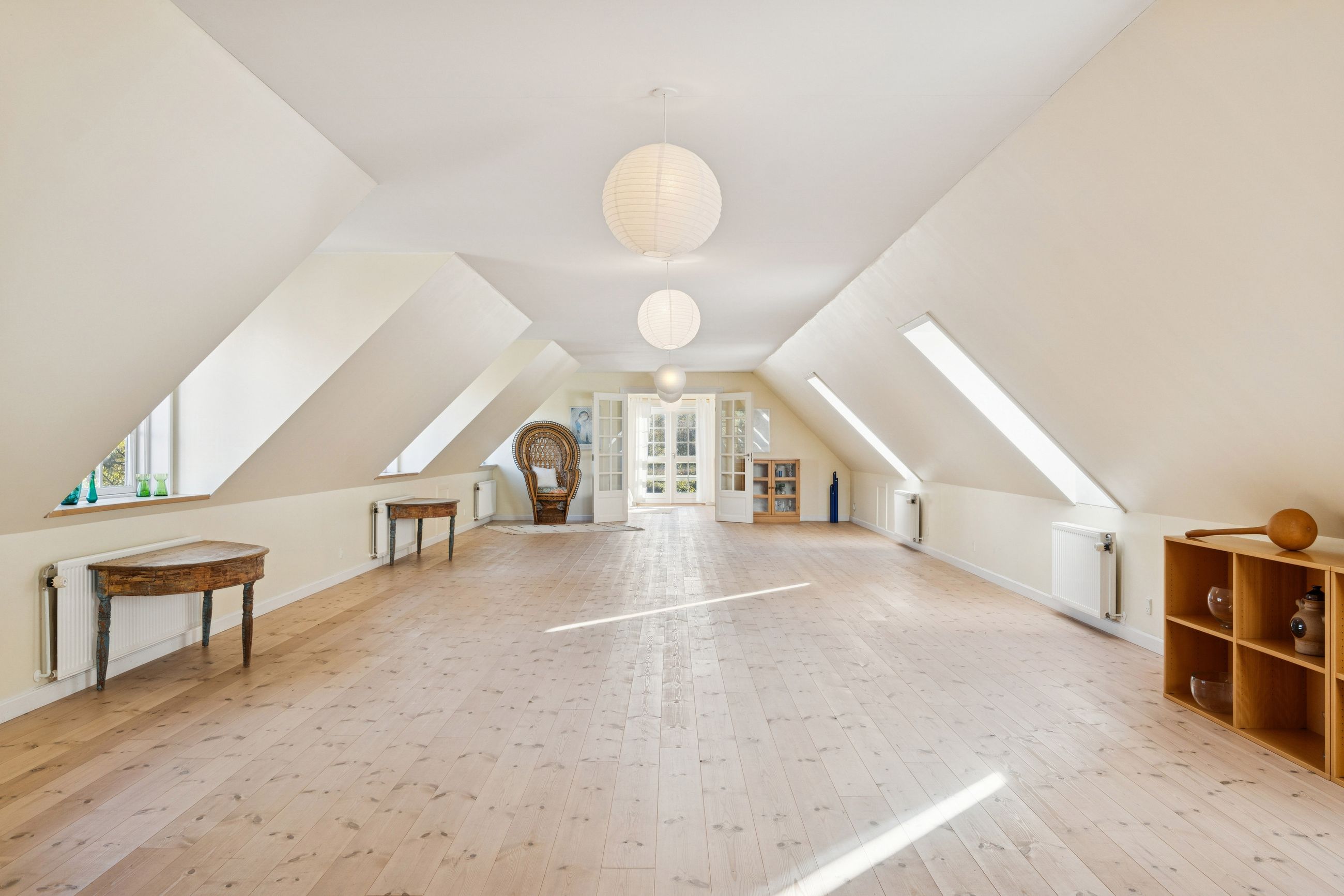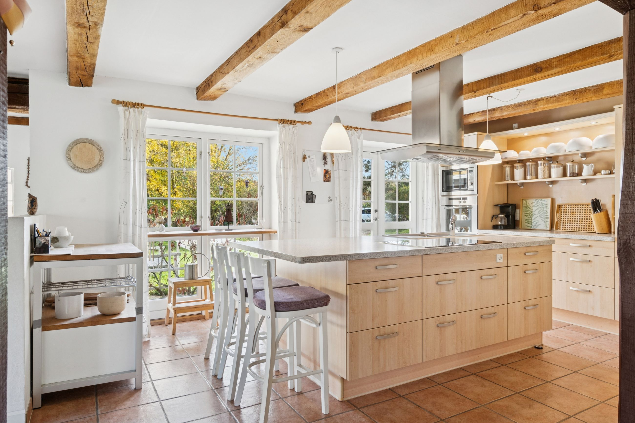 Ombygningen har medført gulvvarme i hele stueplanet, og I får straks øje på de charmerende finesser såsom loftsbjælker og hanebånd. Hjemmets hjerte er et vældigt stort opholdsmiljø med stue, alrum og køkken, der inviterer til festlige lejligheder såvel som nærvær med familie. Der er tilmed et ekstra køkken, som kan blive sit eget afsnit med et værelse, en stue og et badeværelse. Samme etage har yderligere et værelse, et badeværelse og et bryggers. Førstesalen byder på fine plankegulve samt en stor stue og to værelser, og her kan I tænke på flere udnyttelsesmuligheder.