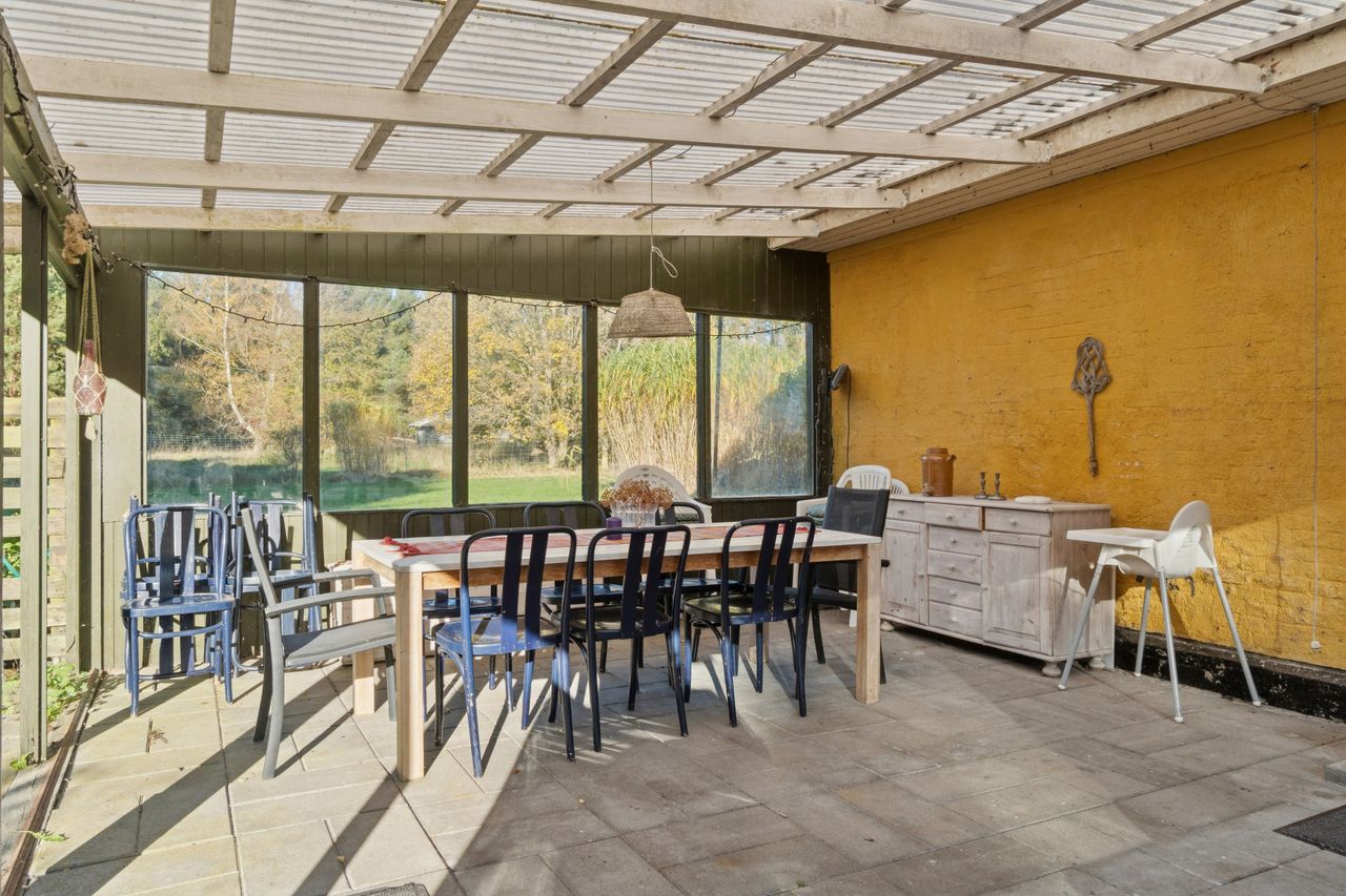De omtrent syv tønder land gør også ejendommen oplagt til dyrehold, hvis det er noget for jer, eller I kan udnytte jorden omkring ejendommen til andre hobbyformål. Uanset får I masser af ro og fred her, hvor I kommer i ét med naturen. Der er sågar kvadratmeter nok til, at I kan omdanne stedet til en tofamiliersejendom, medmindre I bare selv vil have en masse god plads. Der er også en større lade med værksted og opbevaringsrum.