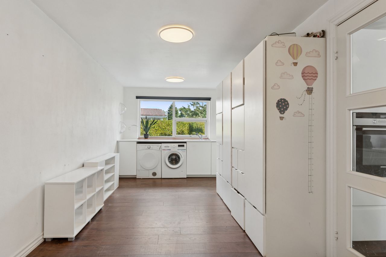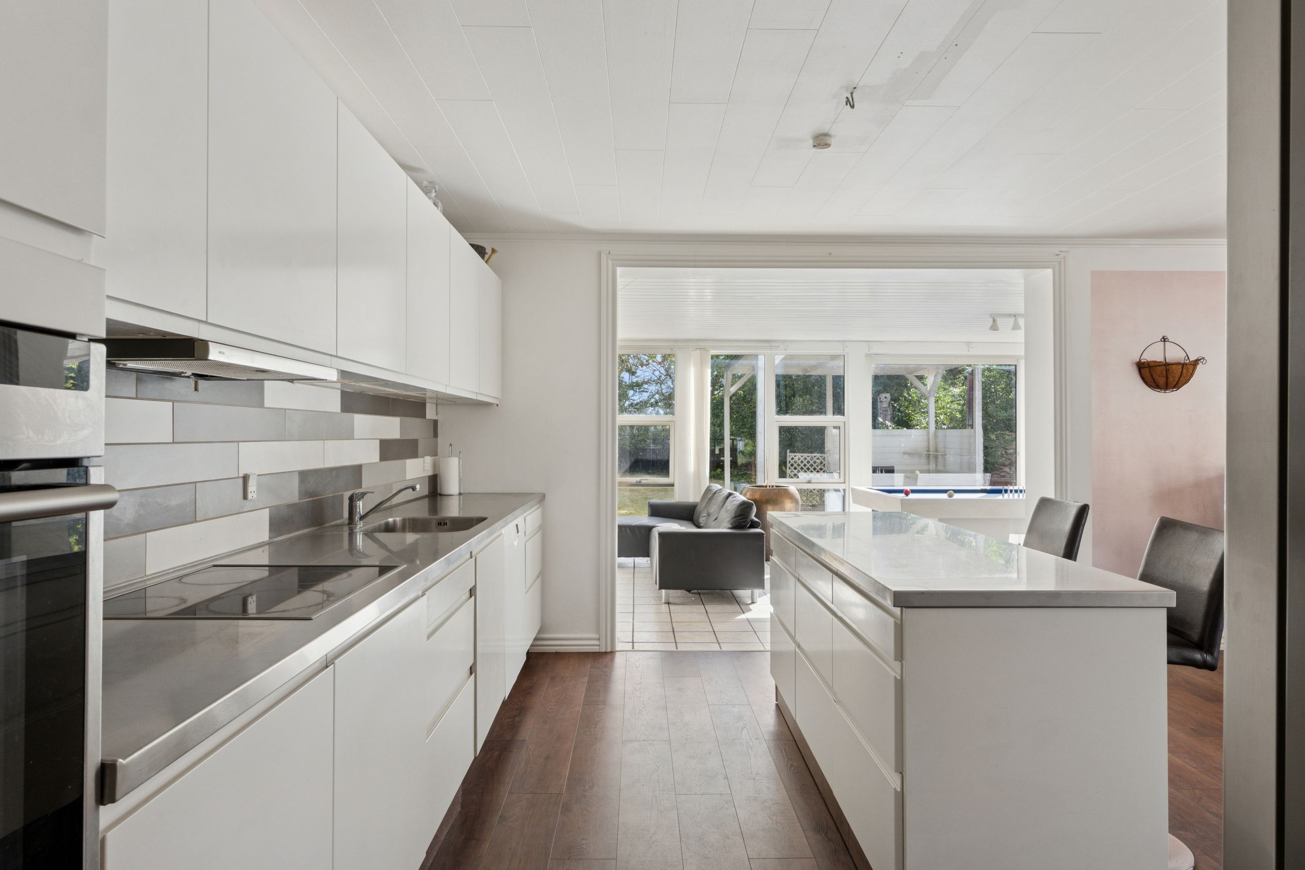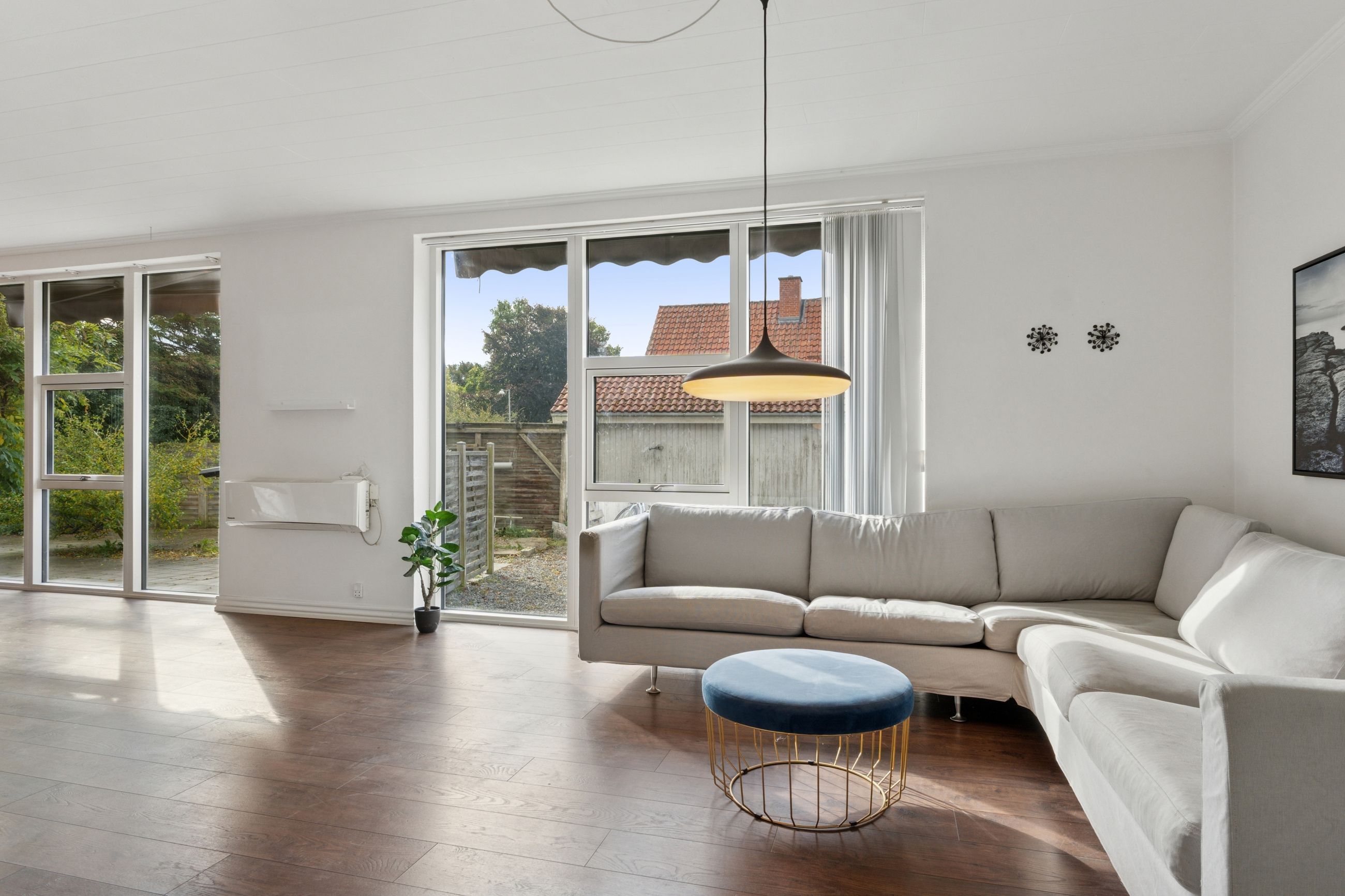 Denne indbydende villa fremstår med pudset facade, rødt tegltag og en attraktiv beliggenhed på en lukket vej, hvor både skole, pasningsordning og indkøb ligger inden for kort afstand. Her får I en bolig med en gennemtænkt planløsning, hvor pladsen er udnyttet optimalt, og hvor både familieliv og rolige stunder kan gå hånd i hånd.