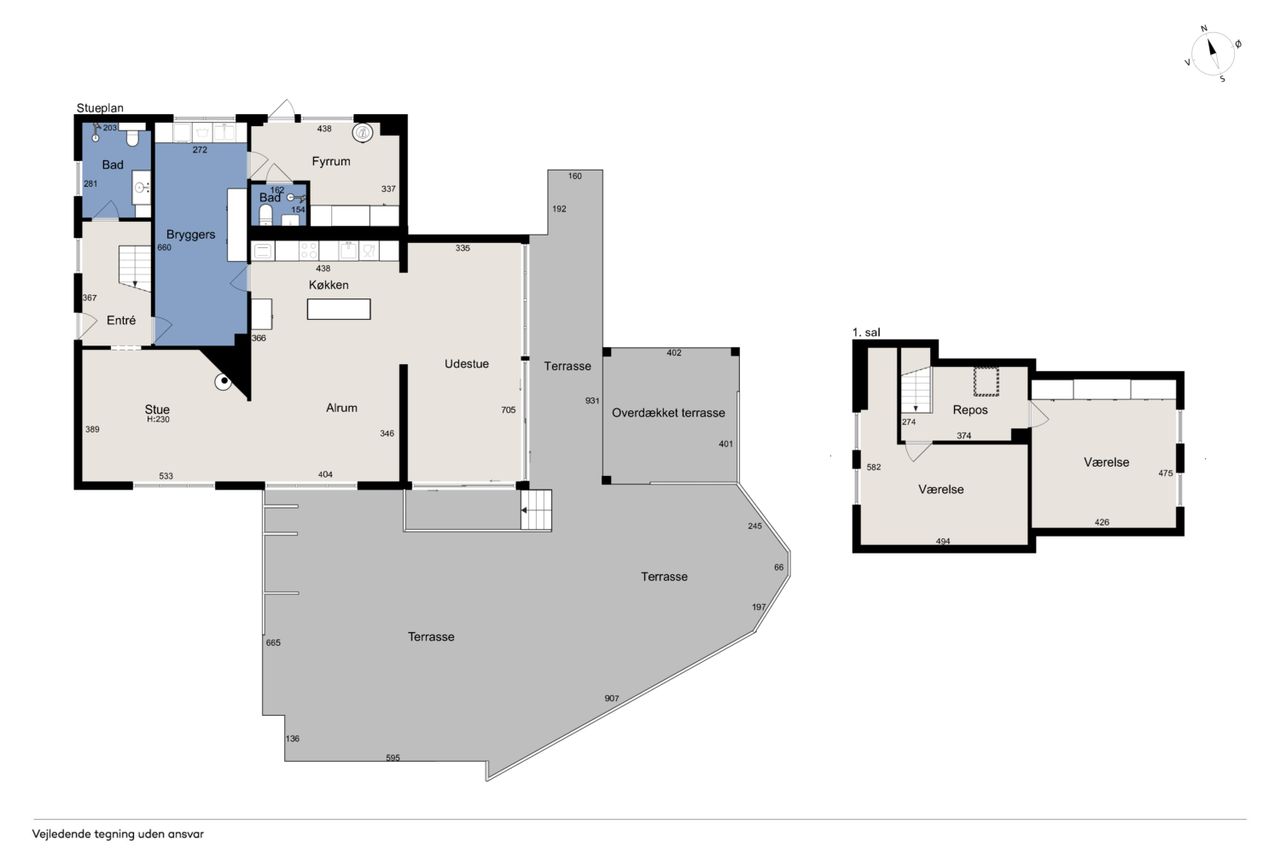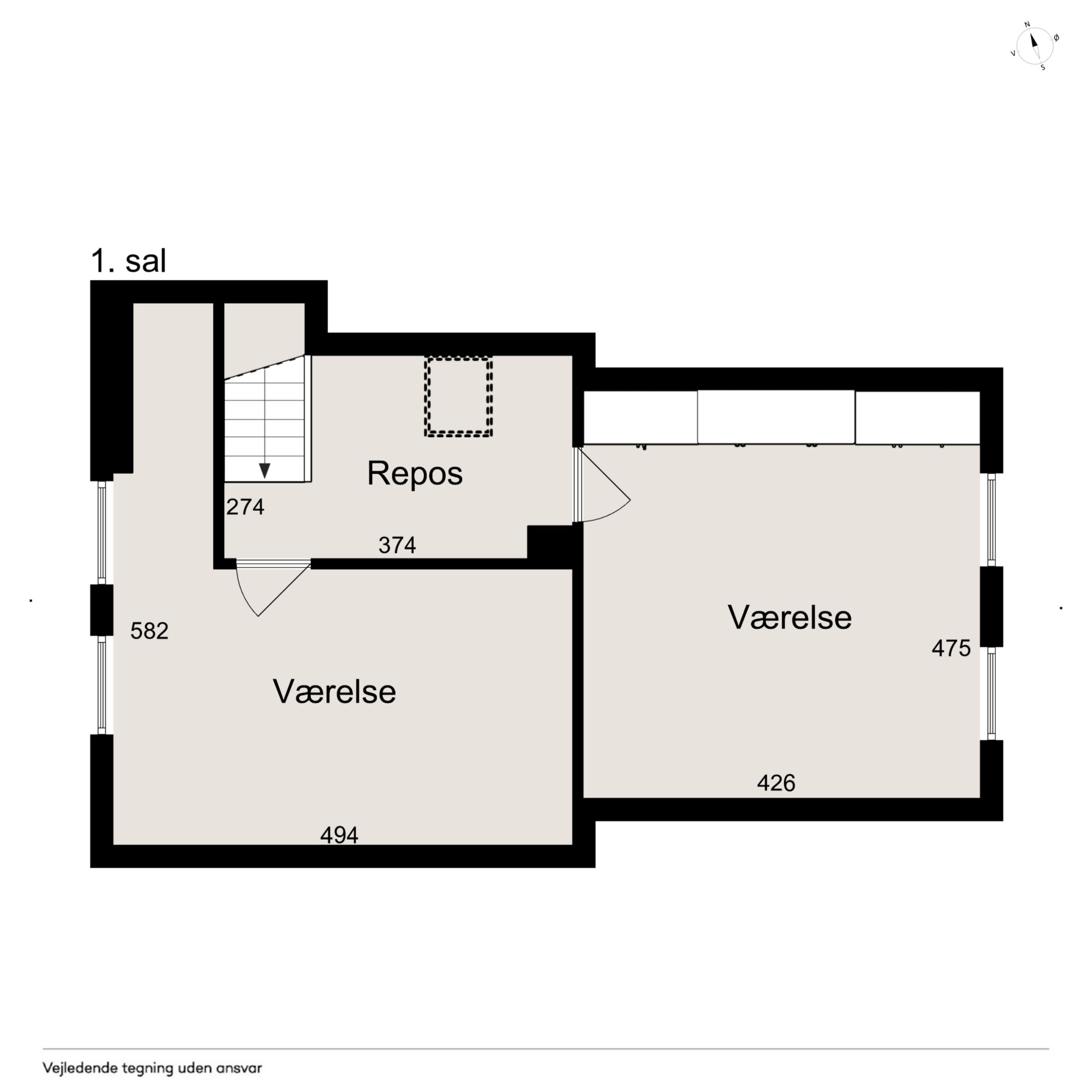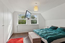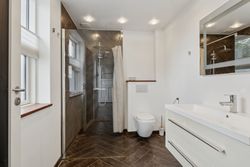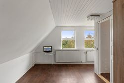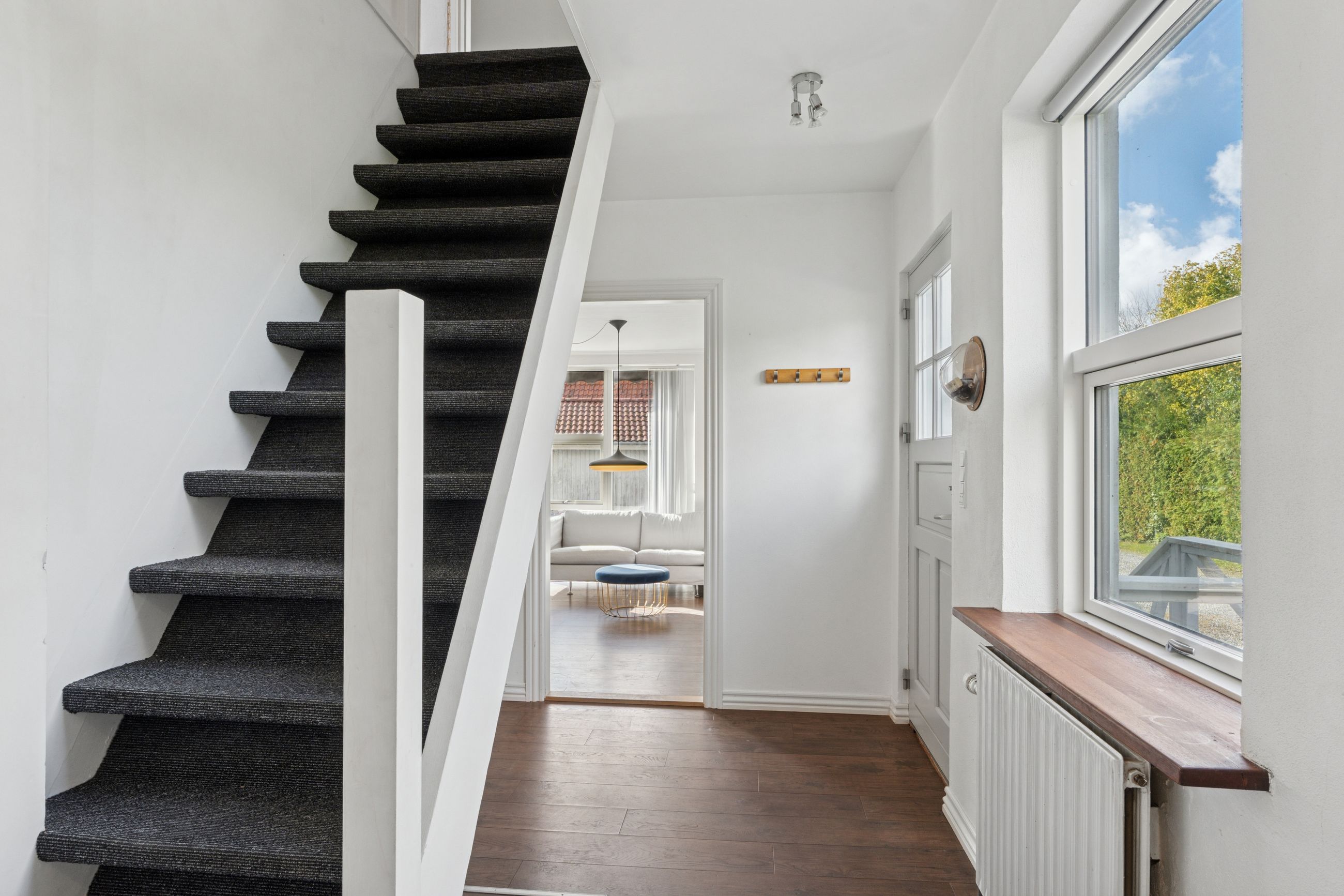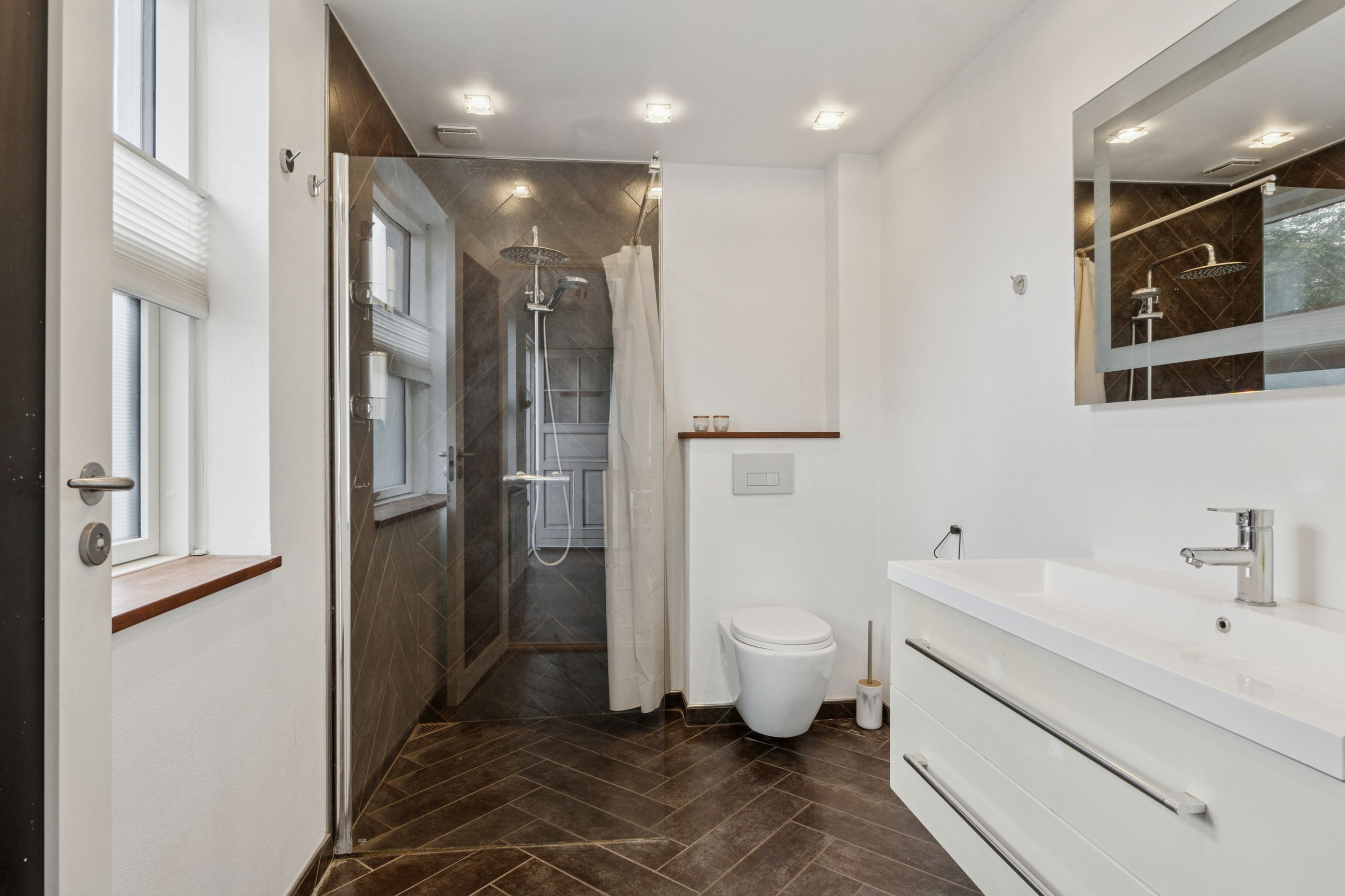 Endnu et badeværelse afslutter stueplanet, hvorefter I skal bevæge jer op på førstesalen. Her ligger der to gode værelser samt et repos, der kan indrettes fleksibelt – eksempelvis som kontor eller legehjørne. Dermed er der plads til både børneafdeling og gæster.