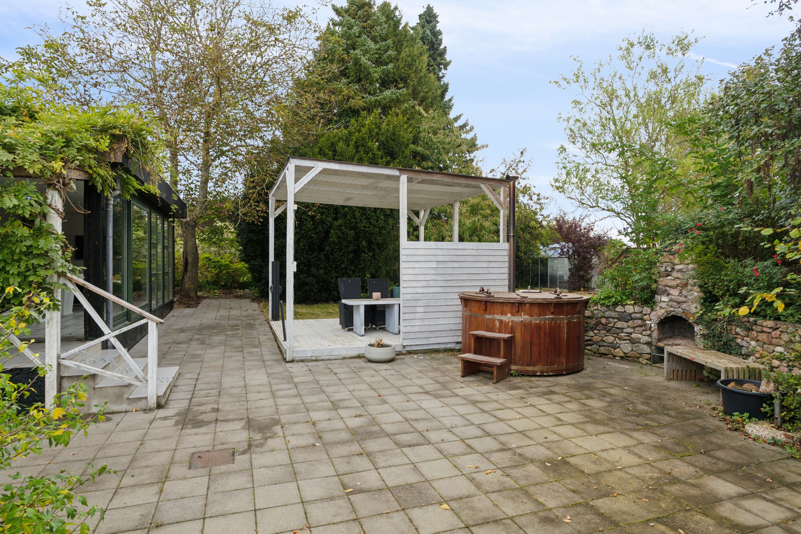 Den store have, der indbyder til leg, boldspil, haveprojekter eller blot afslapning i grønne omgivelser, gør også en flot figur, og særligt det anseelige terrassemiljø trækker overskrifter.