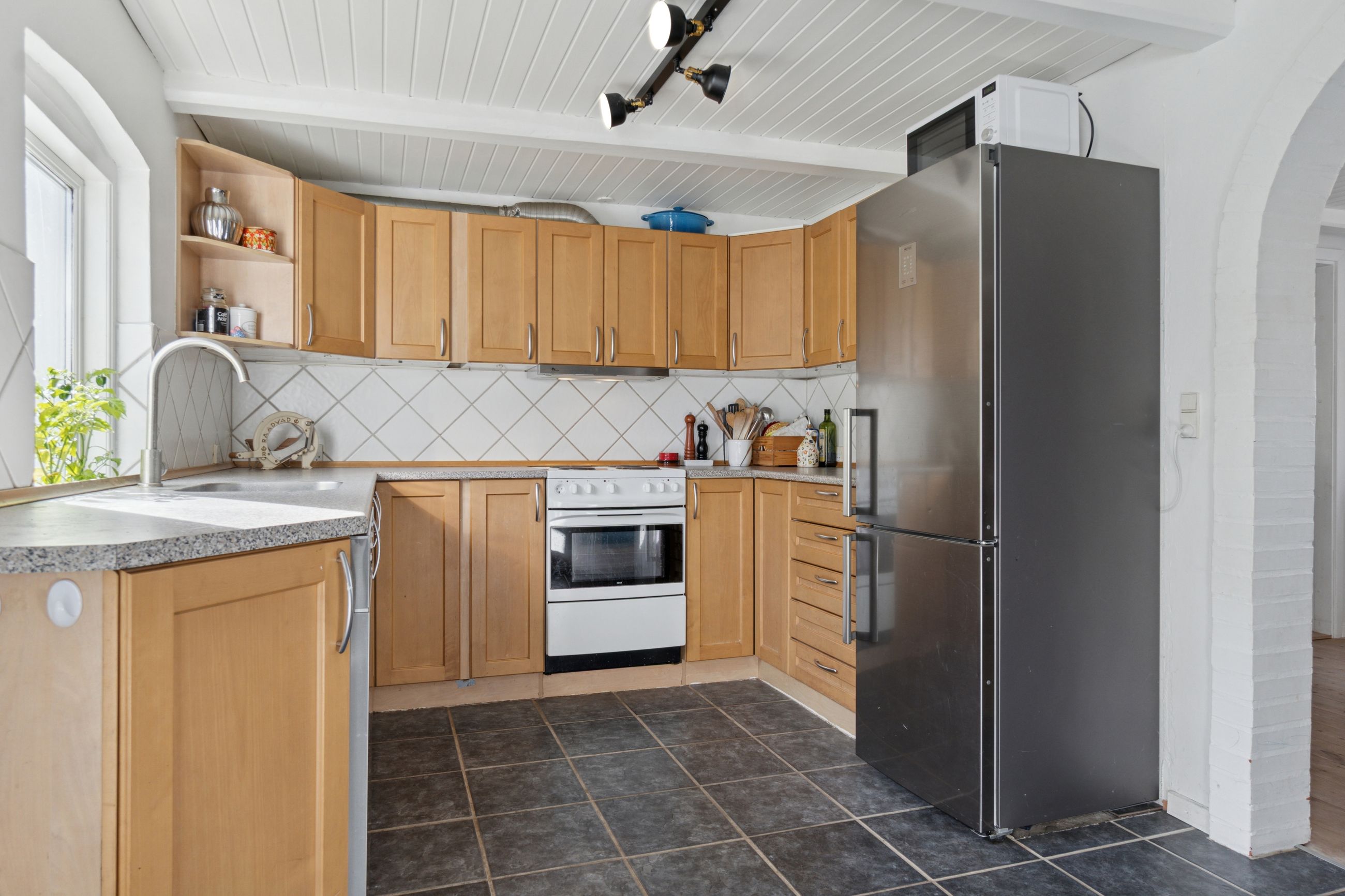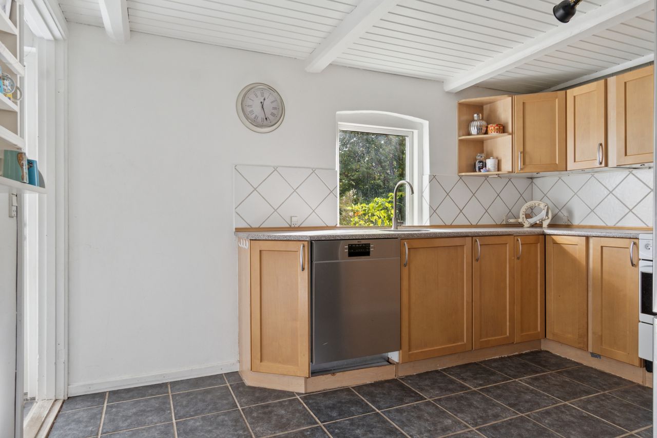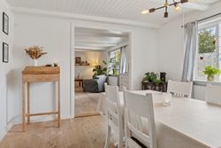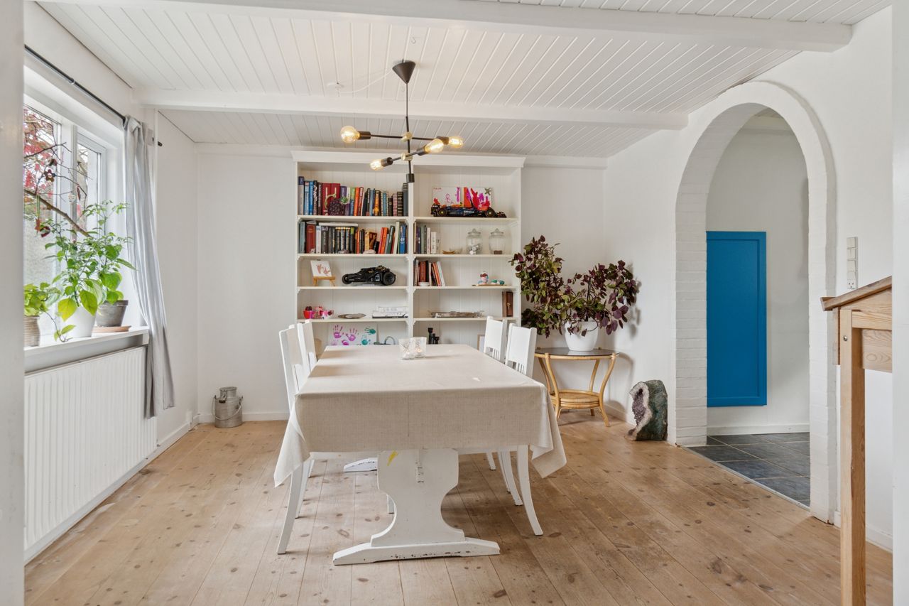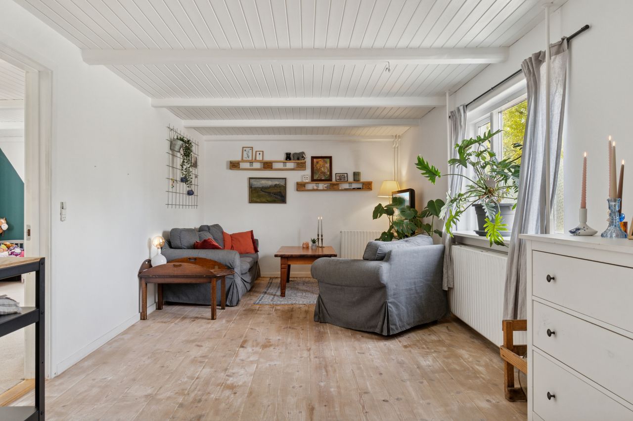 Huset er fra 1927, men det er gennemgående opdateret, så alt fungerer efter moderne standarder. Derfor kan I rykke lige ind og starte hverdagen, mens I løbende kan sætte jeres eget præg, hvor I vil. Samtidig er den hyggelige, gamle stemning bevaret med blandt andet fritliggende loftsbjælker, trægulve og loft til kip på førstesalen. Charmen breder sig over en attraktiv indretning med fire reelle værelser, et køkken i åben forbindelse med to stuer og selvfølgelig det kommende nyistandsatte badeværelse. Altså et oplagt begynderhus til den lille familie eller jer, der blot ønsker en overskuelig villa i dejlige rammer.