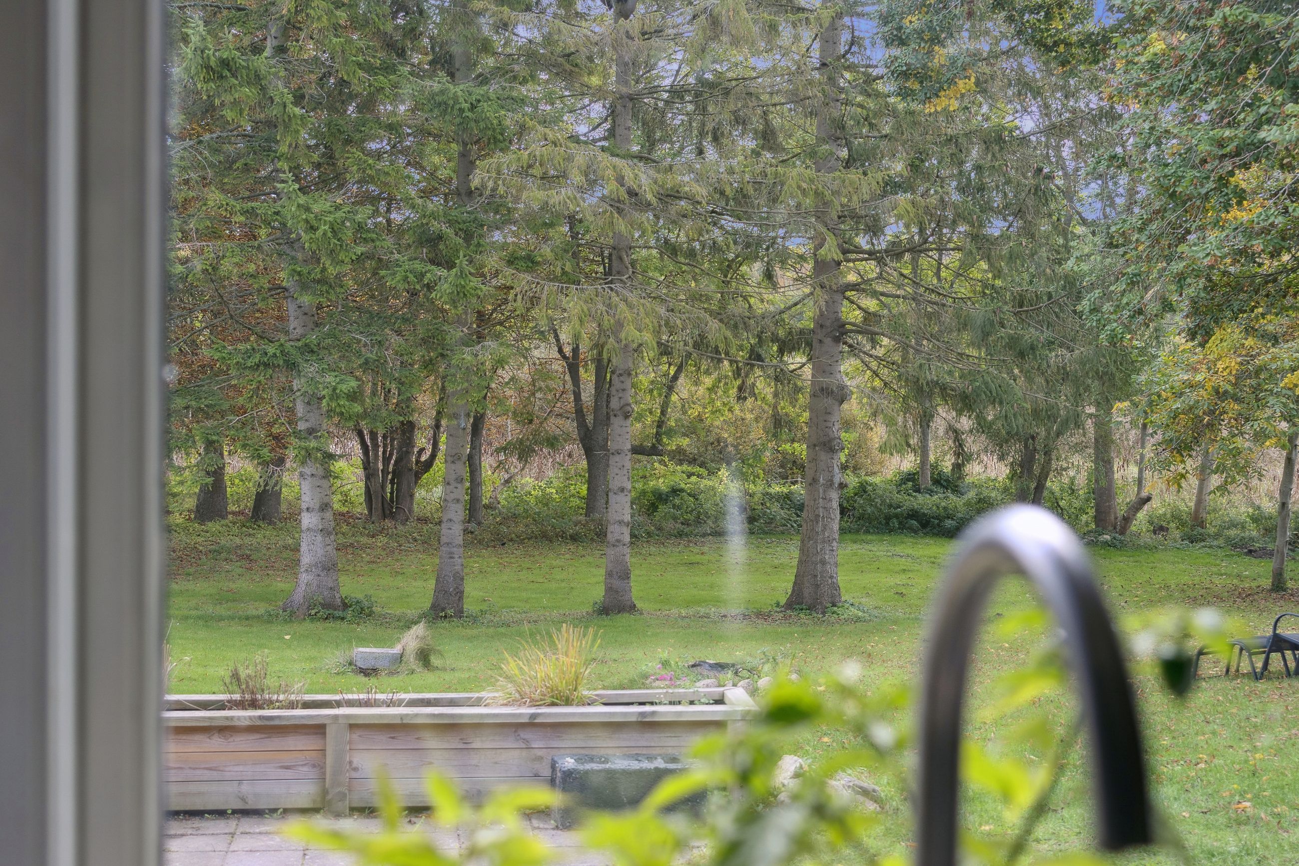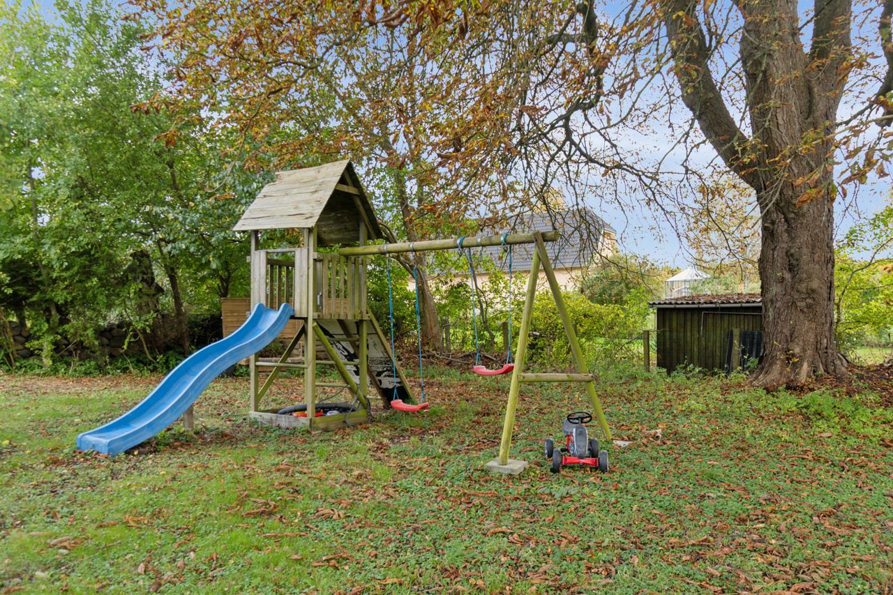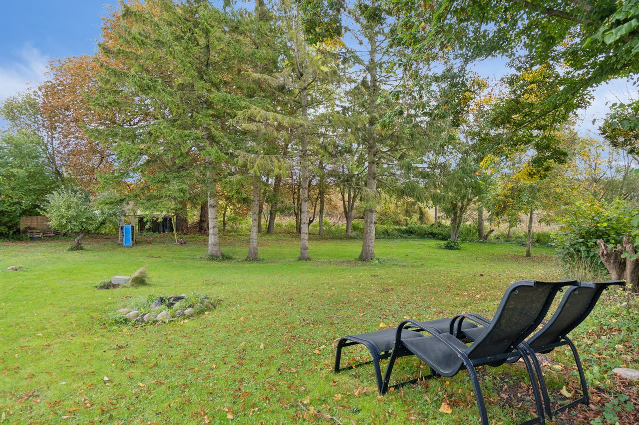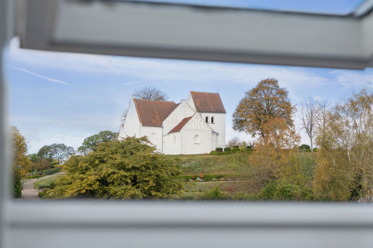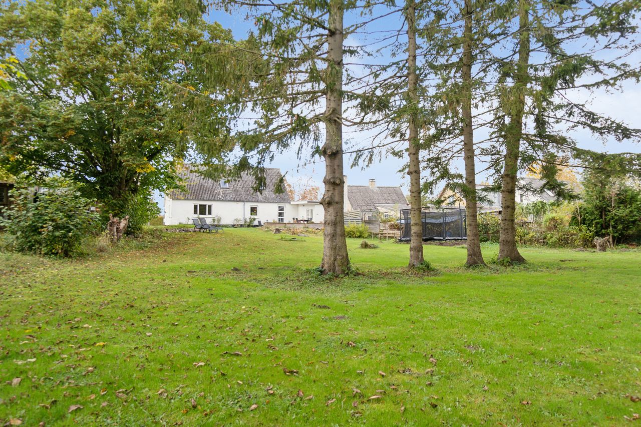 Kigger I ud af vinduerne, strækker udsigten sig over en stor grund, grønne arealer, græssende hjorte og den smukke Pedersborg Kirke. Den idyllisk indrammede have giver desuden masser af plads til udeliv med en ugeneret og solrig terrasse samt en jævn plæne fyldt med flotte træer.