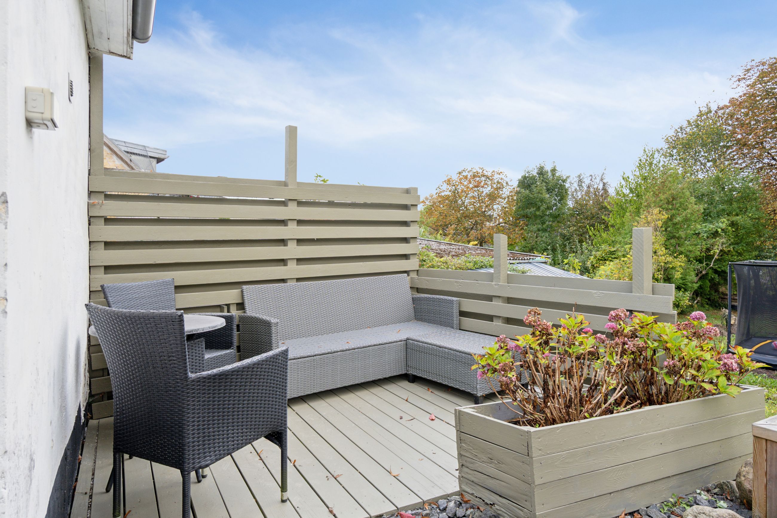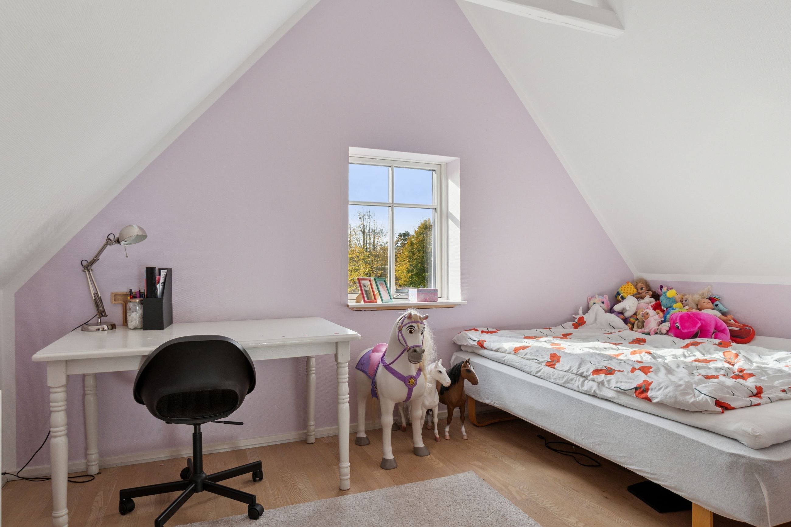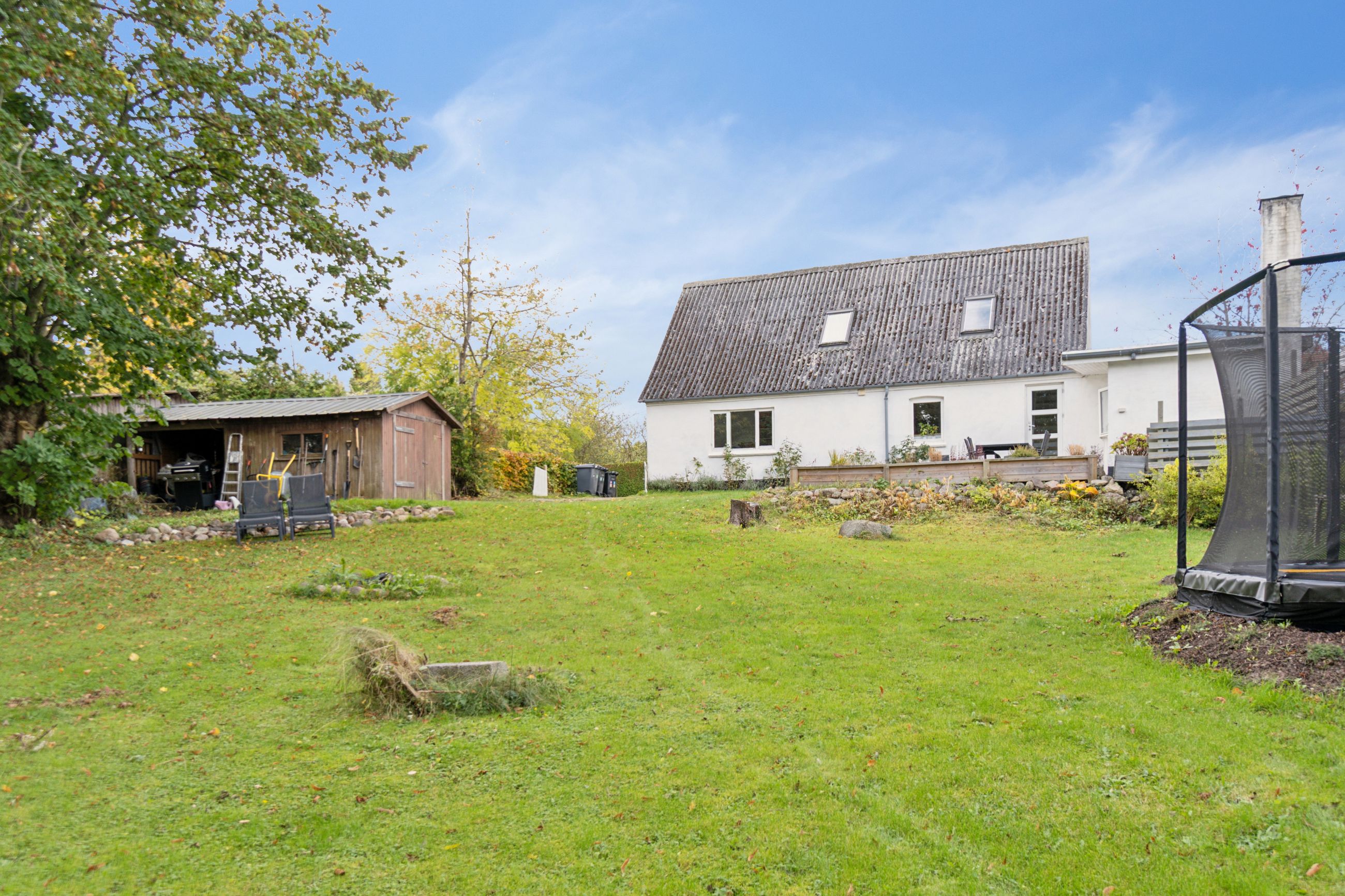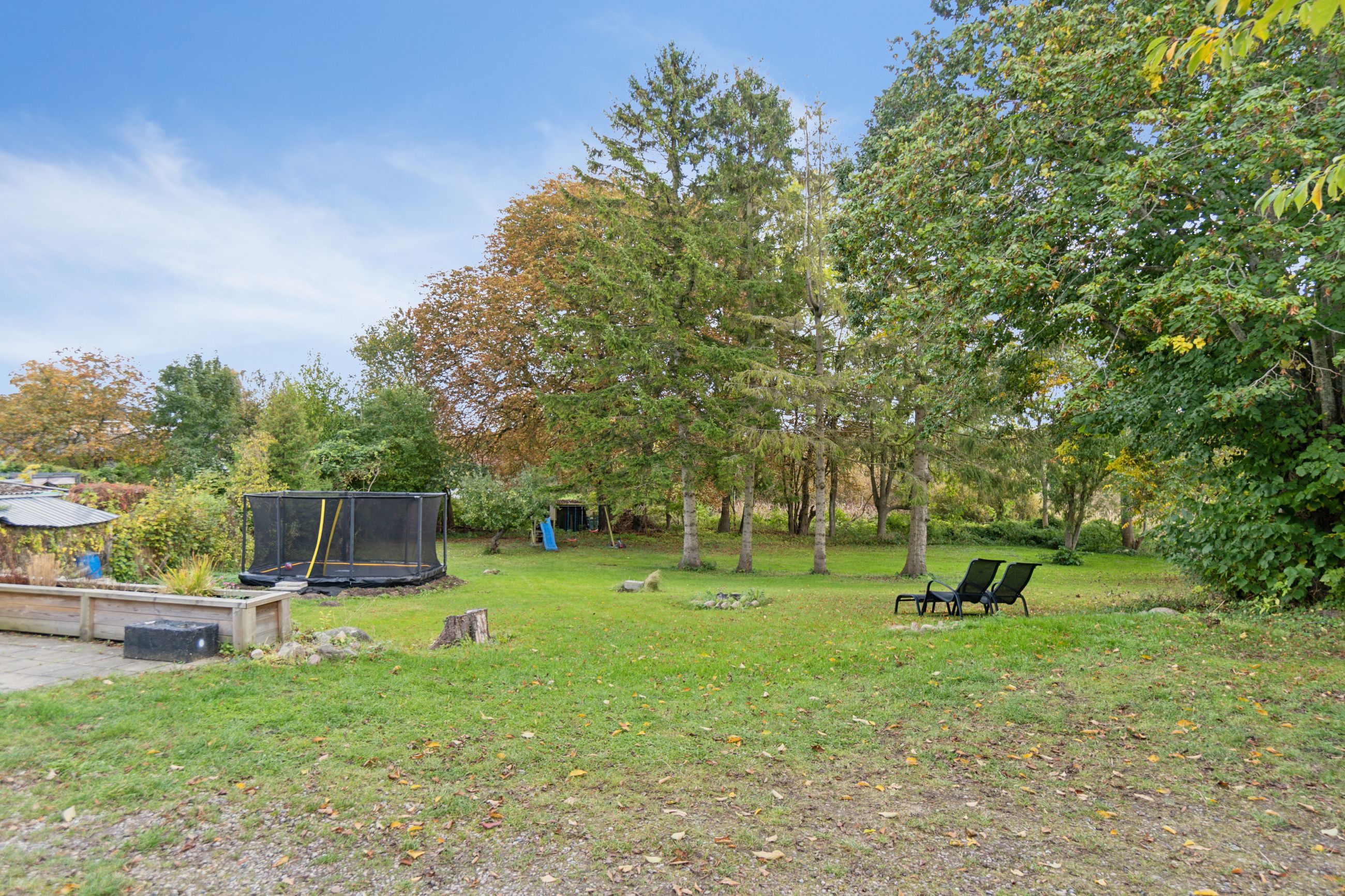 Kigger I ud af vinduerne, strækker udsigten sig over en stor grund, grønne arealer, græssende hjorte og den smukke Pedersborg Kirke. Den idyllisk indrammede have giver desuden masser af plads til udeliv med en ugeneret og solrig terrasse samt en jævn plæne fyldt med flotte træer.
