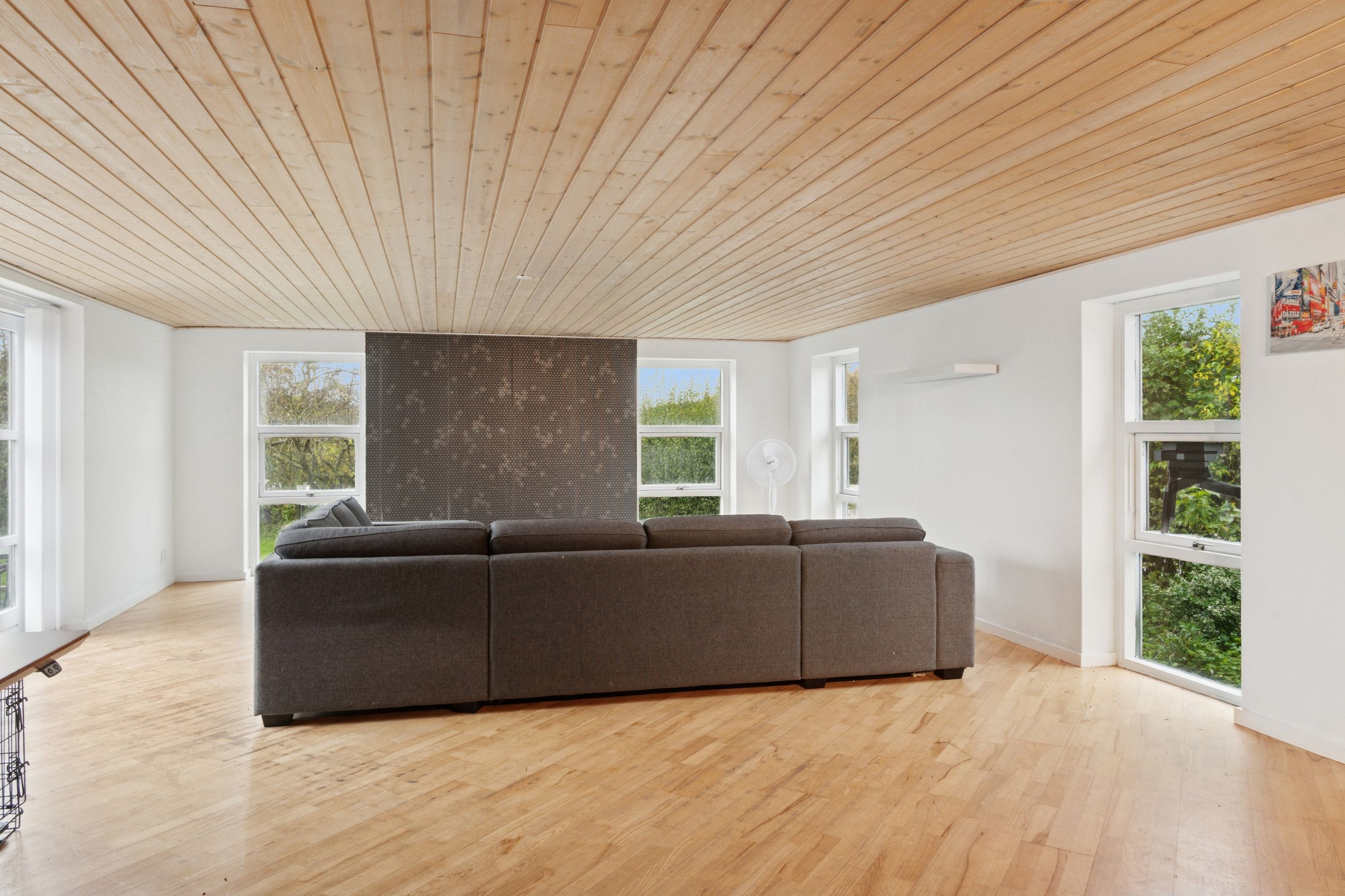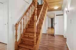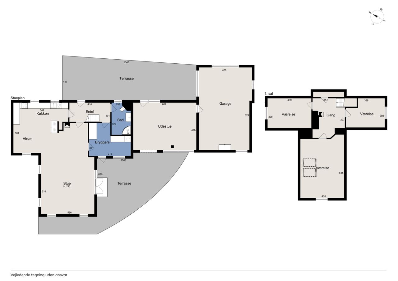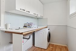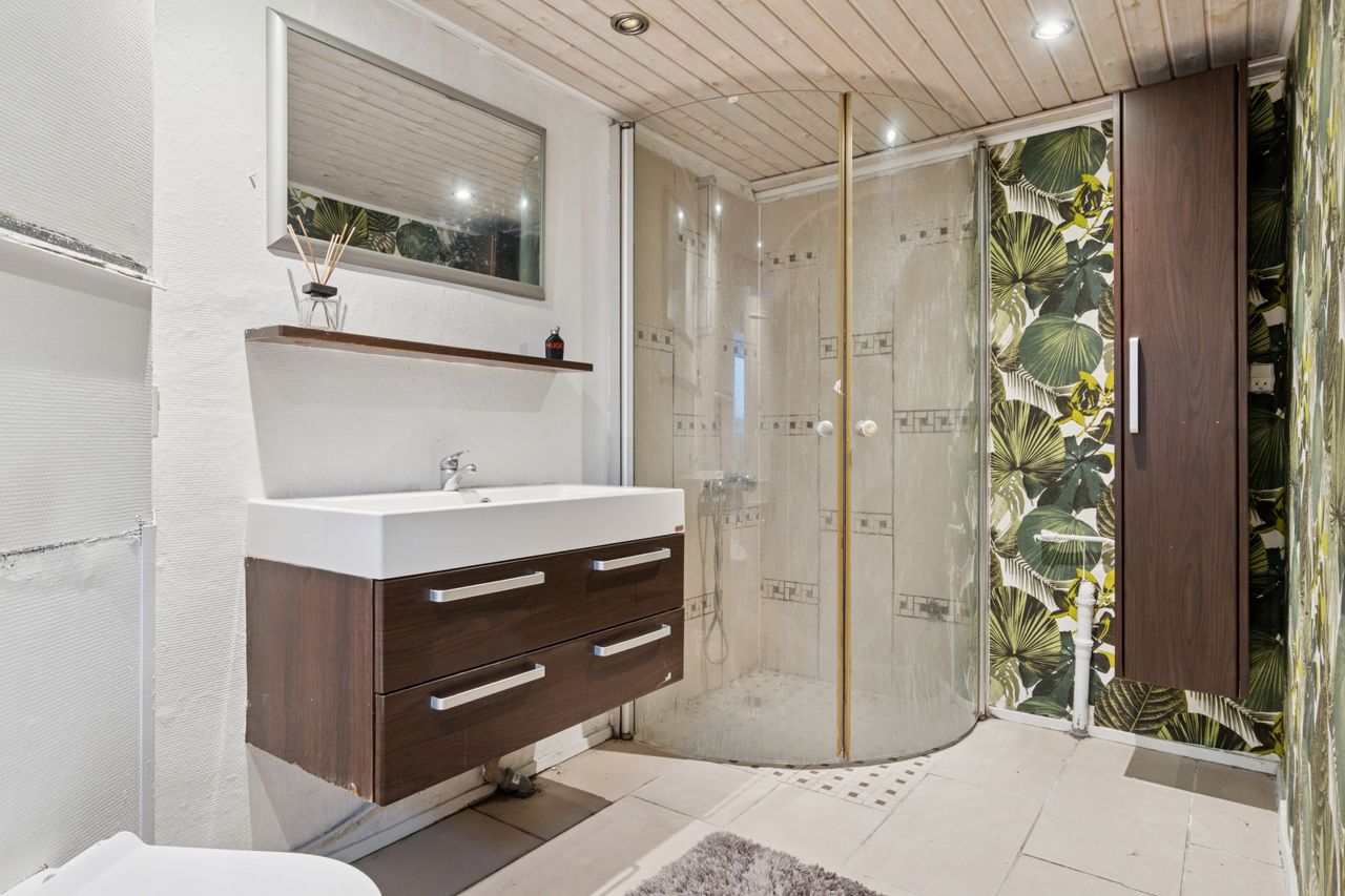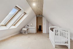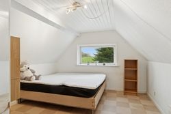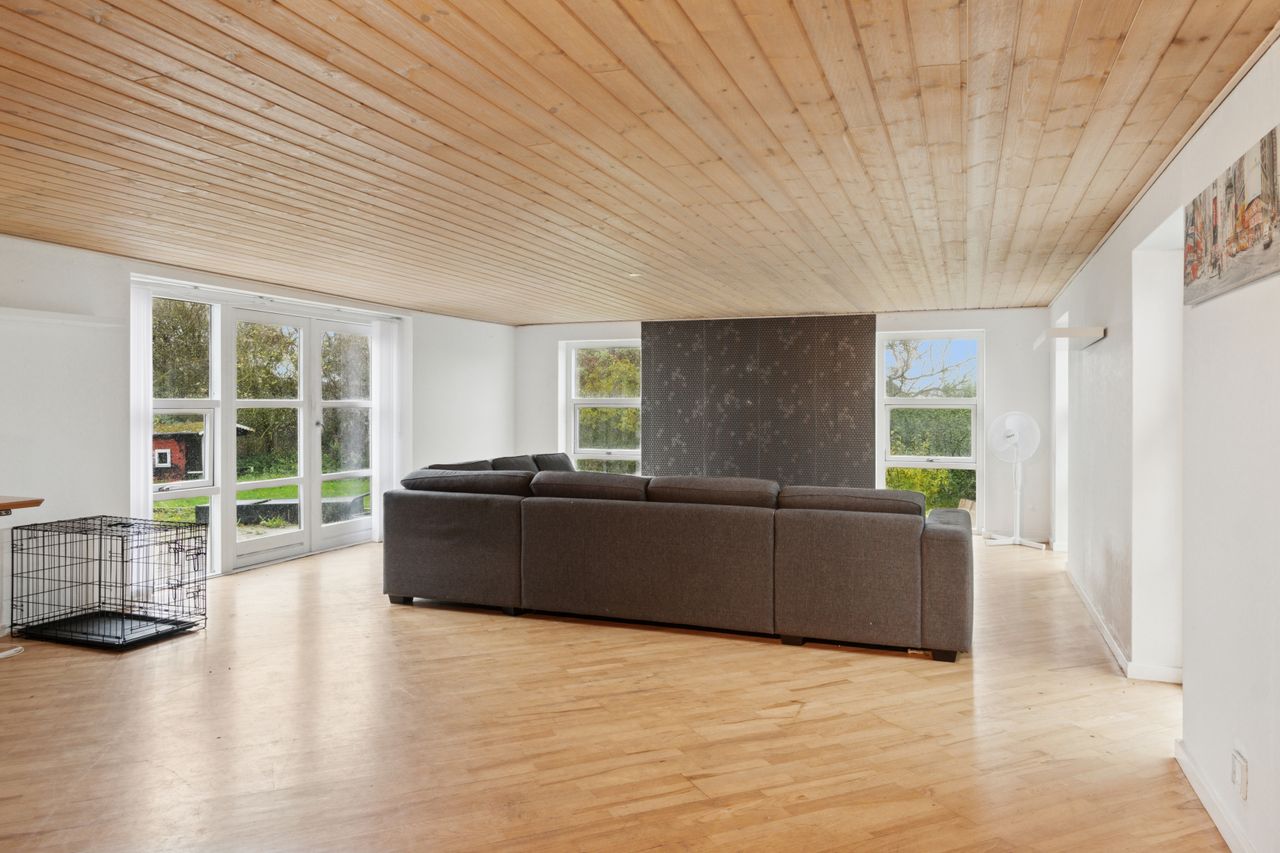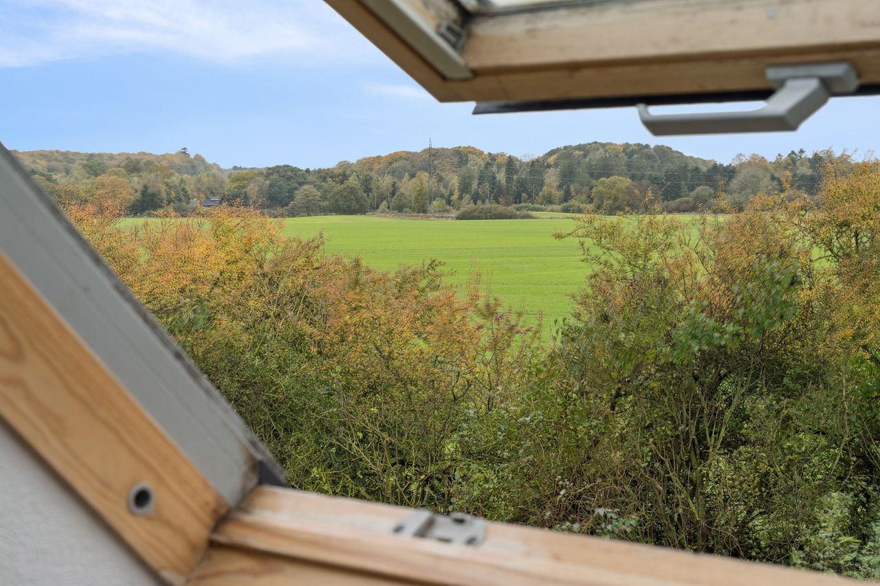 På den anden side af entréen findes et rummeligt badeværelse, og i forbindelse med garagen er der en stor udestue med mange anvendelsesformål. Ovenpå venter tre gode værelser, hvorfra udsigten kommer til sin fulde ret.