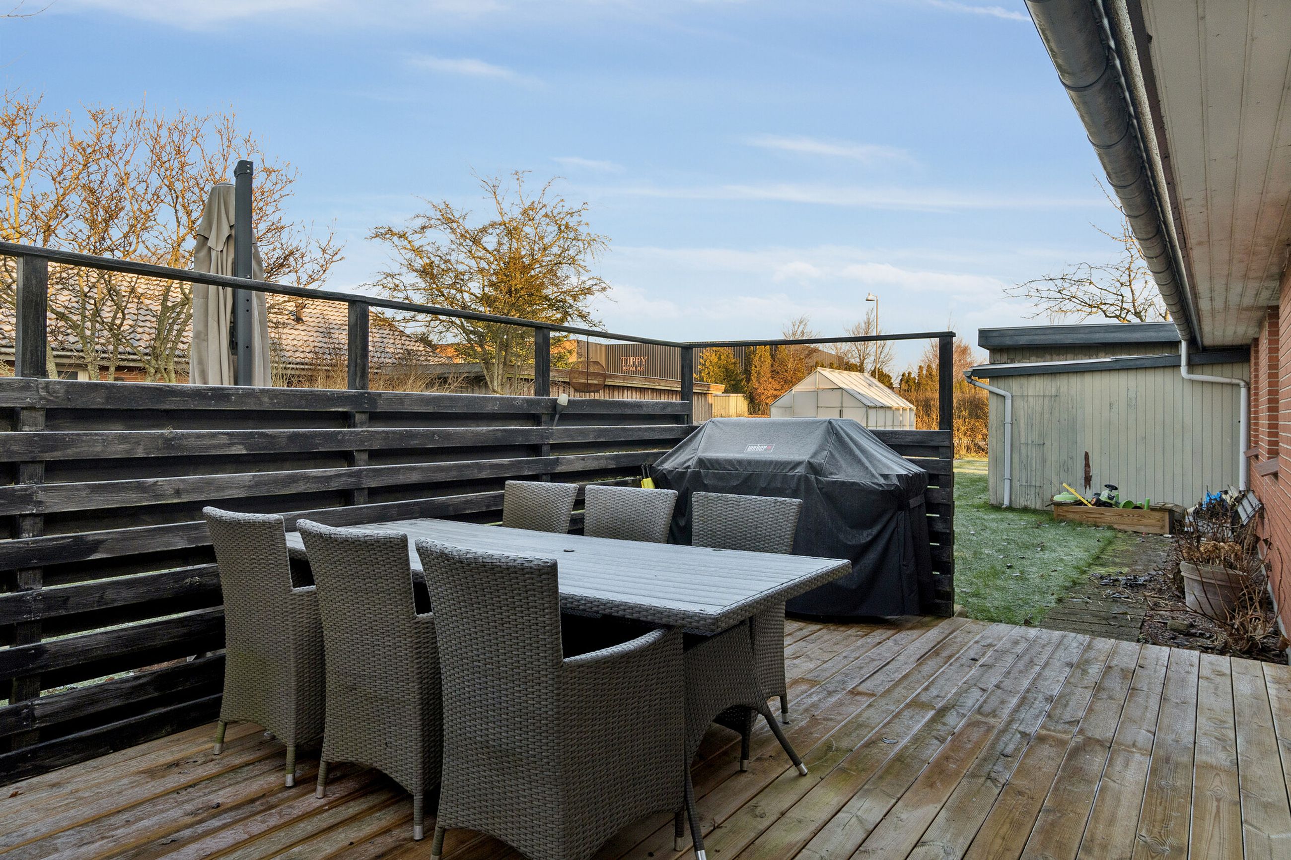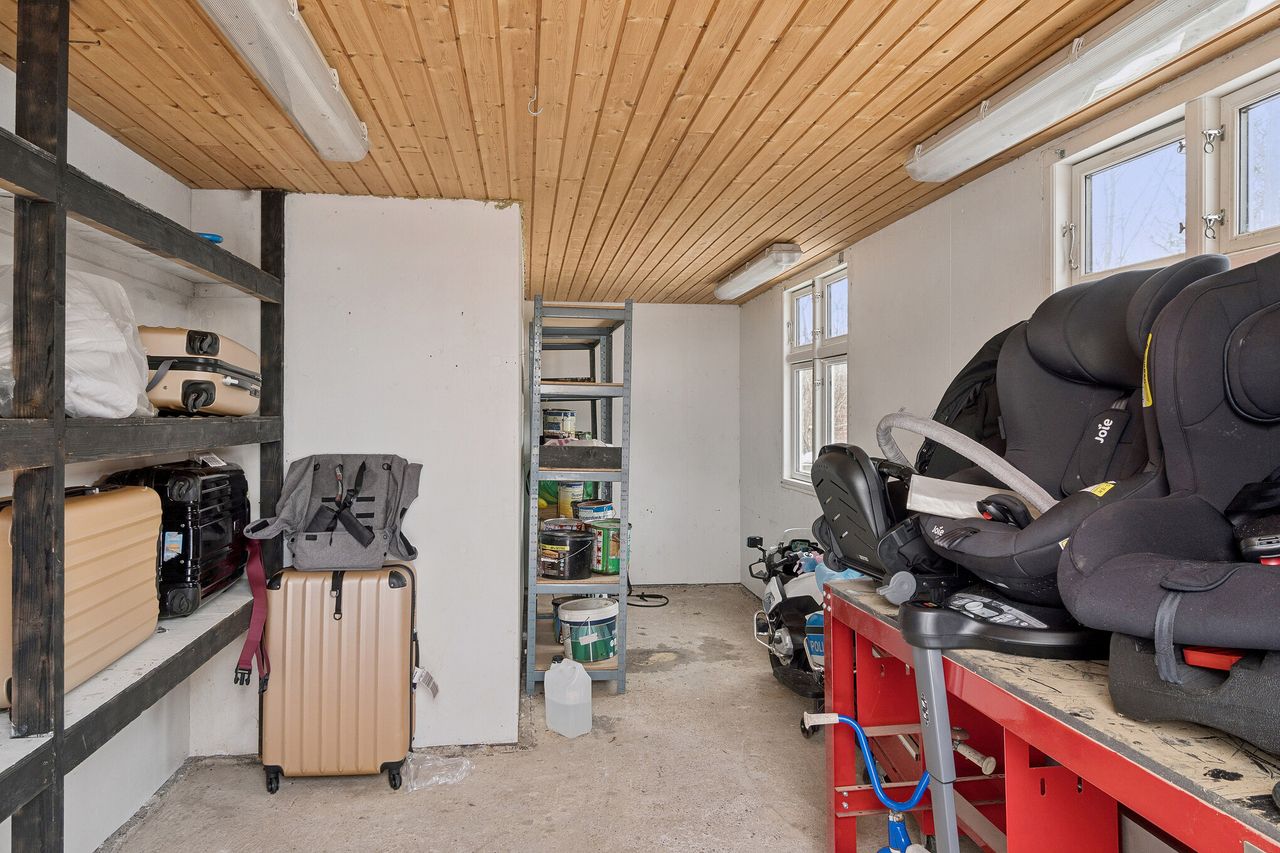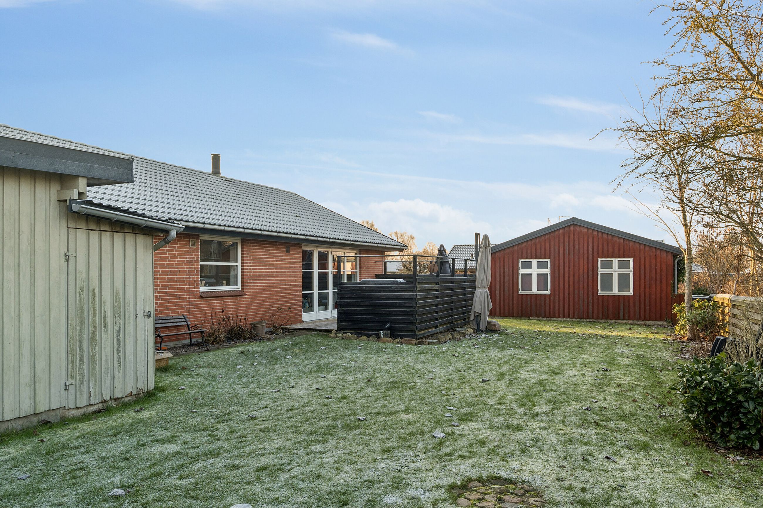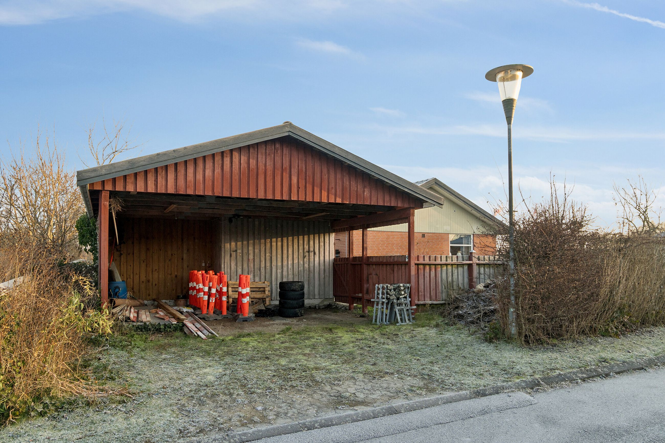 Udendørs venter en stor grund med gode muligheder for leg, haveprojekter og afslapning. To terrasser gør det muligt at nyde solen dagen igennem, og der er desuden garage med plads til både bil og opbevaring, samt en dobbelt carport med et isoleret værksted/udhus.