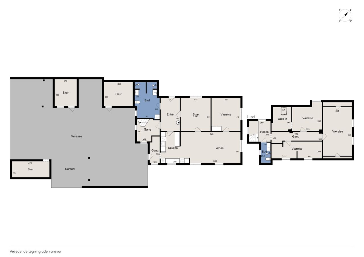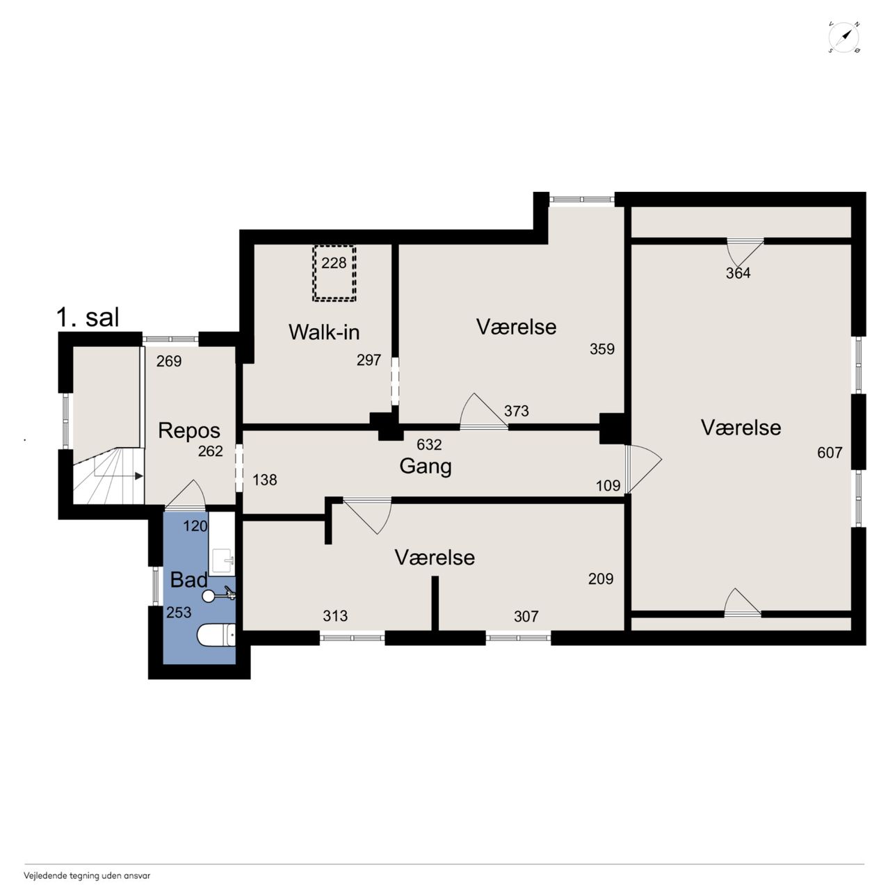 Ovenpå venter foruden husets andet badeværelse tre meget store værelser samt et walk-in-closet, og I har rig mulighed for at lave om og rykke rundt, så I får en separat lejlighed til teenageren med alt, hvad det indebærer.