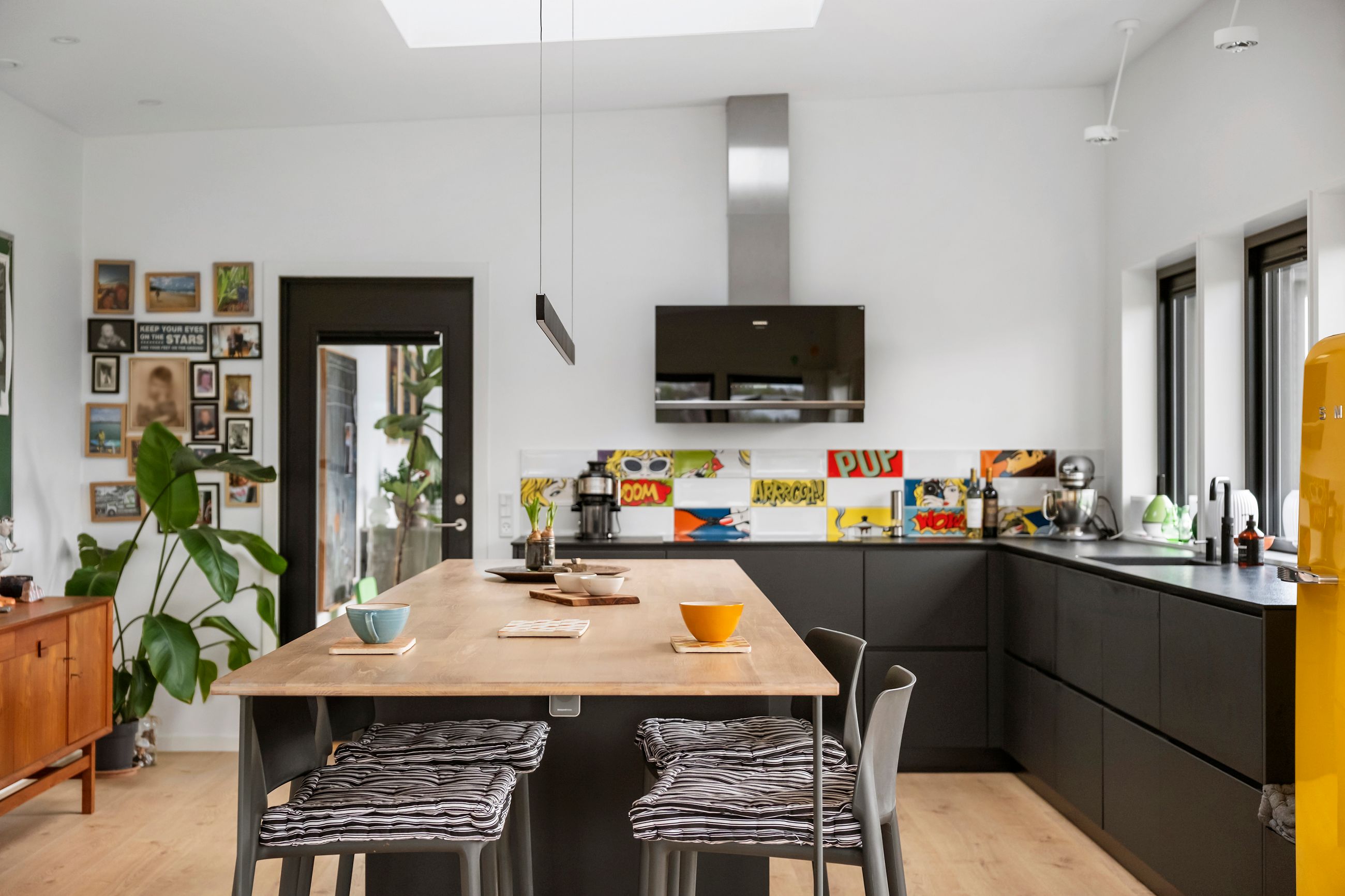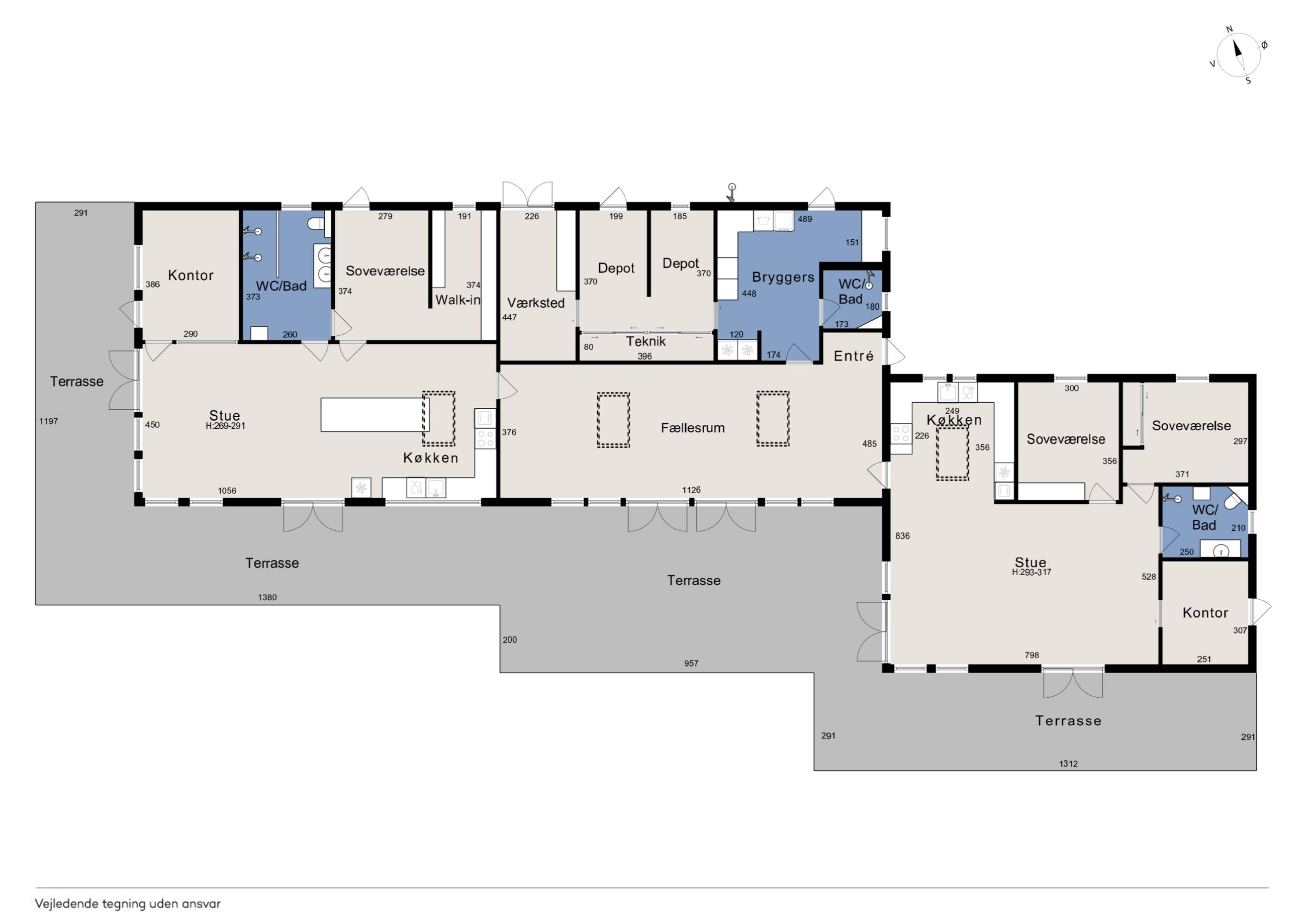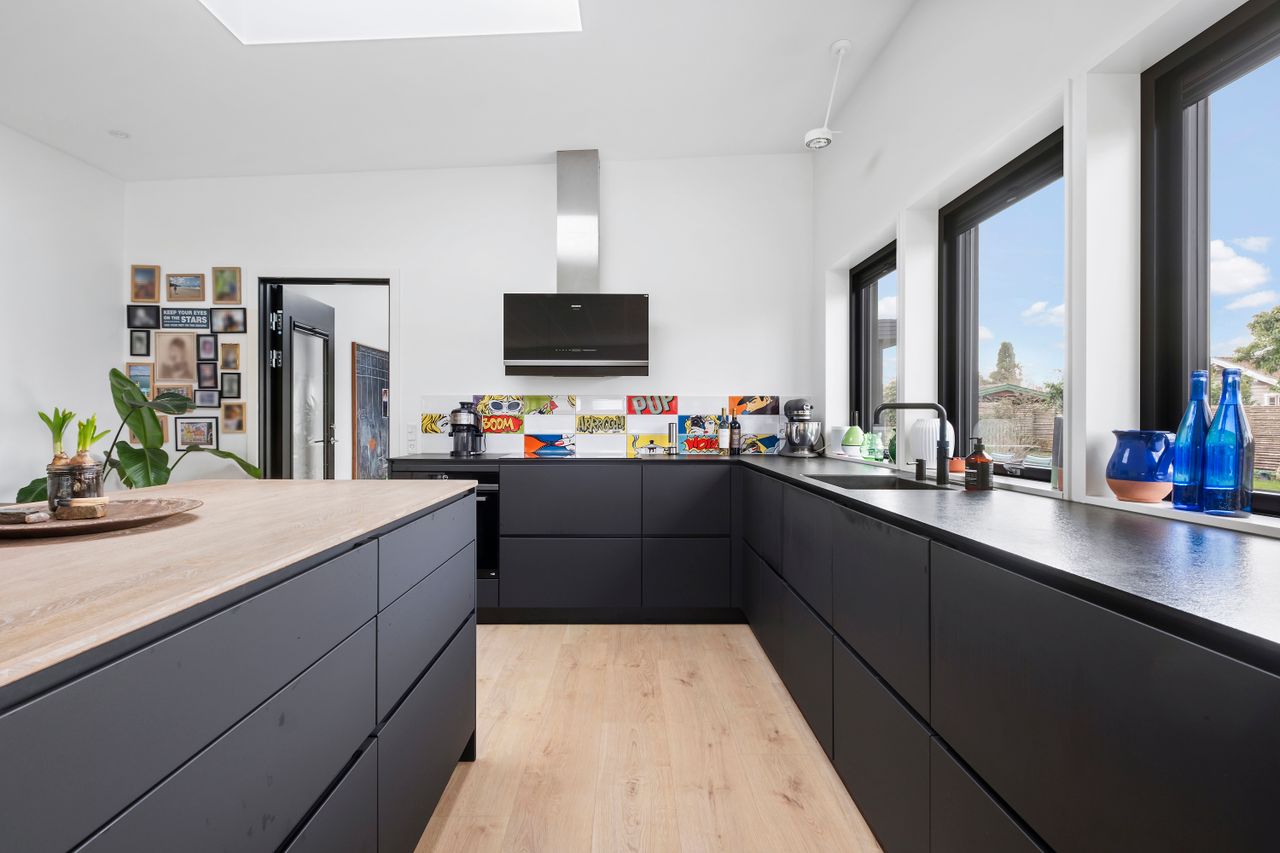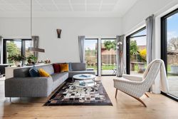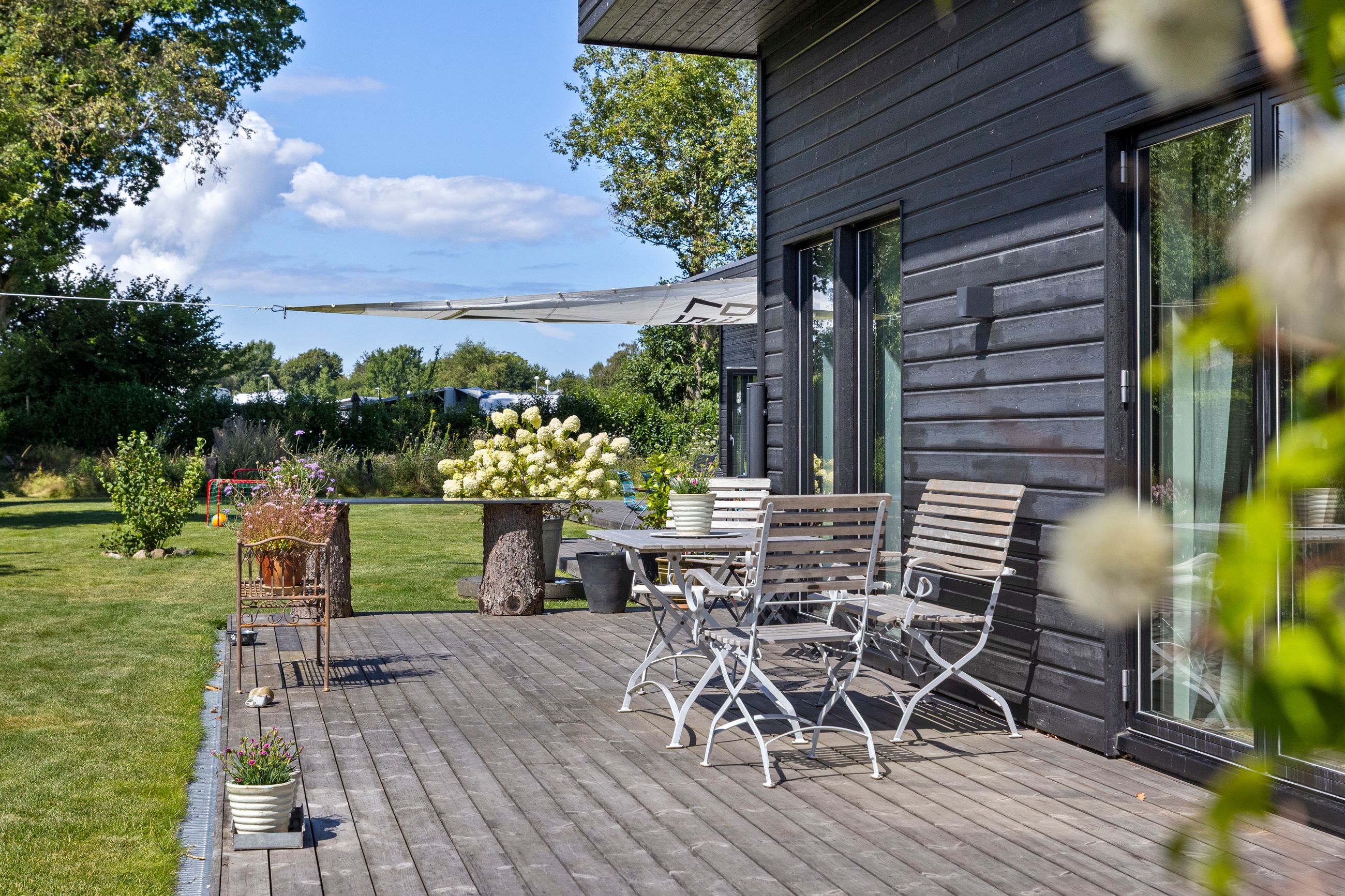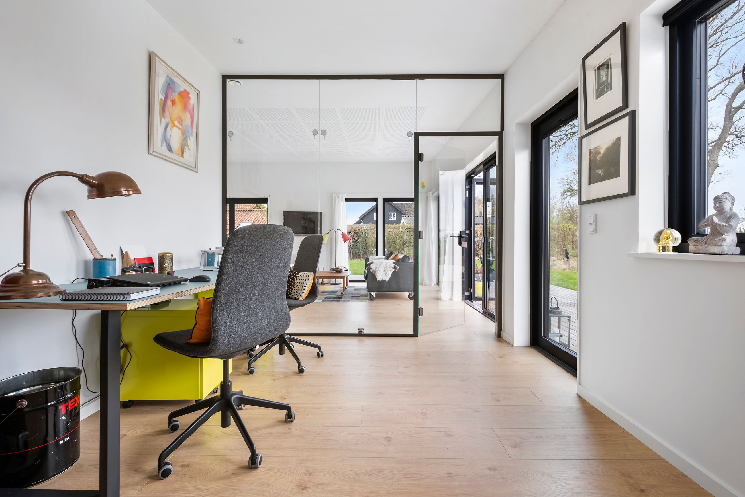 Denne boligdel er designet til at være lys og funktionel – ideel til enlige, par eller familier. Der er 100 m2 til fri indretning og 104 m2 fællesareal. Køkken og stue ligger på tværs af huset med stort tagvindue, der giver gennemlys og god ventilation. Highlights: Morgensol i køkkenet, sol på sydsiden og solnedgang mod vest. Spiseplads til 8 i forlængelse af stuen. To store soveværelser + kontor/værelse med mulighed for udvidelse. Badeværelse med varme og funktionalitet. Højt til loftet og store syd-/vestvendte vinduer. Nem adgang til tre terrasser og egen indgang via kontoret Udsigt gennem haven mod vest.
