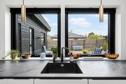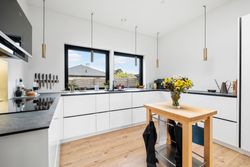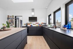 Denne boligdel er skabt til singler eller par, med fokus på eksklusivitet og overskuelighed. 100 m2 privat bolig og 104 m2 fællesareal. Køkken-alrum med stor ø og spiseplads, kontor/gæsteværelse med egen indgang, glasvæg og stue i åben forbindelse. Highlights: Badeværelse med dobbelt brusere, dobbelthåndvask og hotelstemning. Walk-in closet og direkte adgang til udendørsbruser. Høje vinduer og dobbeltdøre til terrasse og have. Ovenlysvindue med regnsensor. Køkken med quooker og Siemens topmodeller. Vestvendt sofaudsigt til himlen og solnedgange. Sydterrasse med morgensol og nabosnak.