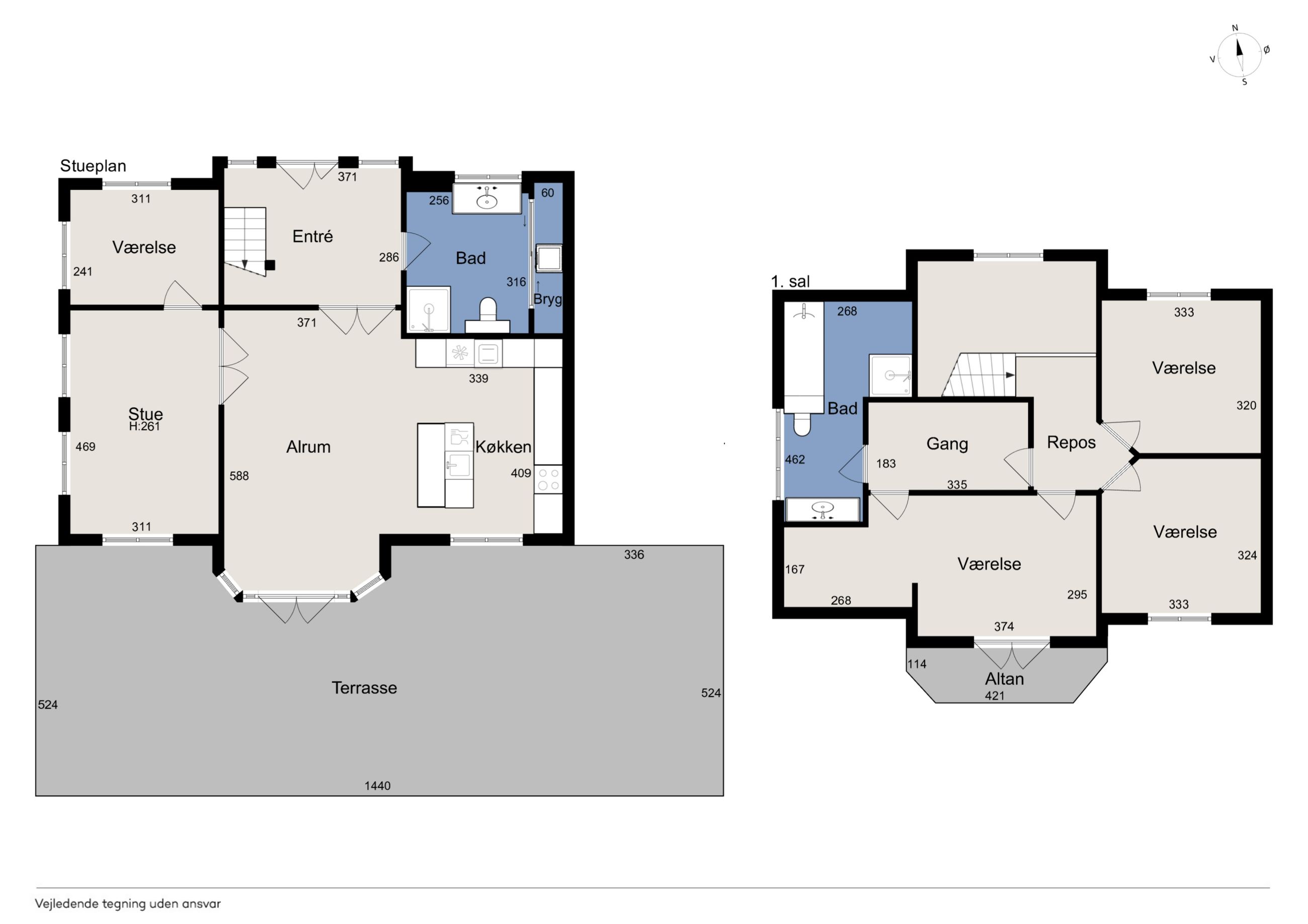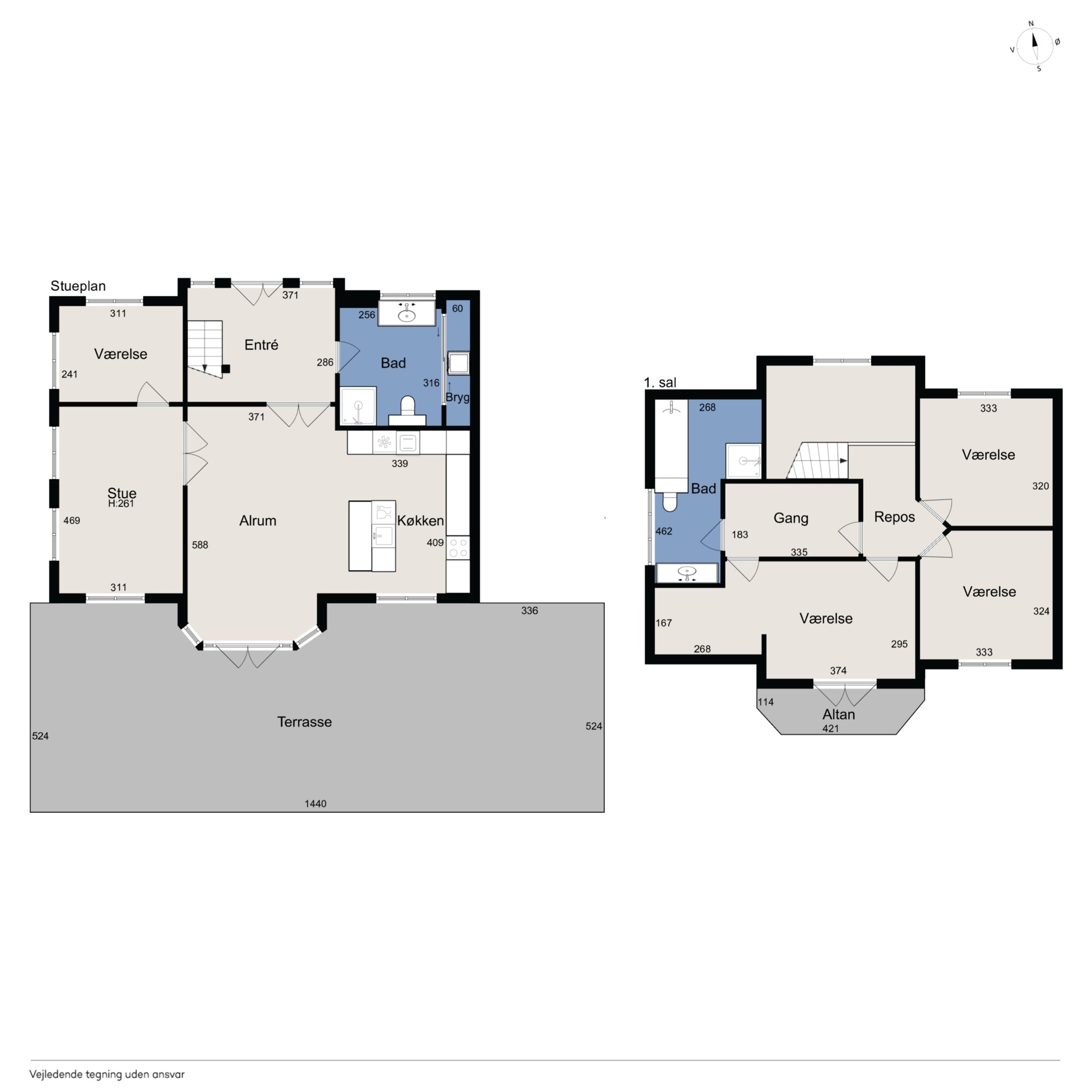 Boligerne er indrettet med lyse, højloftede rum og har et moderne og funktionelt planløsningsdesign. Hver bolig indeholder 4 værelser, to badeværelser, stuer en suite samt et rummeligt køkken/alrum med glaskarnap. Der er gulvvarme i hele boligen, opvarmet via energieffektiv jordvarme. Byggeriet opfylder kravene til Energimærke A2020.