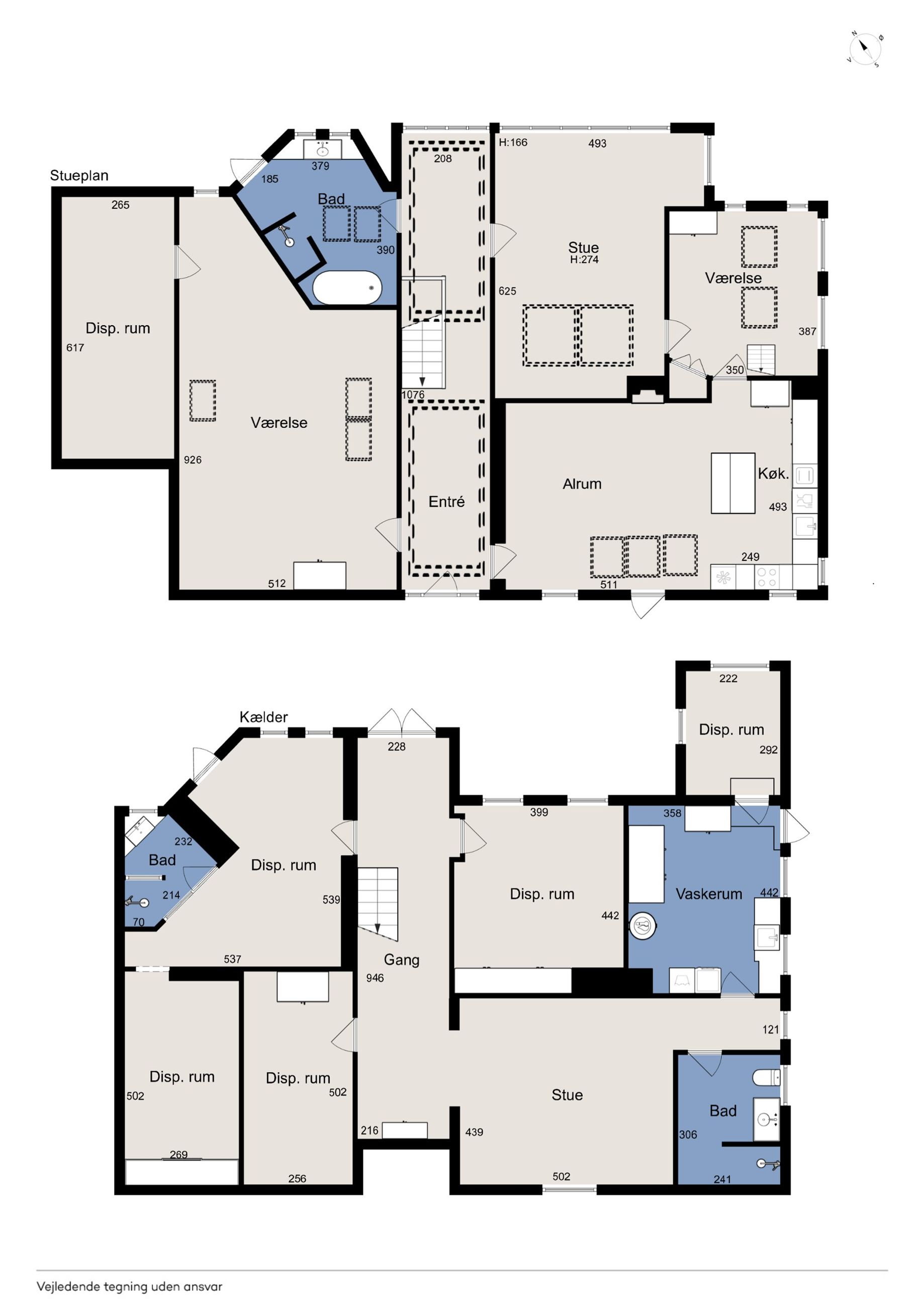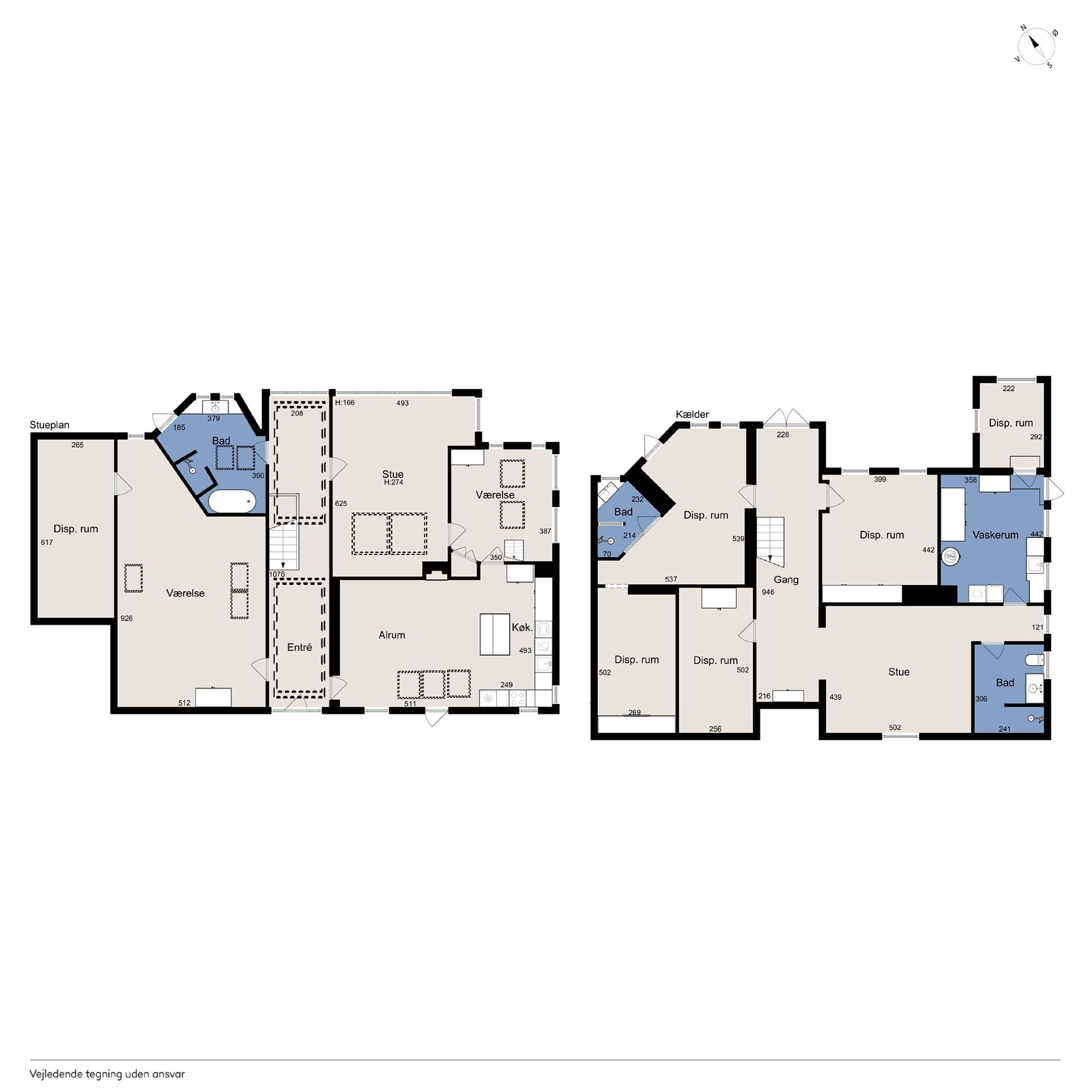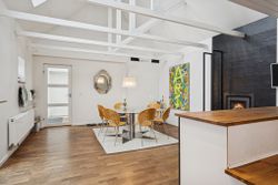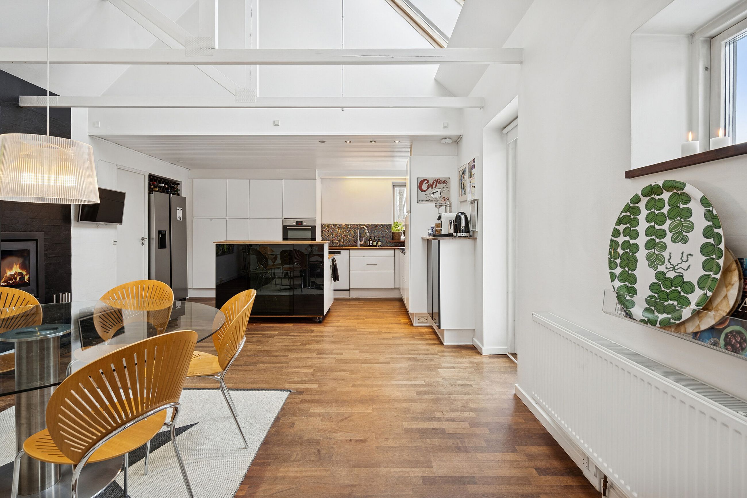 Ejendommen kan rumme den store familie, i flere generationer og samtidig med plads til liberalt erhverv, træningsrum, værksted - kun fantasien sætter grænserne. Boligarealet er på 230 kvm og dertil skal ligges 90 kvm brugbar kælder og 45 kvm indbygget garage.