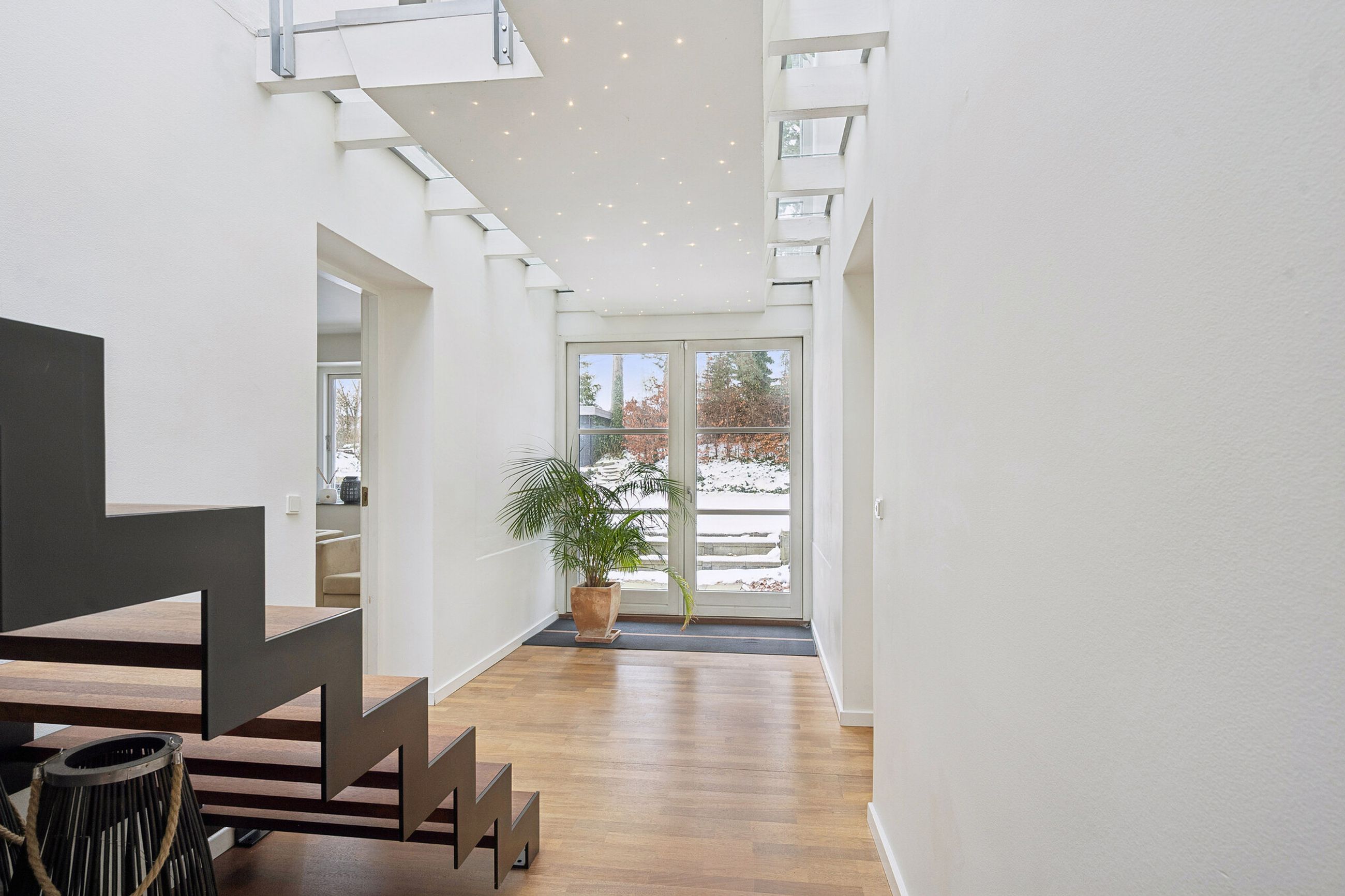 Stor, nyere villa i Espergærde, med mange kvadratmeter, beliggende tæt på "skolestranden", Øresund, Gammel Strandvejskvarteret og Espergærde Havn. Ligeledes tæt til Espergærde Skolen og daginstitutioner. Huset har spændende arkitektur, med et indgangsparti og mellemgang, med store ovenlysvinduespartier og fordeling til ejendommens mange rum og afdelinger.
