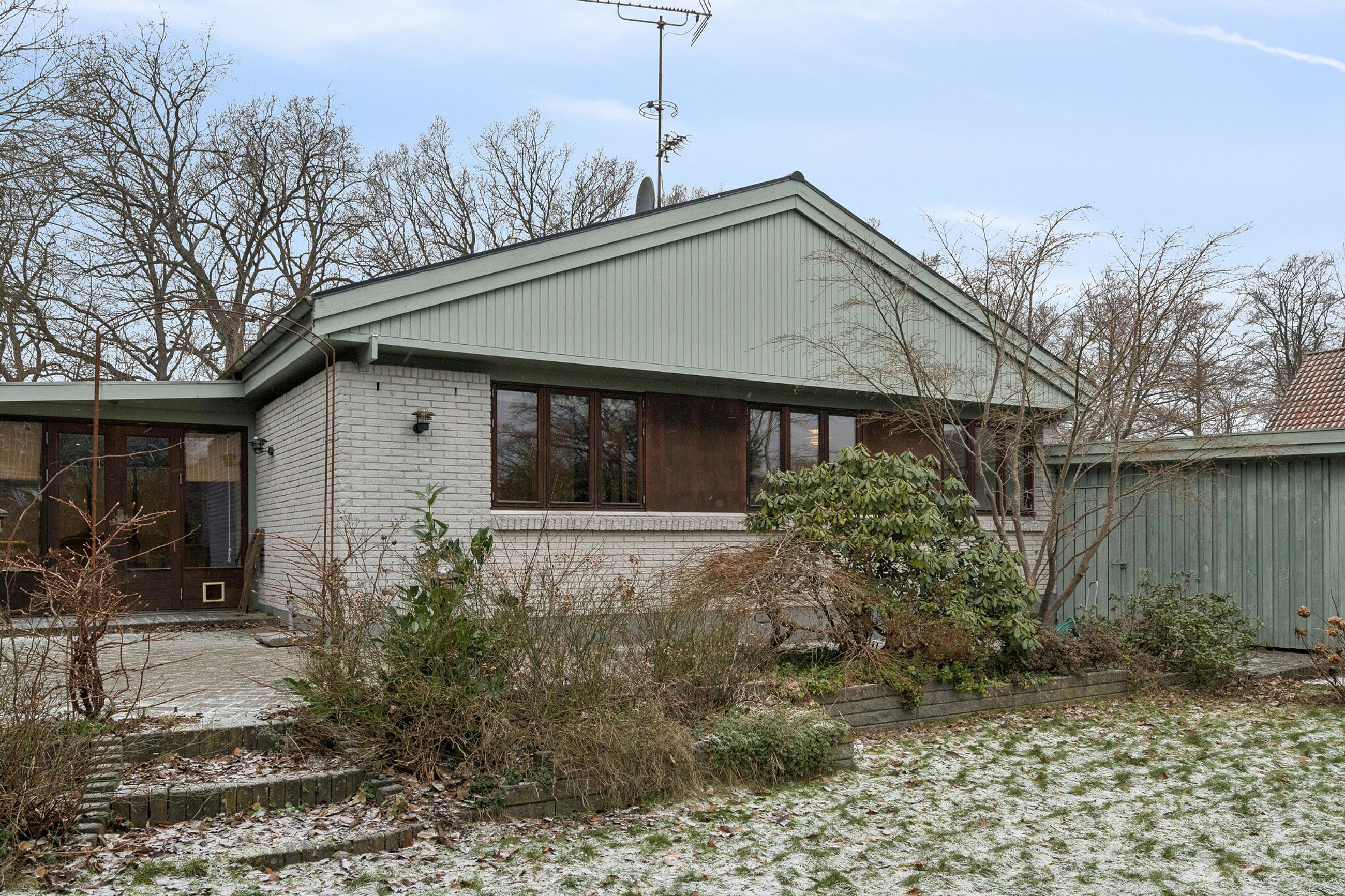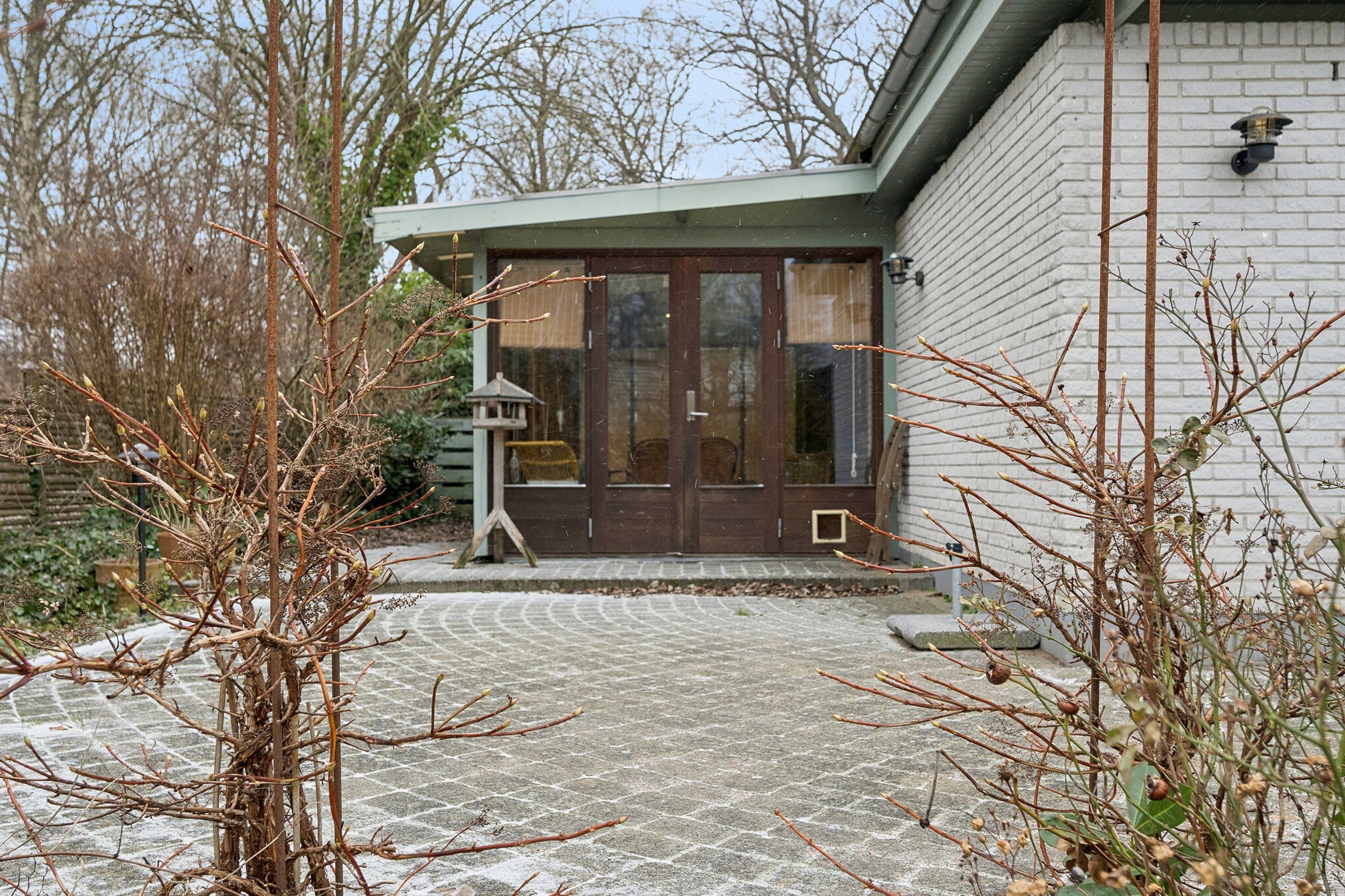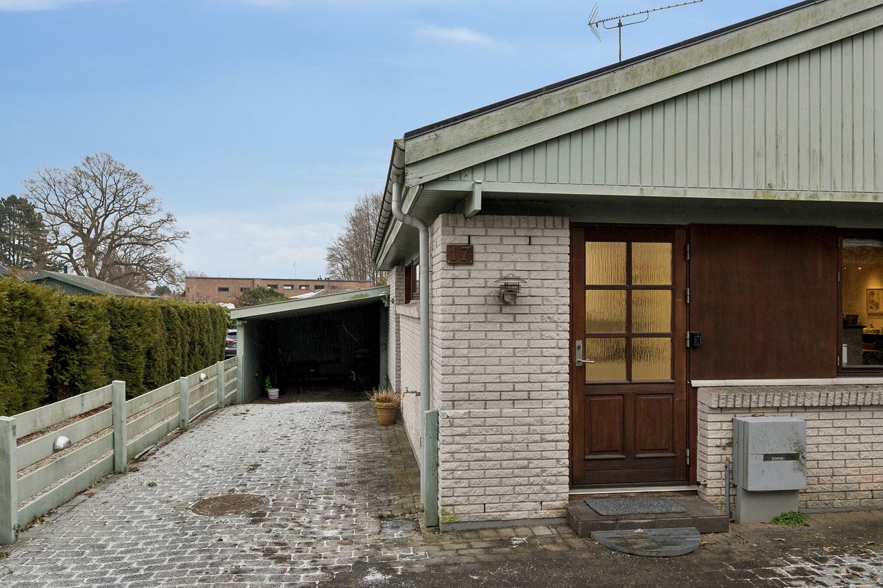Ejendommen er et "nemt" lille kvalitetshus i et plan, med murede ydervægge, hårdtræs vinduespartier og -døre, en overskuelig have og gode udearealer med lukket udestue, ligeledes bygget i hårdtræsrammer med termovinduer, flere terrasser og indkørsel og parkering til flere biler. Ligeledes gode parkeringsforhold på vejen. Stort tilhørende carport/udhus (måske anneks) og overdækning. Der er udsigt til Babylone Skoven og bussen kører lige uden for døren, med forbindelse til Humlebæk Station (Kystbane Helsingør- København). Ligeledes nem adgang til Helsingør Motorvejen.