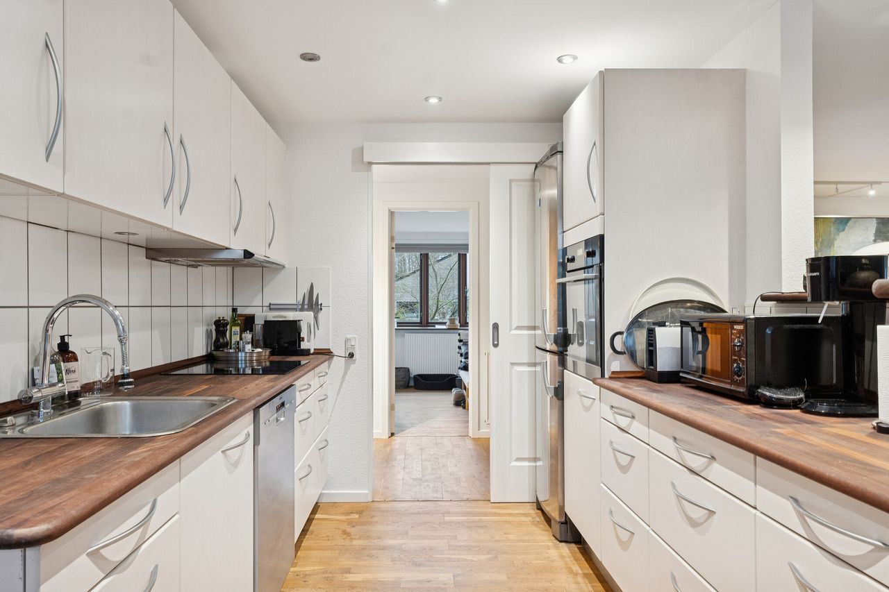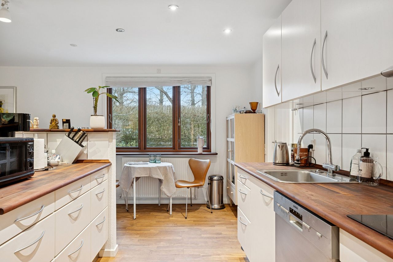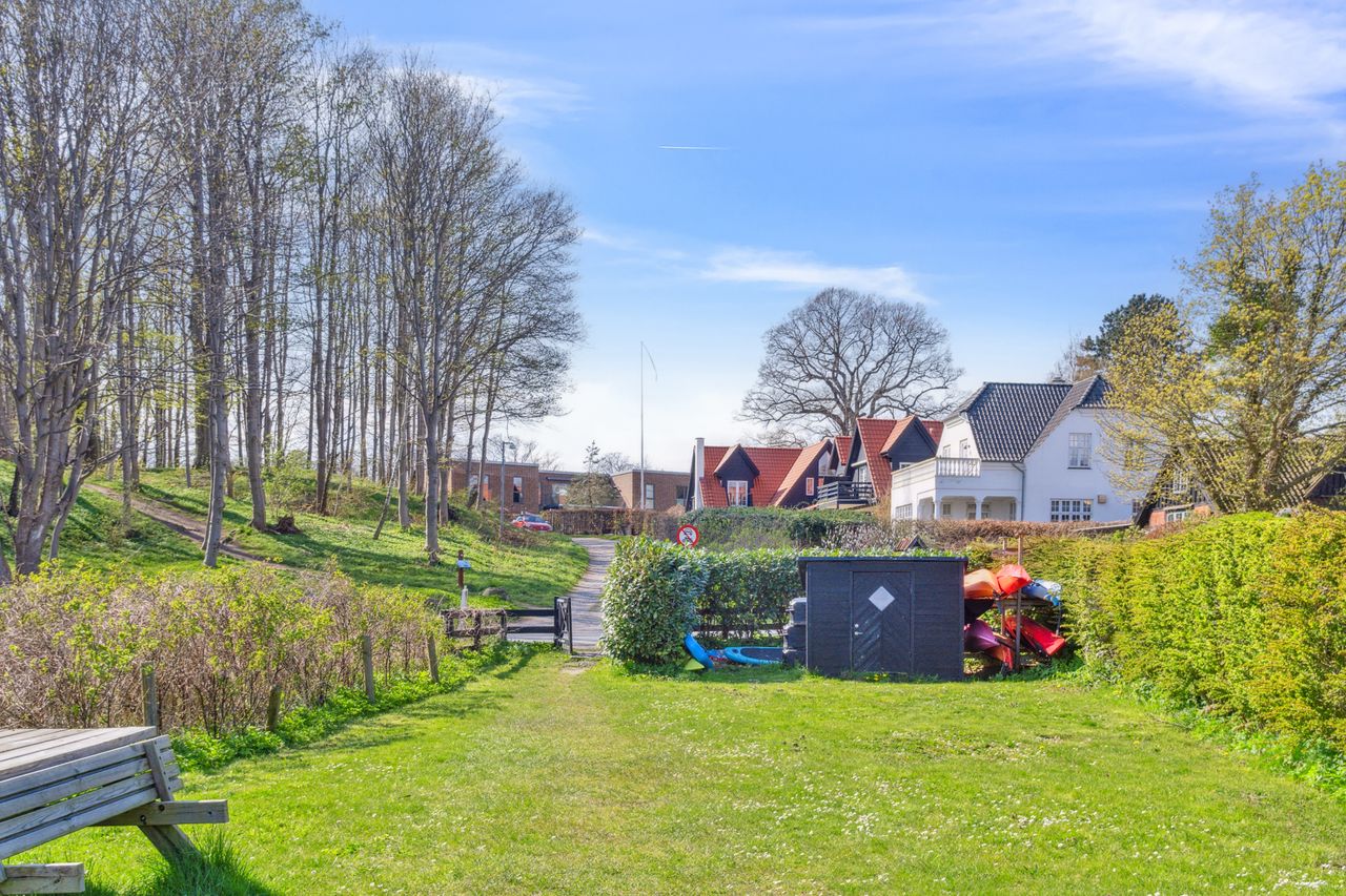 Her har du alt det bedste området omkring Babylone Skov og Strand kan tilbyde, lige uden for døren. Fra ejendommen er der kun få minutter til andel i fælles strandgrund med sauna og badebro. Den gode beliggenhed betyder også, at du har nem adgang til stranden, det charmerende Gl. Humlebæk fiskerleje og havnen. Ligeledes er der kun få minutter til Louisiana, Årstiderne og Krogerup Højskole.