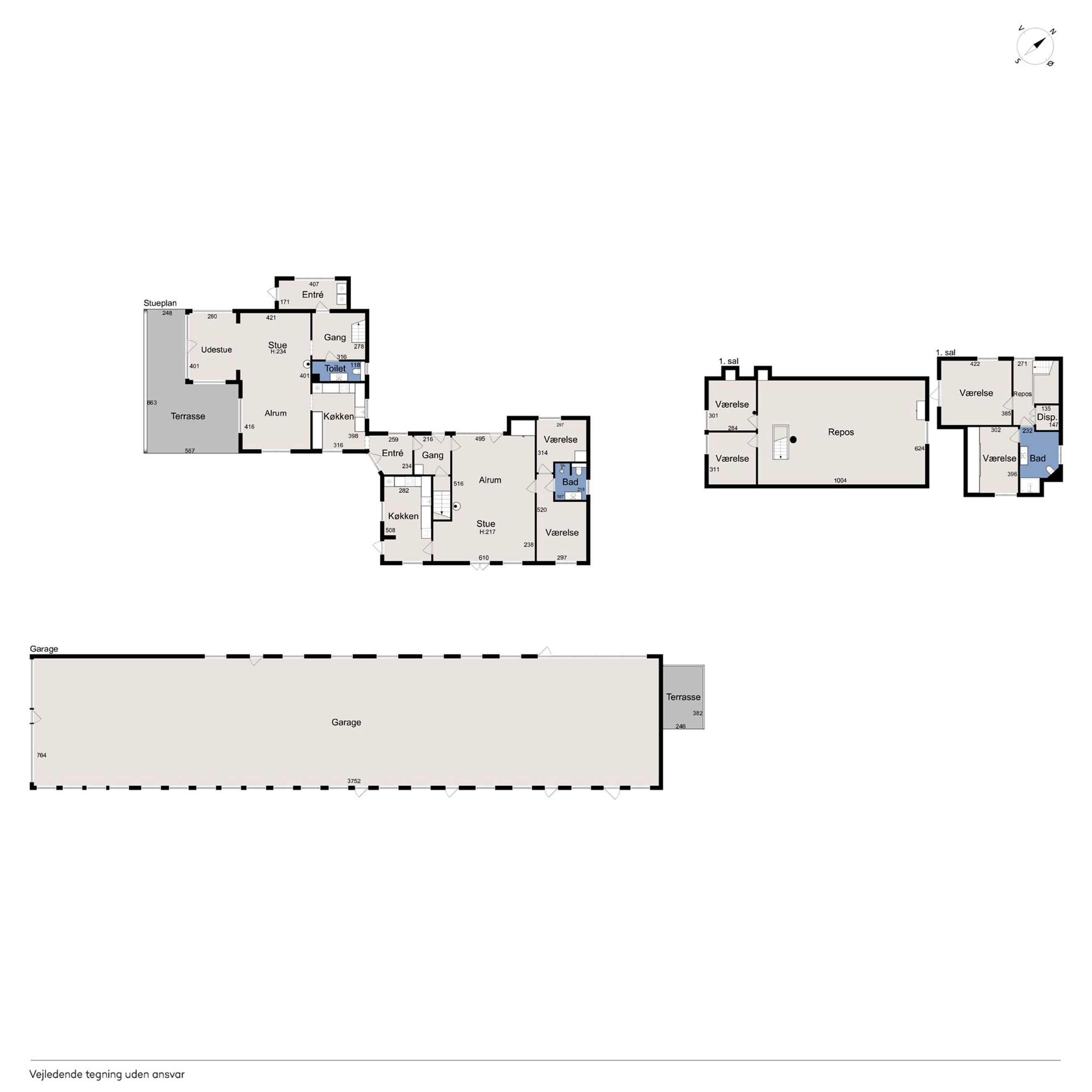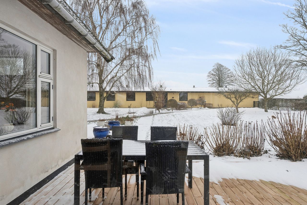 Ejendommen er beliggende på 2.574 kvm stor grund og har ud over de 242 boligkvadratmeter, fordelt på to boligenheder, over 400 kvm udbygninger og garage, med mange anvendelsesmuligheder. De to boligenheder gør ejendommen velegnet til to generationer, teenageafdeling med eget køkken og bad, eller udlejning / AirBNB.