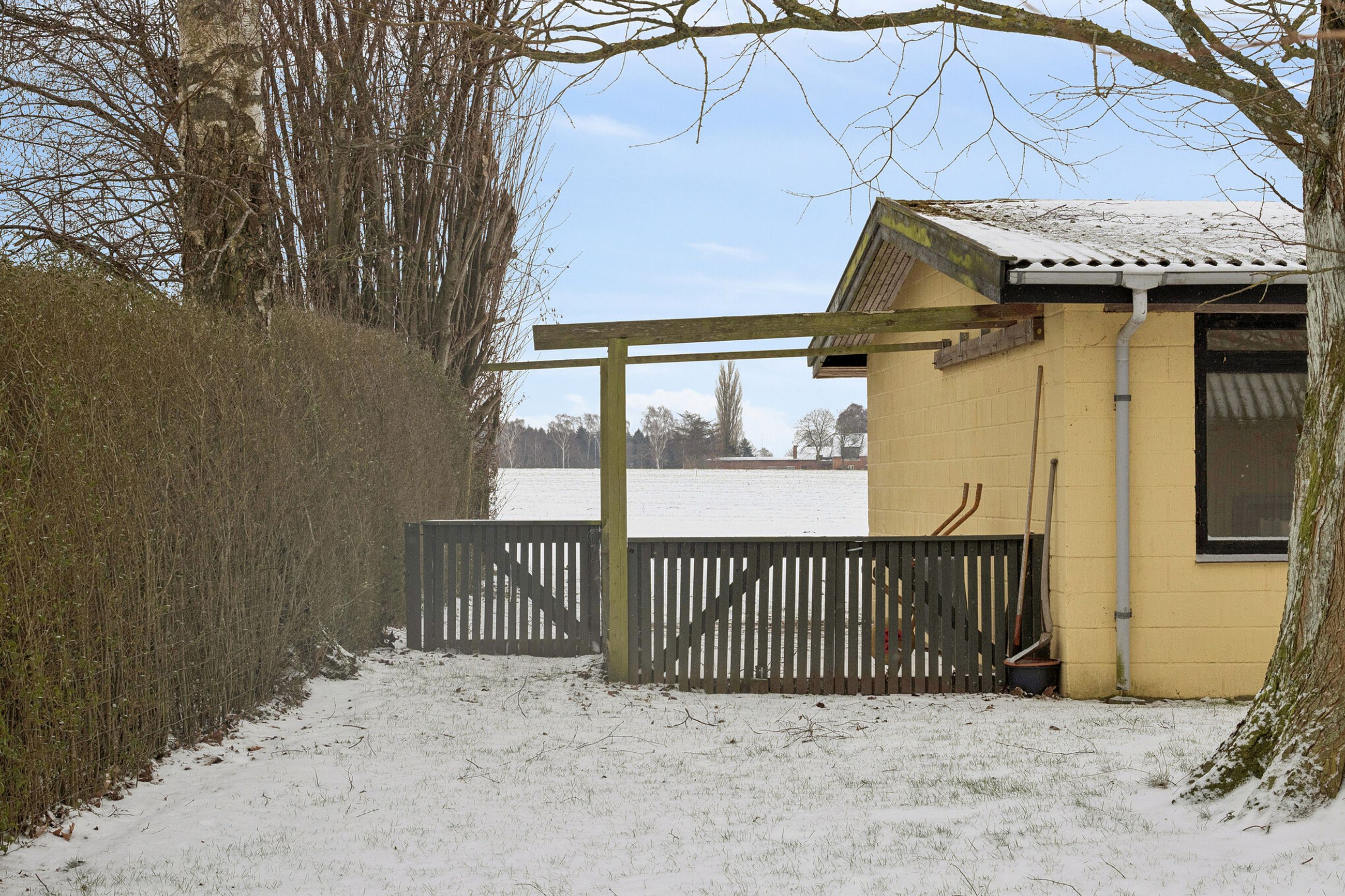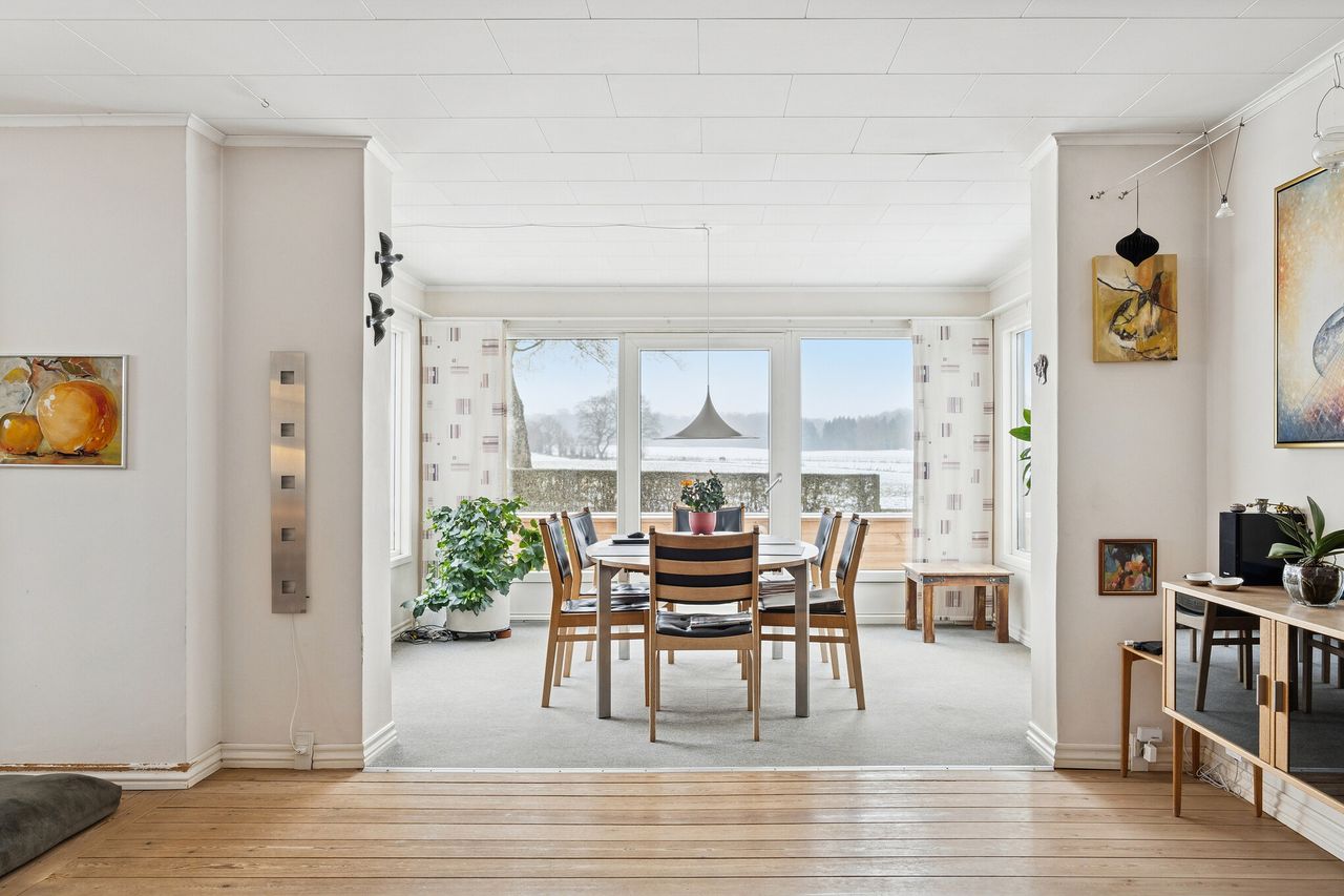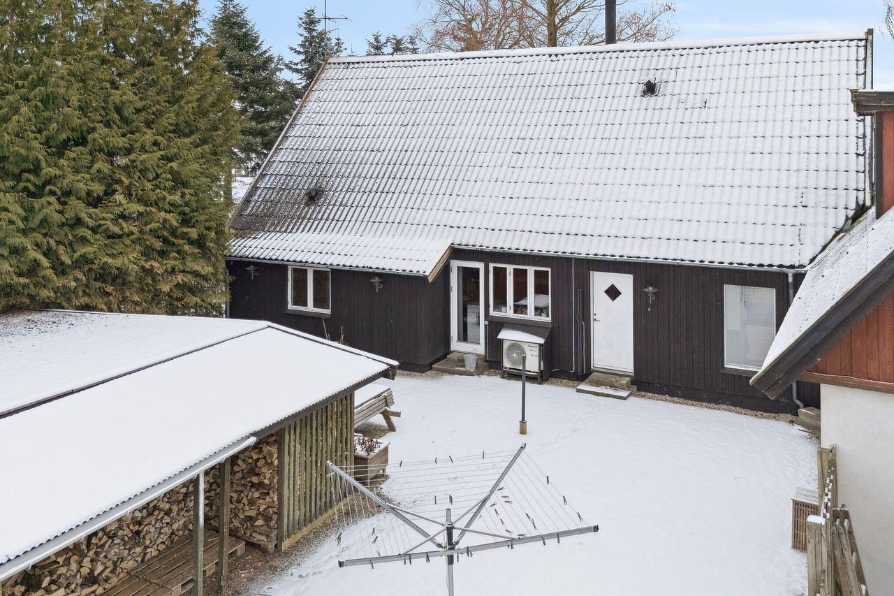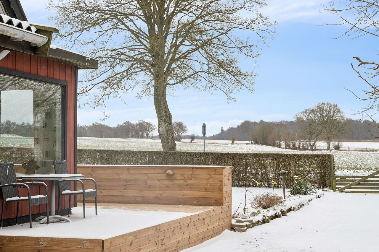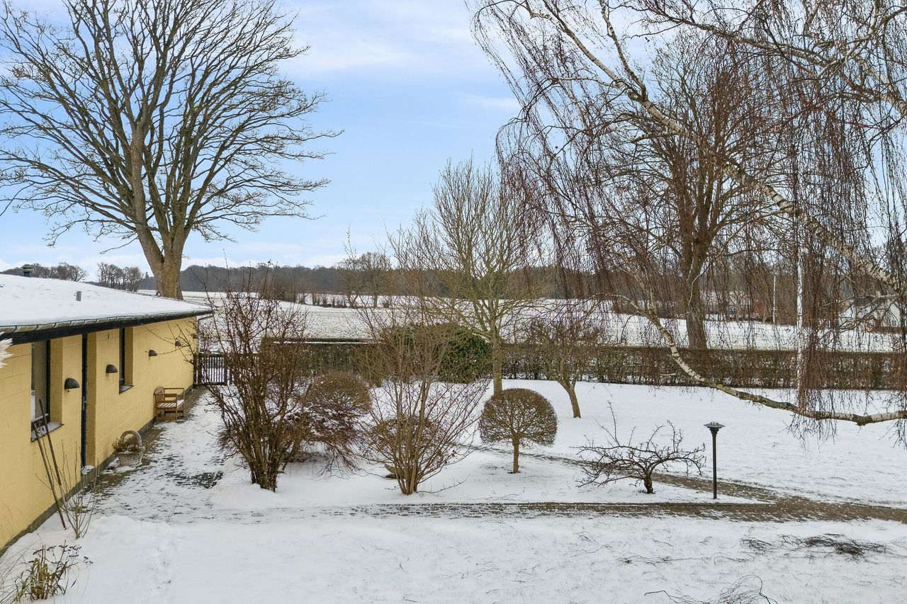 Spændende ejendom i Borsholm med mange muligheder og fri udsigt over markerne mod syd. Her kan man nyde udsigten til områdets smukke landskab, med åbne marker, gamle stendiger, levende hegn, bronzealder gravhøj, Klosterris Hegn og et rigt dyreliv, som bl.a. tæller en god bestand af Kronvildt.