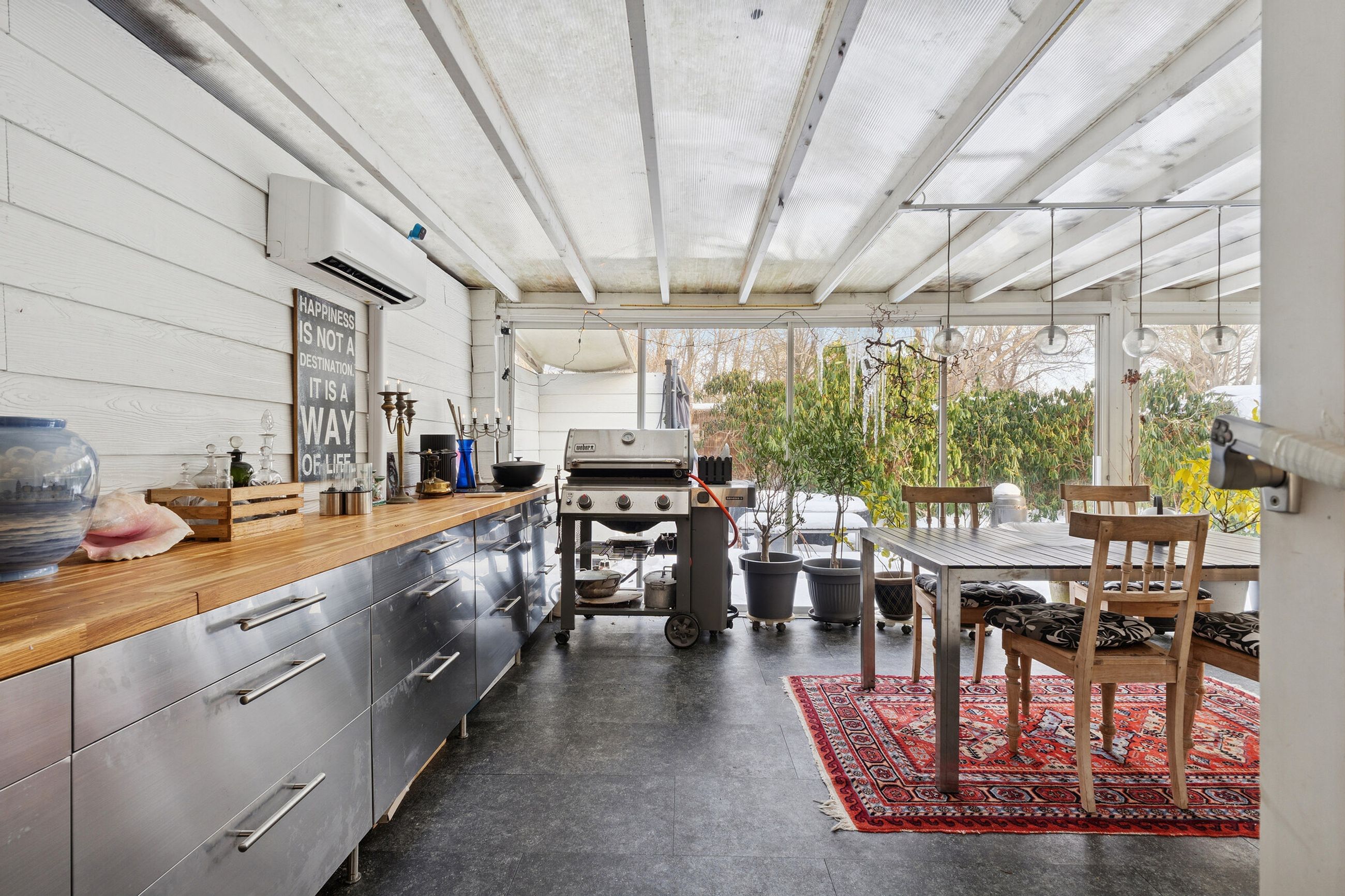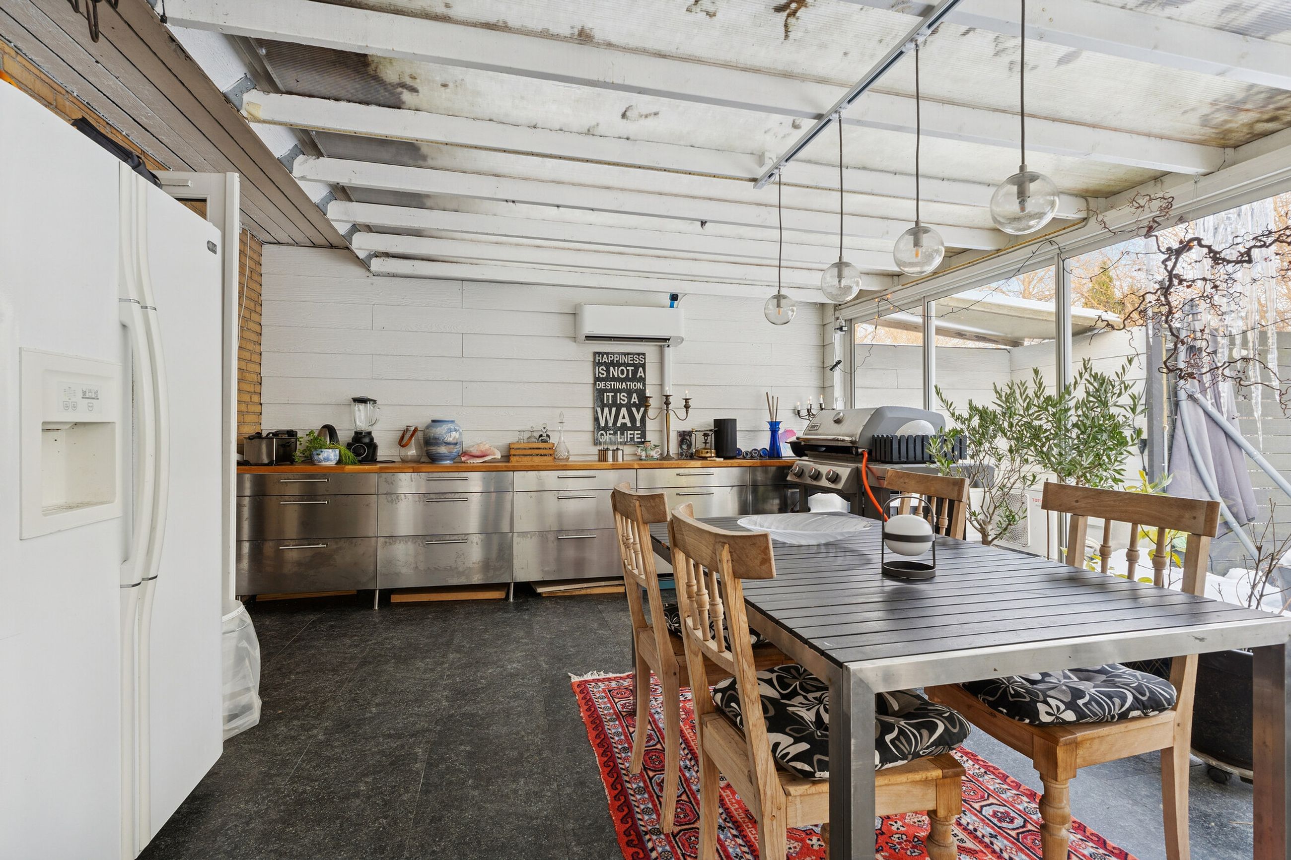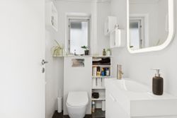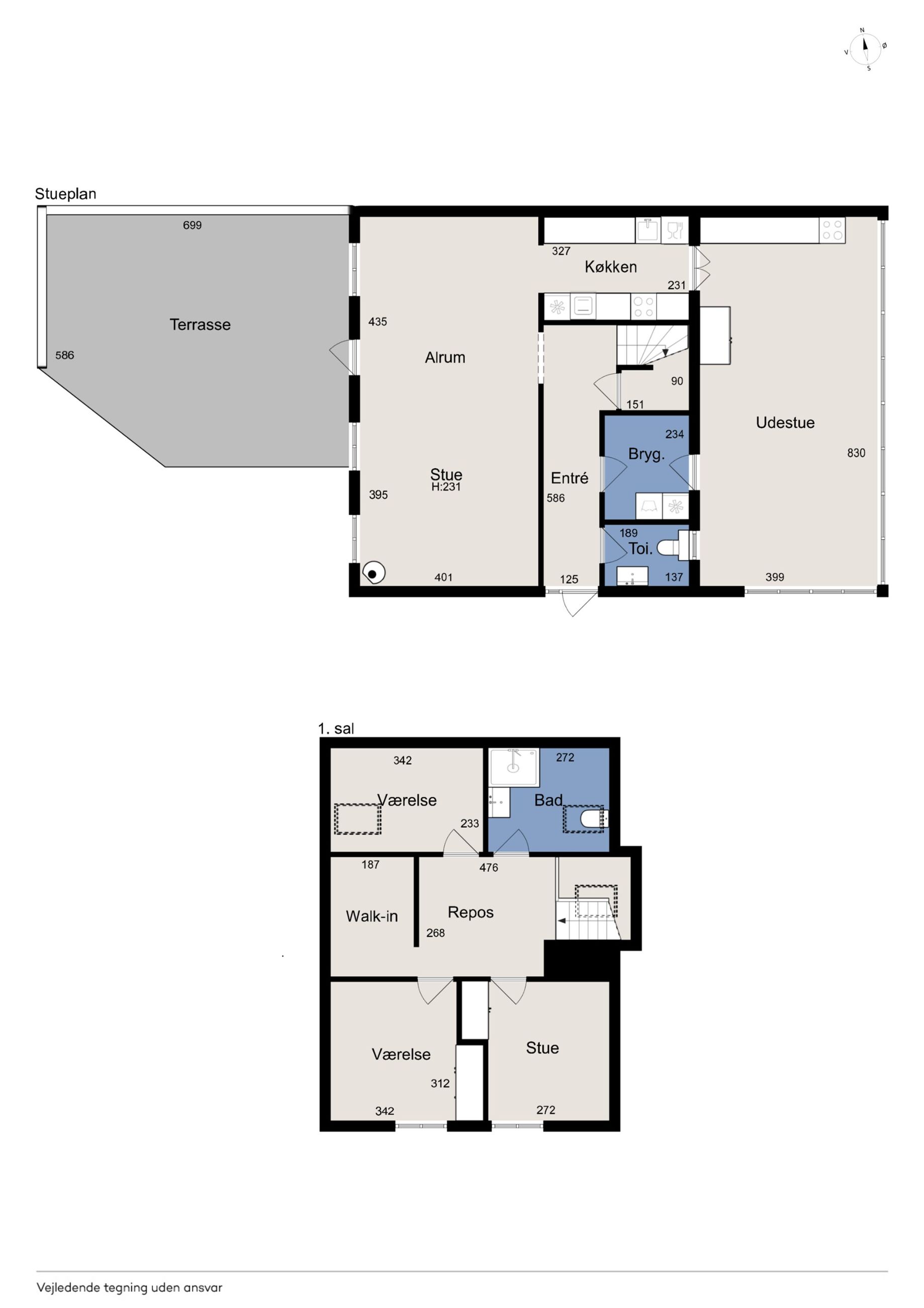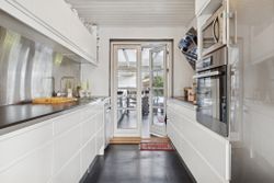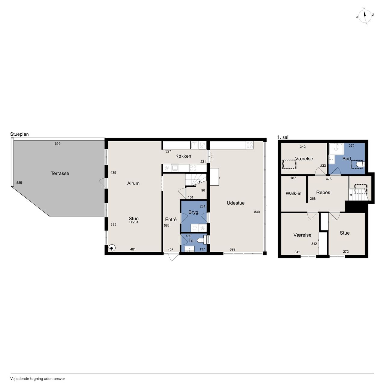 I alt 125 kvm bolig er indrettet som følger: Ankomst via havegang fra indkørsel. Entré/mellemgang med fordeling til bryggers med egen indgang, gæstetoilet, pulterrum med garderobeplads og trappe til 1. sal. Hyggelig stue med brændeovn, udgang til terrasse og haven mod syd og spiseplads i forbindelse med åbent køkken. Fra køkkenet er der udgang til udestuen, baghaven og grundstykket ud til Fredensborgvej. 1. sal er indrettet med 3 værelser med god skabsplads, walk in closet og badeværelse med brusekabine.