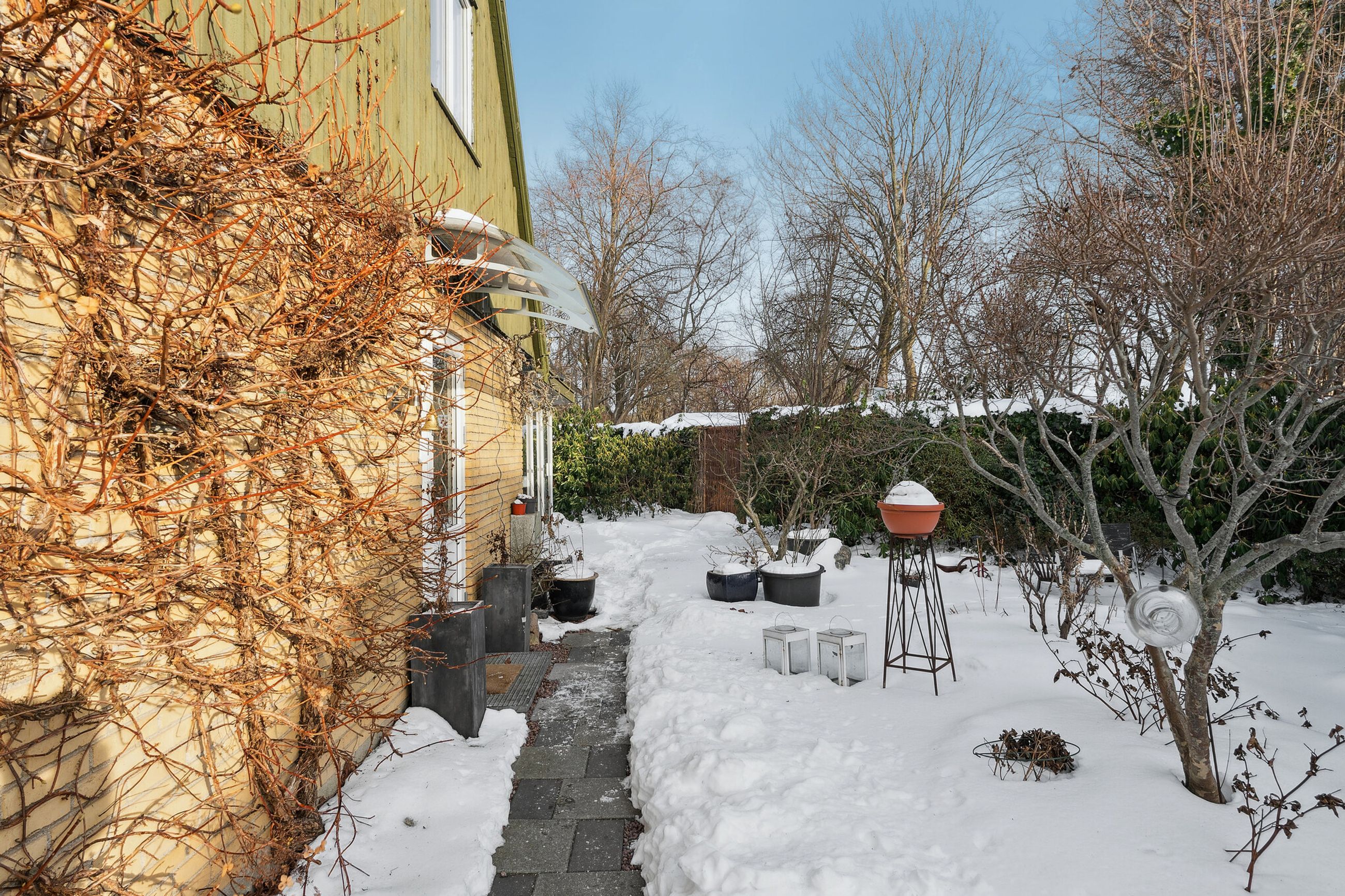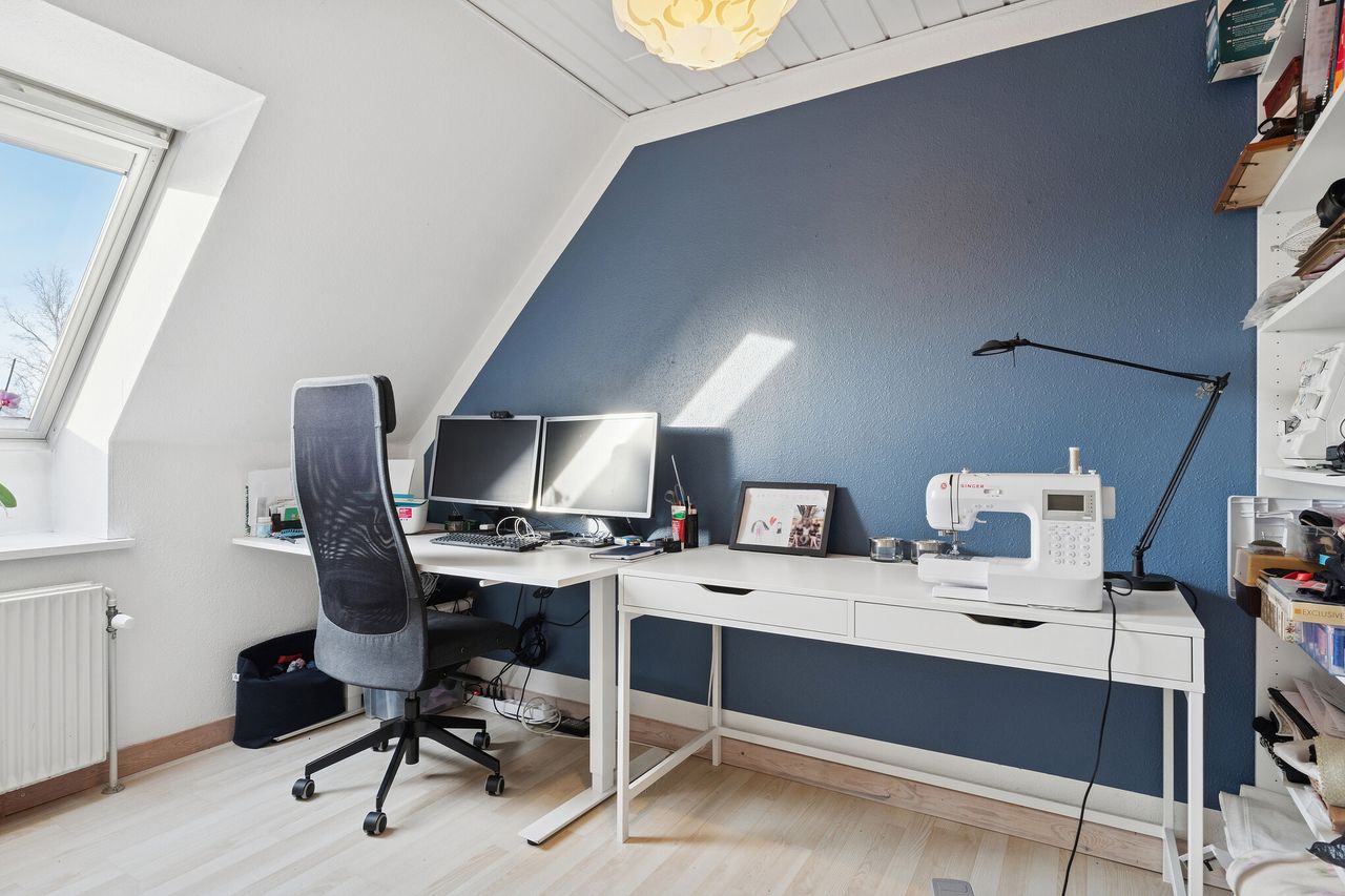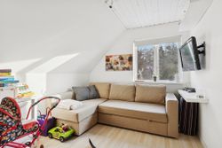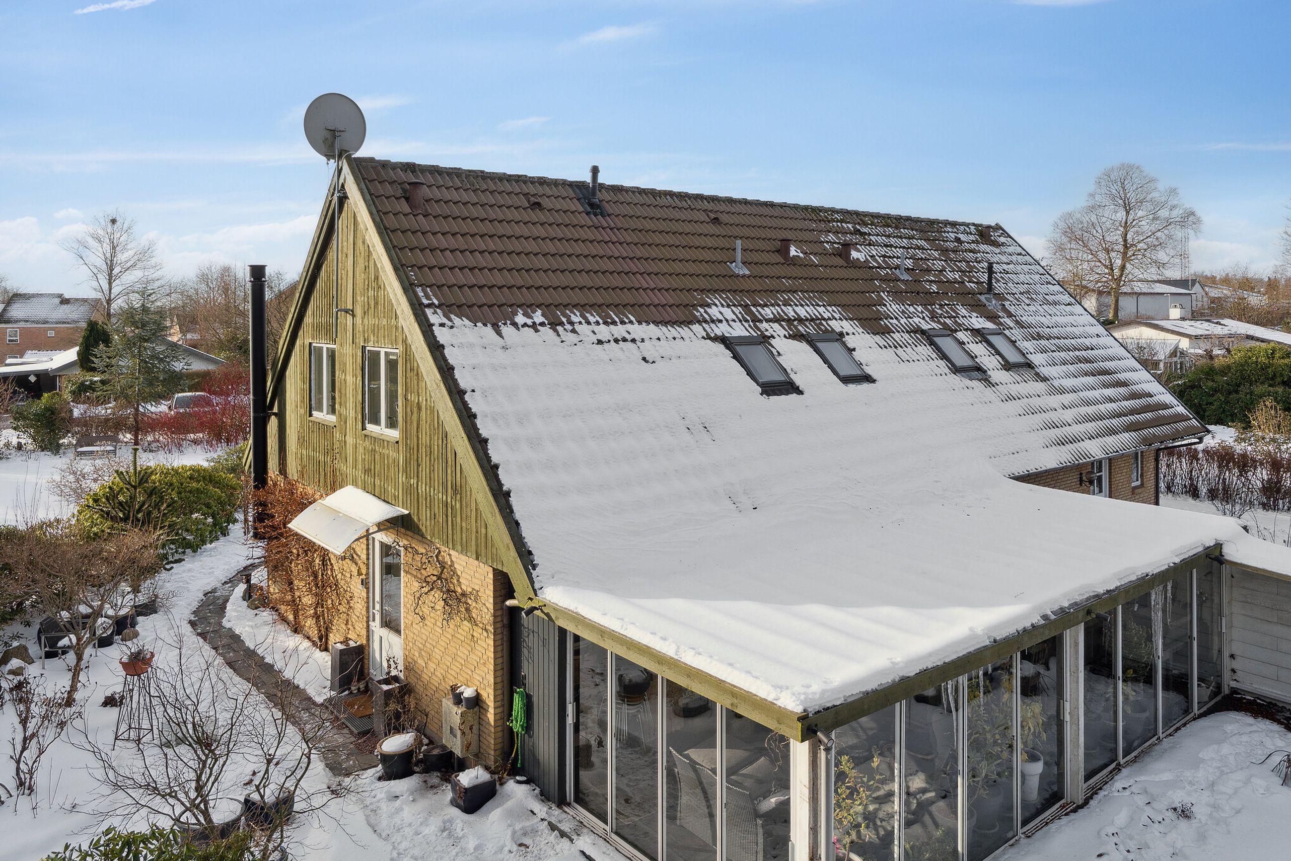 Huset er opført i gule mursten, hulmursisoleret og med vingetegl på taget. 125 boligkvadratmeter i halvandet plan, med tilhørende ikke godkendt udestue, er den ideelle ramme for en børnefamilie. Varmeanlæg med kombination af naturgas og brændeovn i stuen samt effektive solceller fra 2022. Haven er aflukket og med adgang til et ekstra grundstykke, som tilhører kommunen. Endvidere solrig terrasse – perfekt til sommerens grillaftener eller stille morgenkaffe under åben himmel. Der er privat parkering lige foran huset med tilhørende udhus. Ekstra parkering på vejen til gæster.