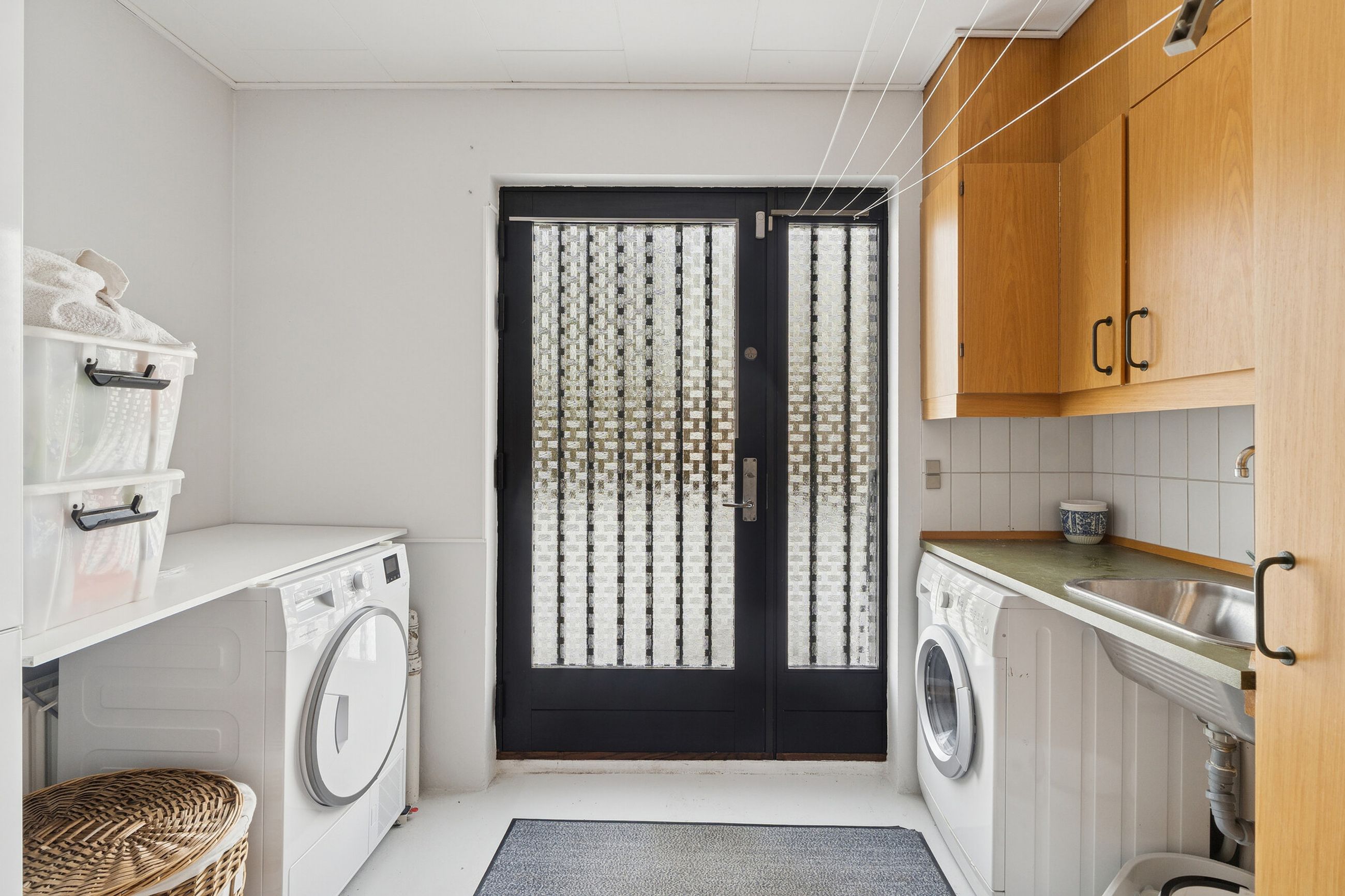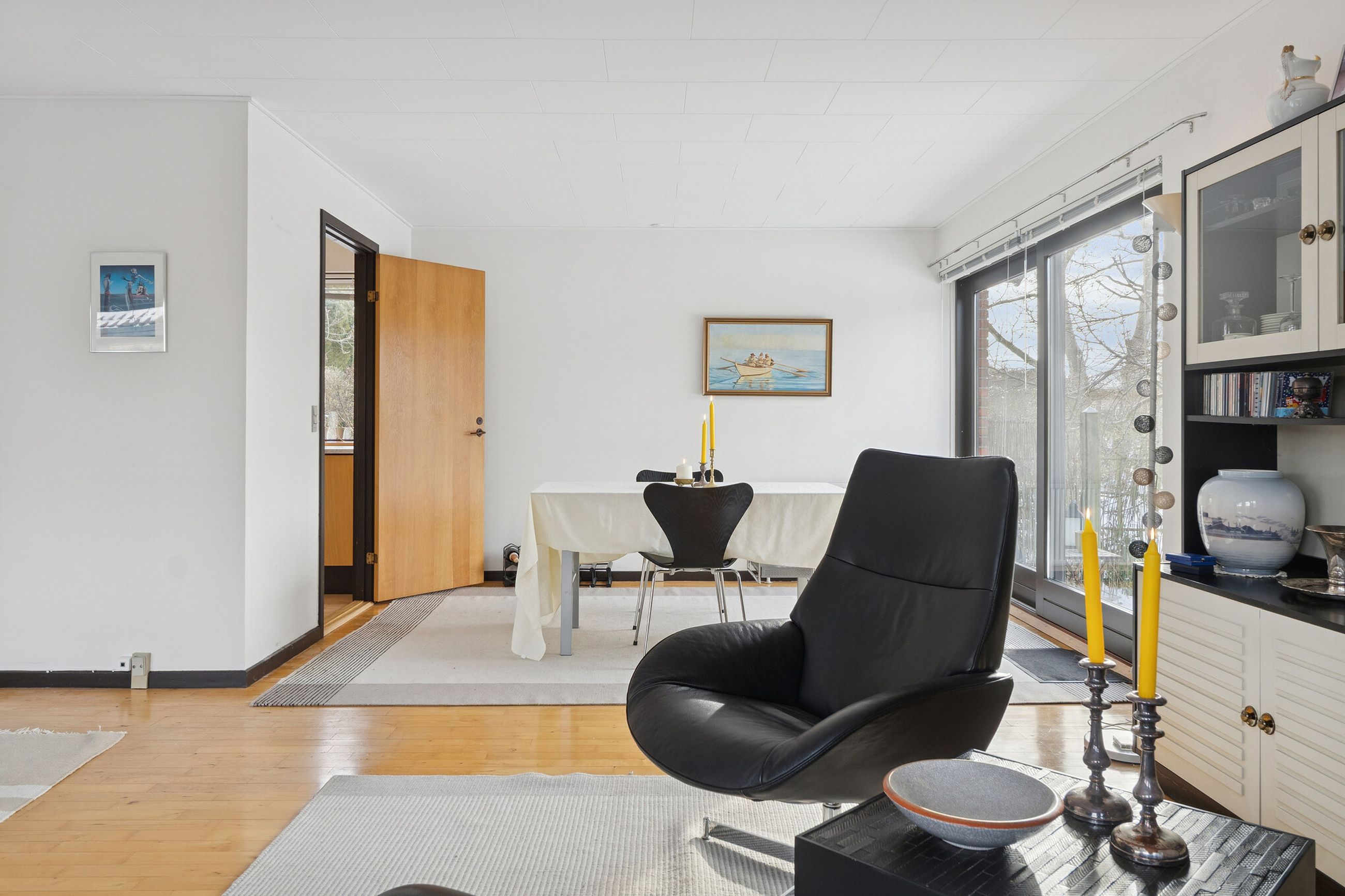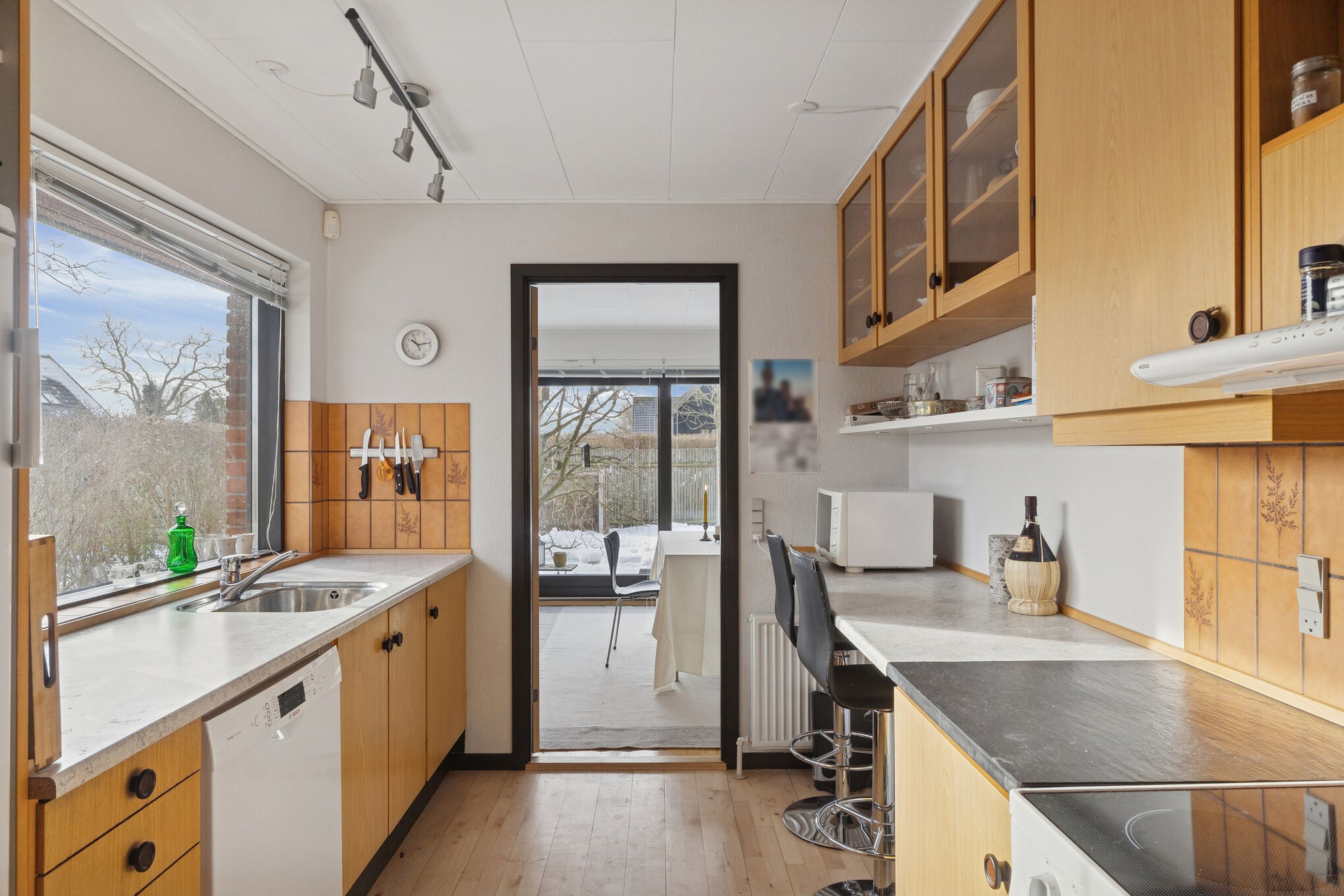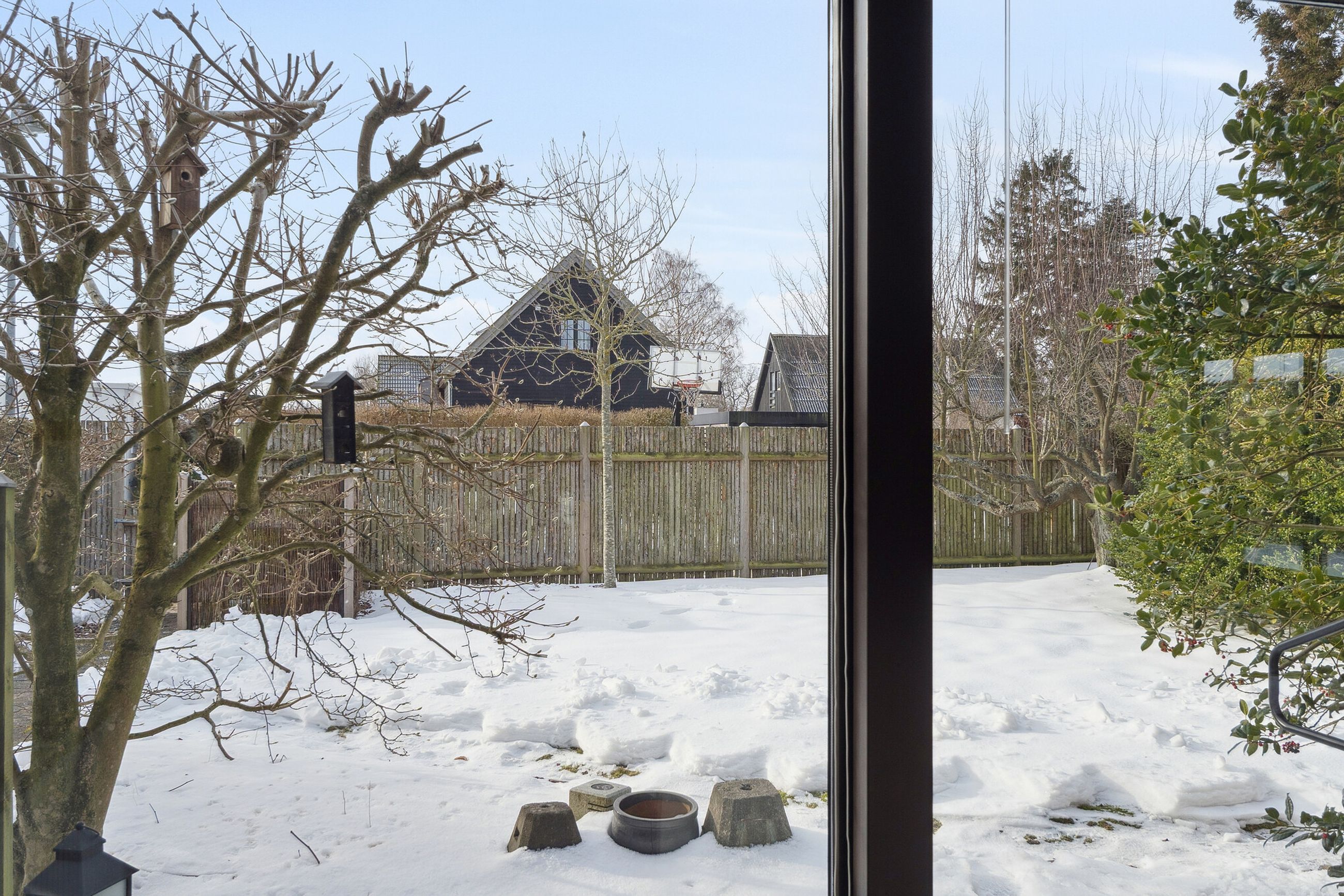 Ejendommen er på 137 kvm i 1 plan og indrettet som følger: Ankomst via havegang til indgangsparti med bred hall. Gæstebadeværelse med muret bruseniche. Mellemgang til to gode børneværelser og et stort soveværelse, alle med faste skabe. Badeværelse med badekar og muret bruseniche. Stort praktisk bryggers med egen indgang fra haven. Lys vinkelstue med udgang ti terrasse og haven og spiseplads i forbindelse med køkken. Huset har mange vinduer, hvilket giver masser af lys overalt. Haven er aflukket og privat og med en god variation i træer, planter og buske.