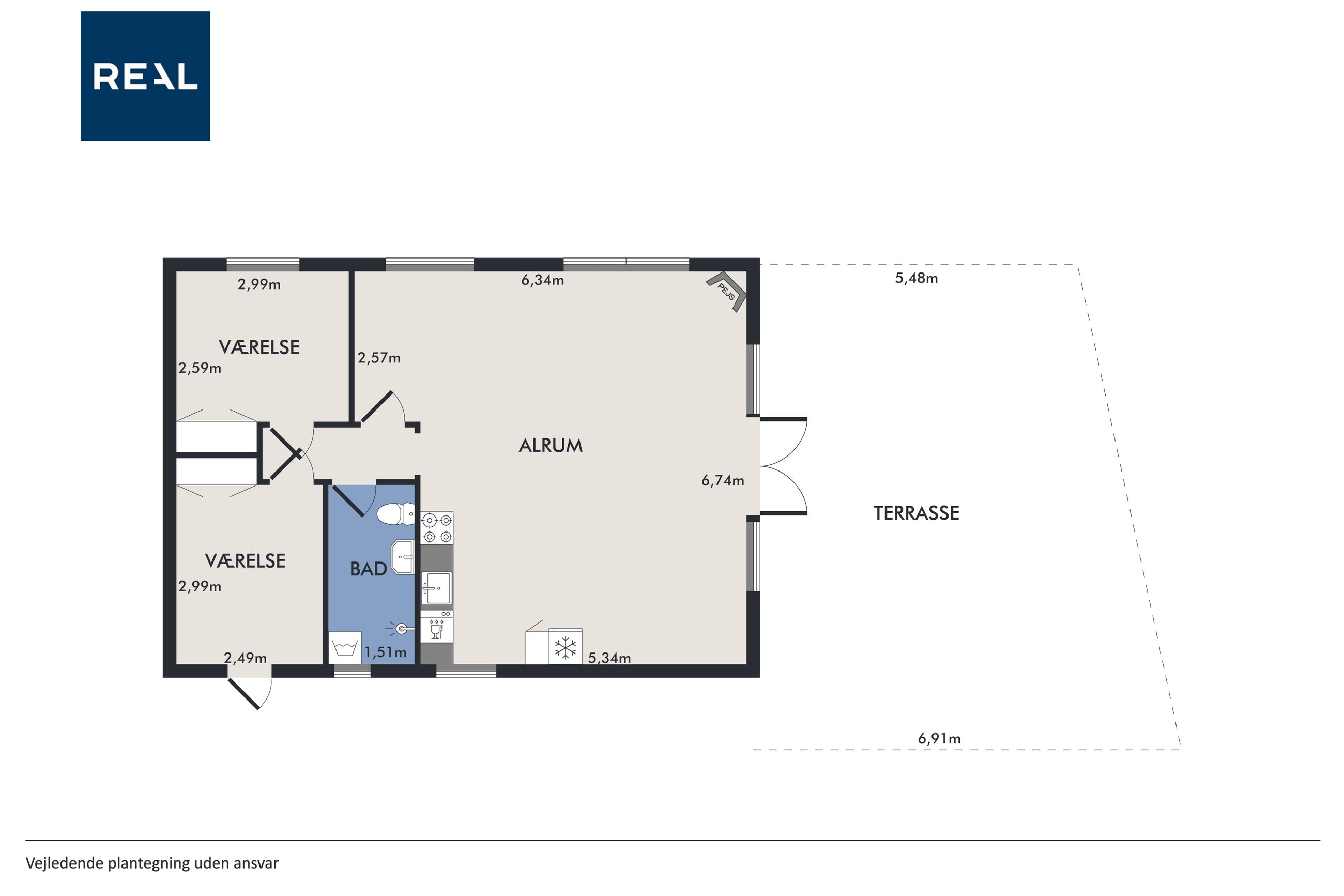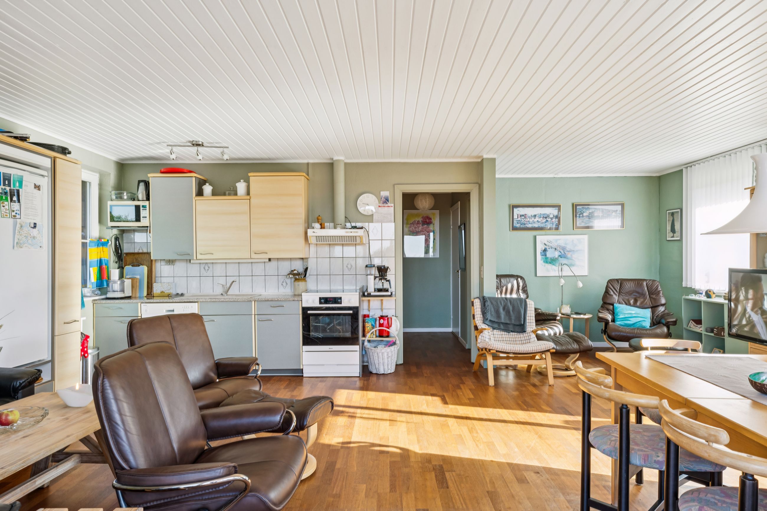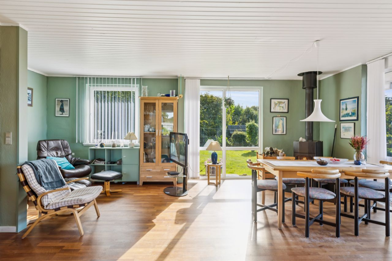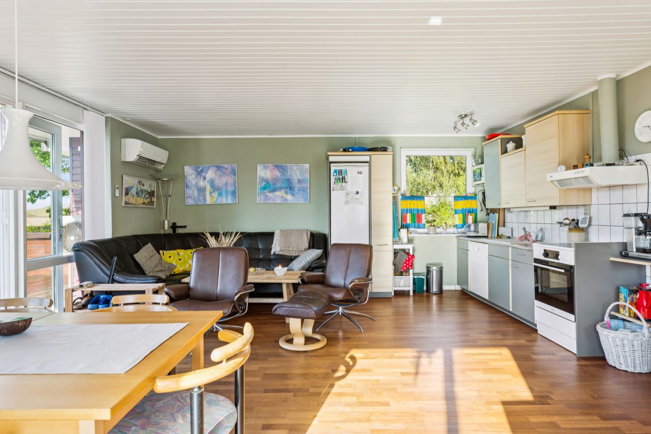 Når du træder ind i sommerhuset, mærker du straks roen og den lyse atmosfære. Hjertet i huset er det store, åbne alrum, der samler familie og venner omkring måltider, hyggelige stunder og lange sommeraftener. Herfra er der direkte udgang til den store terrasse, hvor udsigten til vandet kan nydes i fulde drag. Sommerhuset rummer desuden to gode værelser, som giver plads til både familie og gæster, samt et rummeligt og lyst badeværelse. Der er desuden nem mulighed for at etablere et 3. værelse.